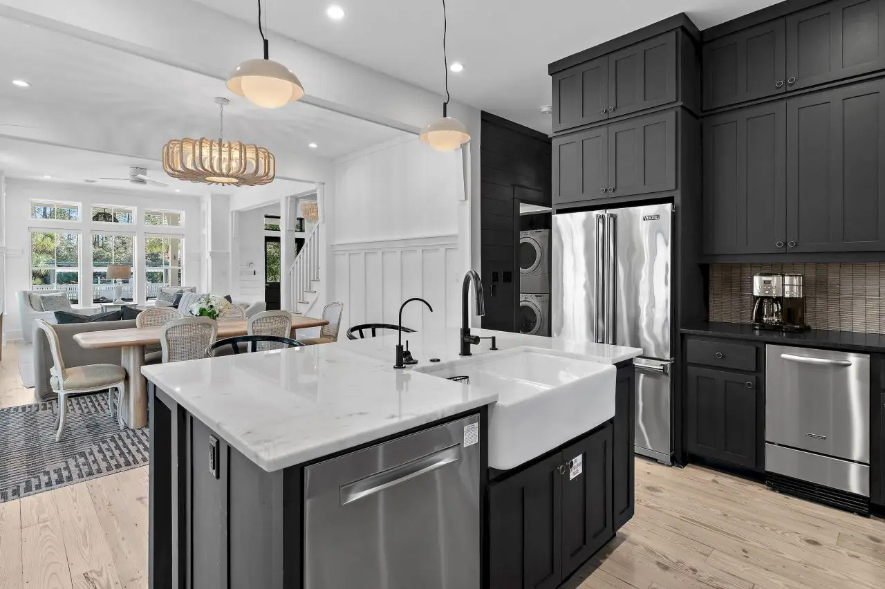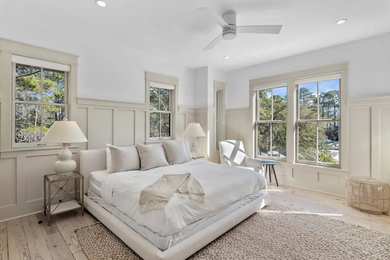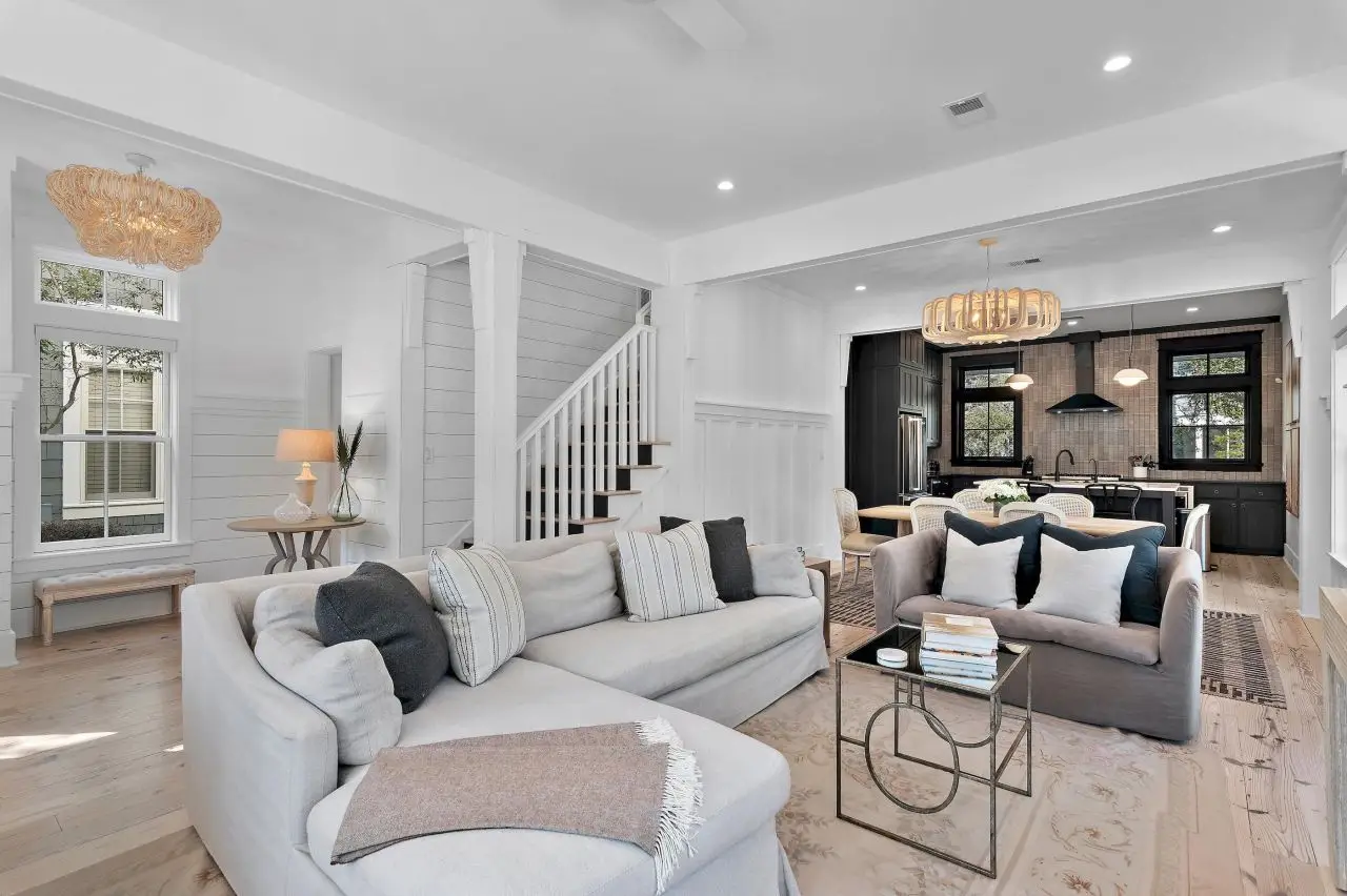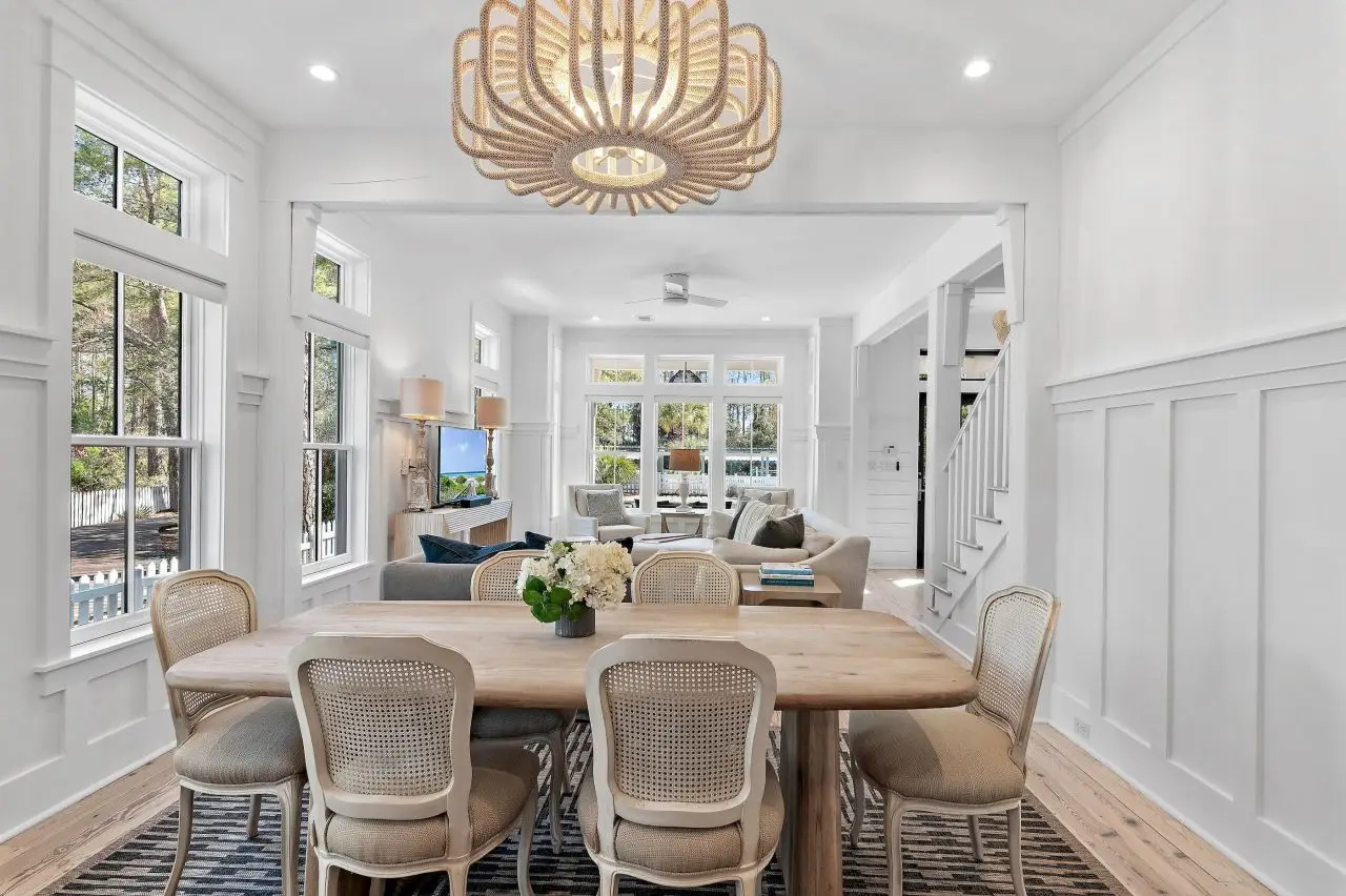Discover the perfect blend of luxury and coastal living at this stunning home in the sought-after Watersound West Beach community. Nestled along the serene border of Deer Lake State Park, this residence offers a peaceful backdrop of natural beauty adjacent to scenic walking trails leading to the beach. Just steps from the community pool and the beach boardwalk, enjoy effortless access to sugar-white sands and the turquoise waters of the Gulf with no crowds! The open-concept design features spacious living areas, ideal for entertaining or relaxing after a day at the beach. Custom features include true wide planked hardwood flooring, luxury appliances, hand-selected fixtures, as well as extensive wainscoting and wood trim work throughout. Offered fully furnished, this well thought out floor plan showcases an open concept living space on the main level with expansive state park views, a spacious master suite, 2 guest bedrooms suites, a private bunk room plus another bunk space tucked under the stairs, and a third floor den with gulf views that can double as a 4th bedroom. Plenty of storage can be found throughout the home and there is a home office on the main level. High-end luxury finishes, generous porches, and serene outdoor spaces make this home an inviting coastal retreat. With exclusive access to Watersound West Beach amenities, including heated & cooled community pool, multiple parks, trails and boardwalks, manned security gate, fitness center, and private boardwalk to the BEACH with bike parking, this home offers the ultimate 30A lifestyle. Home is located on the most exclusive lot in the neighborhood, so don't miss your chance to own this piece of paradise perfectly positioned in a serene natural setting yet convenient to all 30A has to offer!