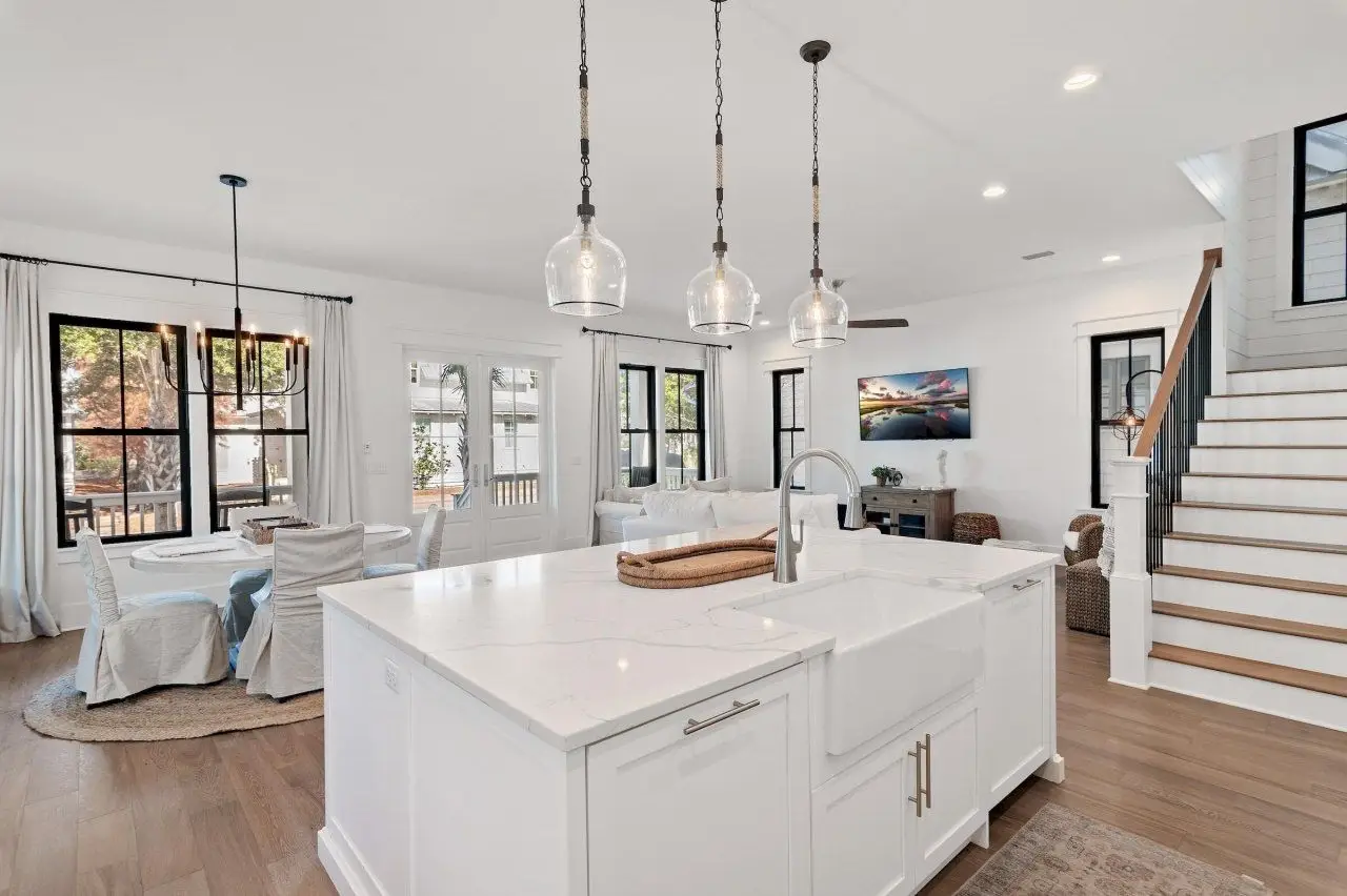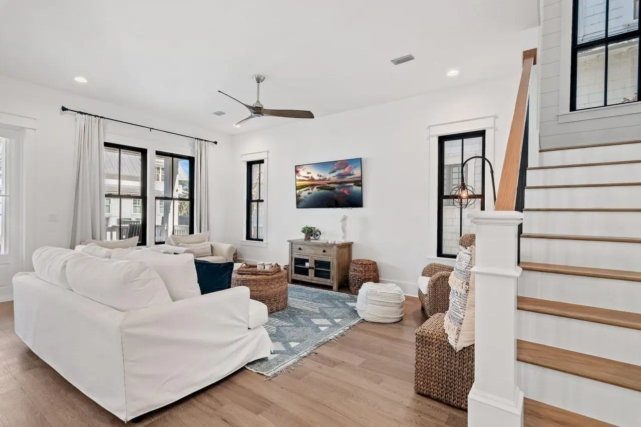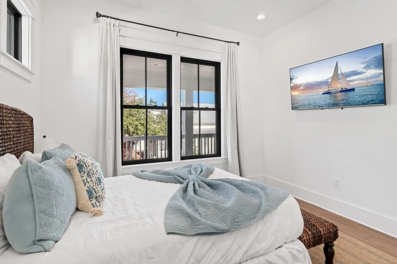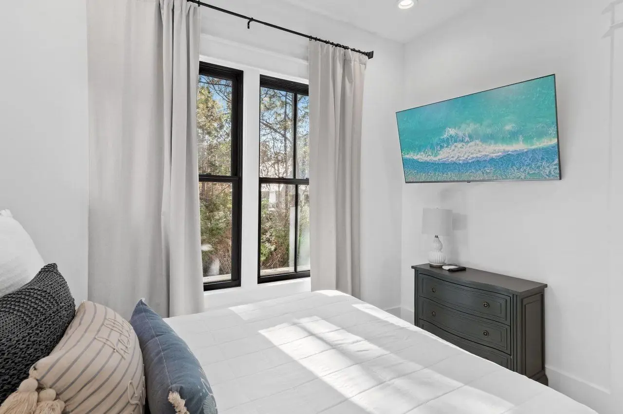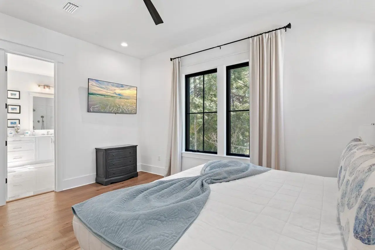 Experience the ultimate in coastal living with this turnkey, fully furnished 4-bedroom, 3-bathroom masterpiece located in the prestigious gated community of Cypress Dunes on Scenic 30A. Every detail of this newly constructed home has been thoughtfully designed to deliver a perfect balance of comfort, elegance, and functionality, with richly appointed spaces that combine sophistication and style. The reimagined open floorplan creates a spacious family room that seamlessly flows into the kitchen and dining areas, making it ideal for entertaining or enjoying quiet moments with loved ones. The chef-inspired kitchen is a true showstopper, featuring a Wolf stainless steel gas cooktop, double wall oven, Sub-Zero refrigerator, large central island, and custom shaker-style cabinetry for unmatched style and practicality. Added upgrades include a tankless water heater and thermostatic controls in the bathrooms for enhanced convenience and efficiency. Coastal charm radiates throughout the home, from the first-floor bedroom and bath to the striking wood and shiplap accents along the stairway. Bathrooms are meticulously crafted to capture the essence of breezy coastal design, with abundant natural light creating airy, refreshing, and inviting spaces. Luxury finishes elevate the home, including soaring 10-foot ceilings and stunning wood floors that enhance its warmth and natural light. Step outside to enjoy two full-length front porches and a serene rear screened porch perfect for soaking in the tranquil, park-like surroundings. Cypress Dunes offers an array of world-class amenities, including two resort-style pools, a fitness center, a jetted spa, an Owners Clubhouse, an outdoor fireplace, recreational greens, tennis courts, and picturesque nature walkovers. The natural beauty of this community perfectly complements the relaxed sophistication of 30A living. Don't miss this opportunity to own a fully furnished coastal retreat that epitomizes luxury, charm, and the vibrant lifestyle of Scenic 30A.