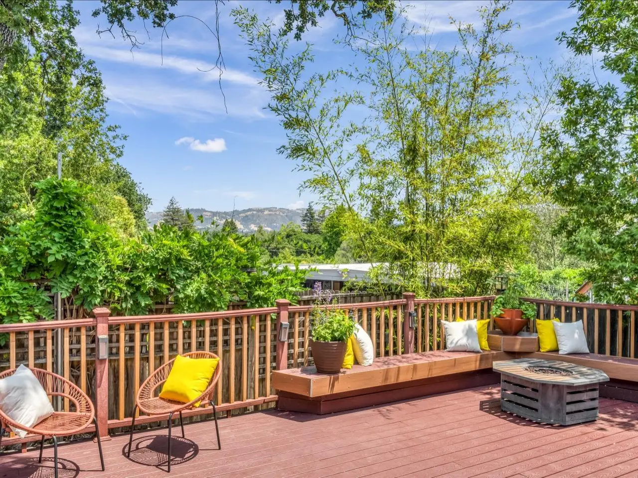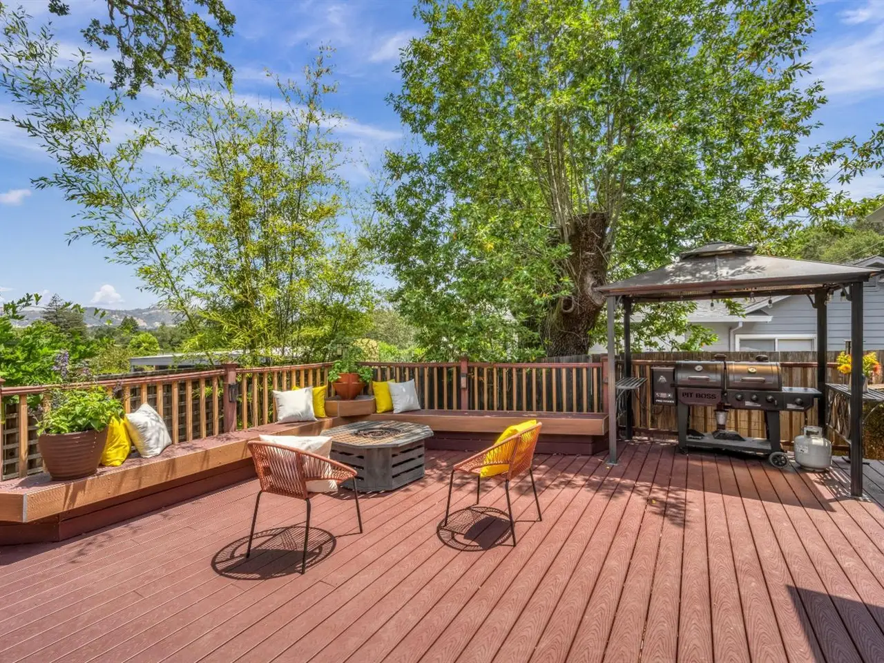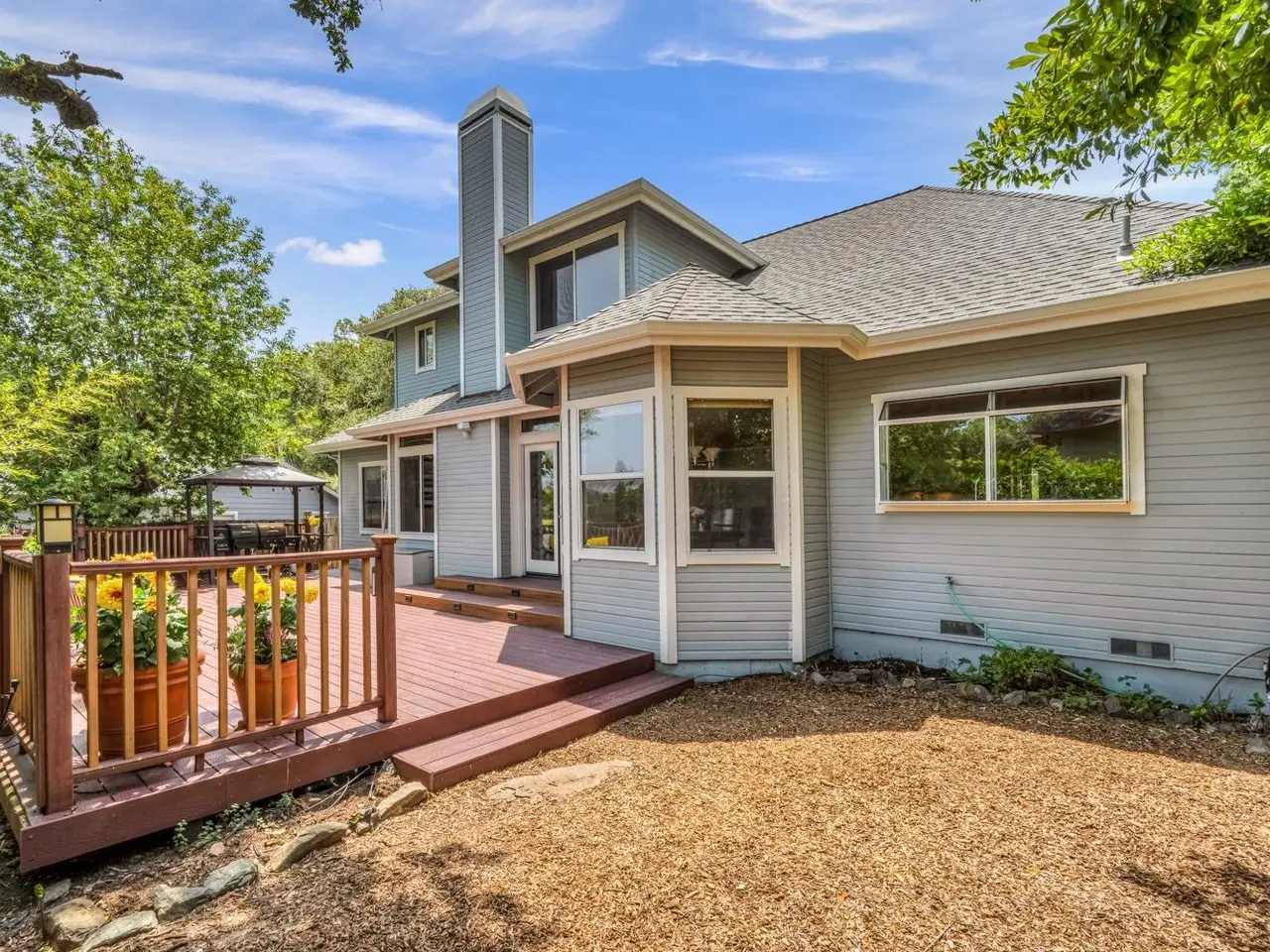Entertainer's Dream in Private Bennett Valley Setting! Welcome to this expansive home -From the moment you arrive, a two-story entry and sweeping staircase set the tone. Vaulted ceilings soar above a sunken living room anchored by a fireplace,and the adjacent dining area comfortably seats 10, with a great open floor plan. At the heart of the home, the updated kitchen shines. A garden window fills the space with natural light, and new appliances including an induction cooktop and stainless refrigerator. A breakfast nook offers wraparound views of the hills. The open-concept layout flows seamlessly into a cozy den, complete with a wet bar and built-in refrigerator to support entertaining. French doors lead to a generous Trex deck featuring built-in seating, a pergola, and a propane fire tableideal for entertaining. On the first floor, a guest bedroom and full bathroom provide an ideal guest suite. A conveniently placed laundry room adds everyday ease. A 3-car garage offers built-in cabinetry, a workbench, and overhead storage. Retreat upstairs to the primary suite, where vaulted ceilings, a jetted tub, oversized shower, and walk-in closet. Two additional large bedrooms share a double‐sink bathroom with shower over tub. This stunning 4 bedroom home is spacious and comfortable!
