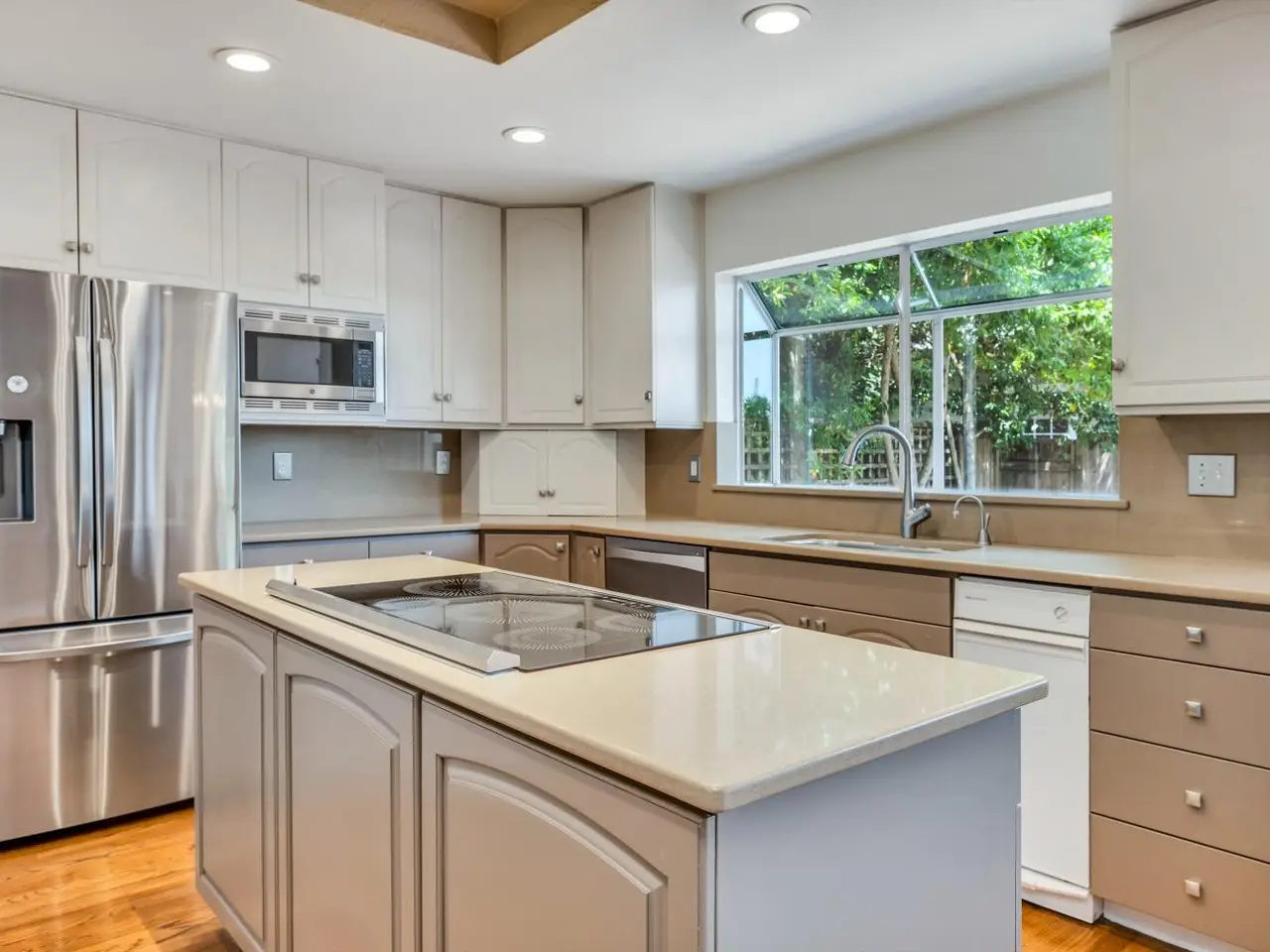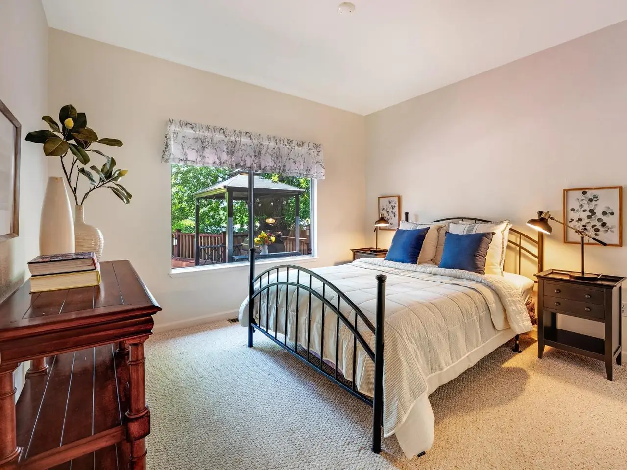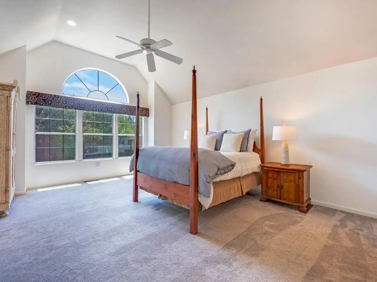 Entertainer's Dream in Private Bennett Valley Setting! Welcome to this expansive home -From the moment you arrive, a two-story entry and sweeping staircase set the tone. Vaulted ceilings soar above a sunken living room anchored by a fireplace,and the adjacent dining area comfortably seats 10, with a great open floor plan. At the heart of the home, the updated kitchen shines. A garden window fills the space with natural light, and new appliances including an induction cooktop and stainless refrigerator. A breakfast nook offers wraparound views of the hills. The open-concept layout flows seamlessly into a cozy den, complete with a wet bar and built-in refrigerator to support entertaining. French doors lead to a generous Trex deck featuring built-in seating, a pergola, and a propane fire tableideal for entertaining. On the first floor, a guest bedroom and full bathroom provide an ideal guest suite. A conveniently placed laundry room adds everyday ease. A 3-car garage offers built-in cabinetry, a workbench, and overhead storage. Retreat upstairs to the primary suite, where vaulted ceilings, a jetted tub, oversized shower, and walk-in closet. Two additional large bedrooms share a double‐sink bathroom with shower over tub. This stunning 4 bedroom home is spacious and comfortable!