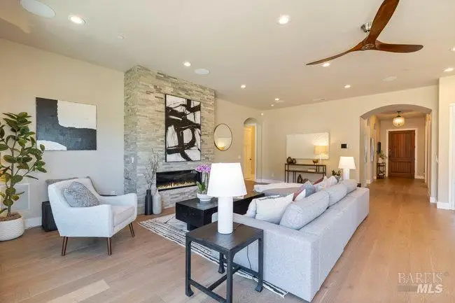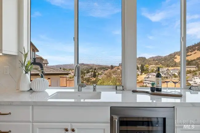 Impressive custom Christopherson home built in 2022, set amid expansive open space with stunning panoramic views throughout. This single-level residence features an open floor plan, arched hallway entries, and spacious great room, which is the heart of the home, and is anchored by a welcoming fireplace and effortlessly connected to a 700 square foot Trex deck - ideal for indoor-outdoor living. Chef's kitchen offers a large granite-topped island with prep sink, walk-in pantry and premium appliances including a Wolf 6-burner gas range, Sub-Zero fridge and wine fridge. Considerable private primary suite includes deck access, serene views, oversized walk-in closet and spa-like bath with curb-less wet room, soaking tub, radiant heat and dual-sink vanity. Secondary bedrooms are peaceful sanctuaries and all baths display stylish finishes. Additional highlights include a home office/flex room, chic ceiling fans, plantation shutters, Hunter Douglas remote shades, surround sound with Paradigm speakers, and Elan smart home wiring. Pristine garage boasts epoxy floors, storage, utility sink, and two EV chargers. Adding to its appeal are the Spanish tile roof, Generac backup generator, 14-panel owned solar, keyless entry, tankless water heater, pro landscaping, and proximity to the best Sonoma County has to offer!