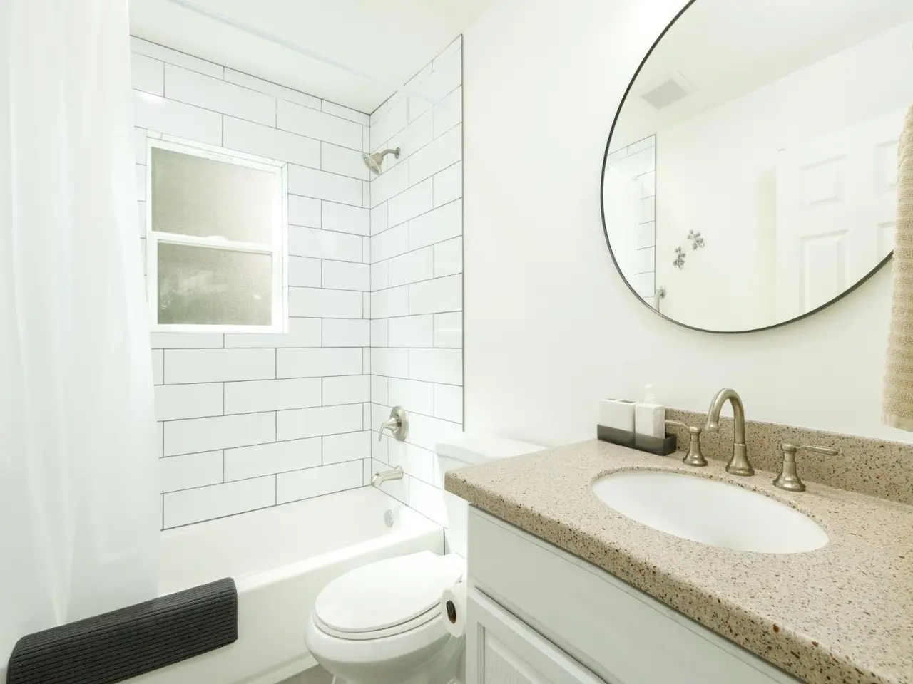 Redesigned kitchen with new cabinets, countertops, island, and wine fridge