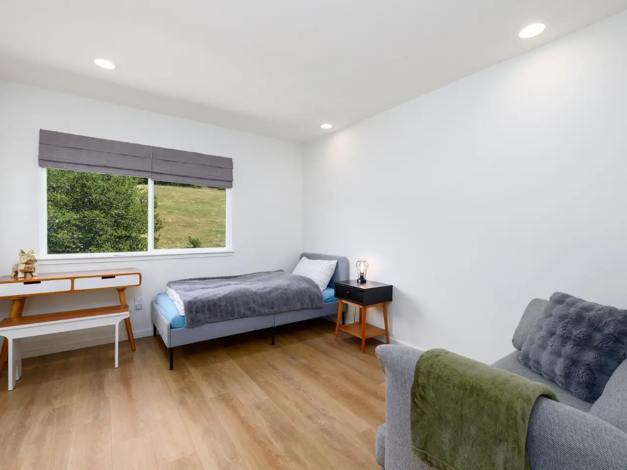 This thoughtfully updated 4-bedroom, 3-bathroom home offers 2,080 SgFt of living space on 4.43 private acres in Sonoma's Bennett Valley. Extensively remodeled, the property has been upgraded for comfort, functionality, and long-term durability. The downstairs flex room is great for kids or entertainment. Recent improvements include a redesigned kitchen with new cabinets, countertops, island, fixtures, and a wine fridge, along with updated bathrooms, new flooring throughout, and fresh interior and exterior paint. Upstairs, the bedrooms were reconfigured to create a dedicated master suite alongside two additional bedrooms, and a new walk-in service closet. The exterior features a repaved driveway with added parking, new concrete flatwork, and a west-facing deck overlooking hillside views. A Tesla Powerwall provides whole-house backup during outages, while the upgraded water system includes a 2,500-gallon tank, booster pump, and pressure tank. A new retaining wall, trench drains, and catch basins improve drainage and reduce the need for sump pumps. Additional updates include WiFi-enabled controls for the Google Nest system, garage door, and smoke detectors. Beautifully updated and ready to enjoy home offers privacy, modern updates, and peaceful surroundings.