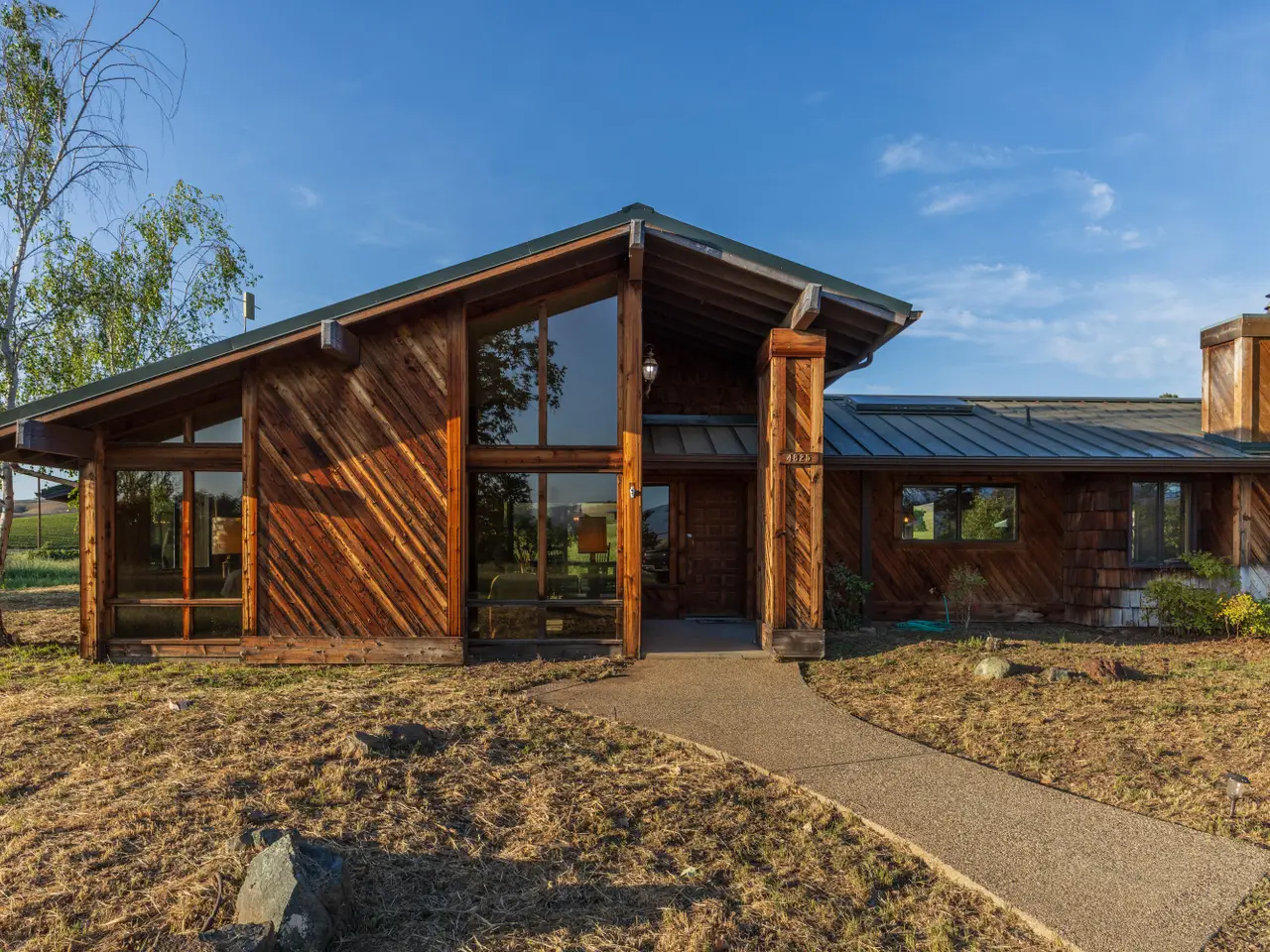 This is a rare chance to own one of Rancho Estates' most desirable parcels--Lot #1, carefully chosen for its flat, usable terrain, privacy, and sweeping mountain views. Built in 1980 by a reputable builder family for themselves, the original 3-bedroom, 3-bath home sits nestled at the end of a tree-lined drive on a stunning parcel with a cedar shingle exterior, a standing seam metal roof, and an oversized two-car garage. The land-scape is natural and low maintenance, perfect for those who value simplicity and space. Inside, the layout offers solid bones and a smart floor plan with clear potential. A vaulted living room brings in natural light, and the large primary suite features high ceilings, an ensuite bath, and a generous closet. The home is ready to be reimagined, but the essentials are here: incredible views, privacy, and a location that can't be replicated. Whether you're envisioning a timeless farm-house, a sleek modern estate, or a charming vineyard escape, this property is ready for its next chapter.