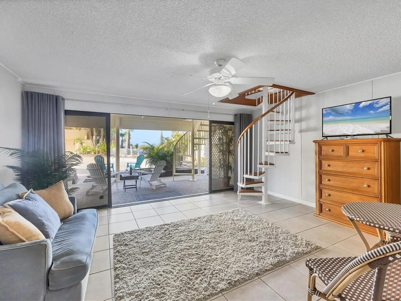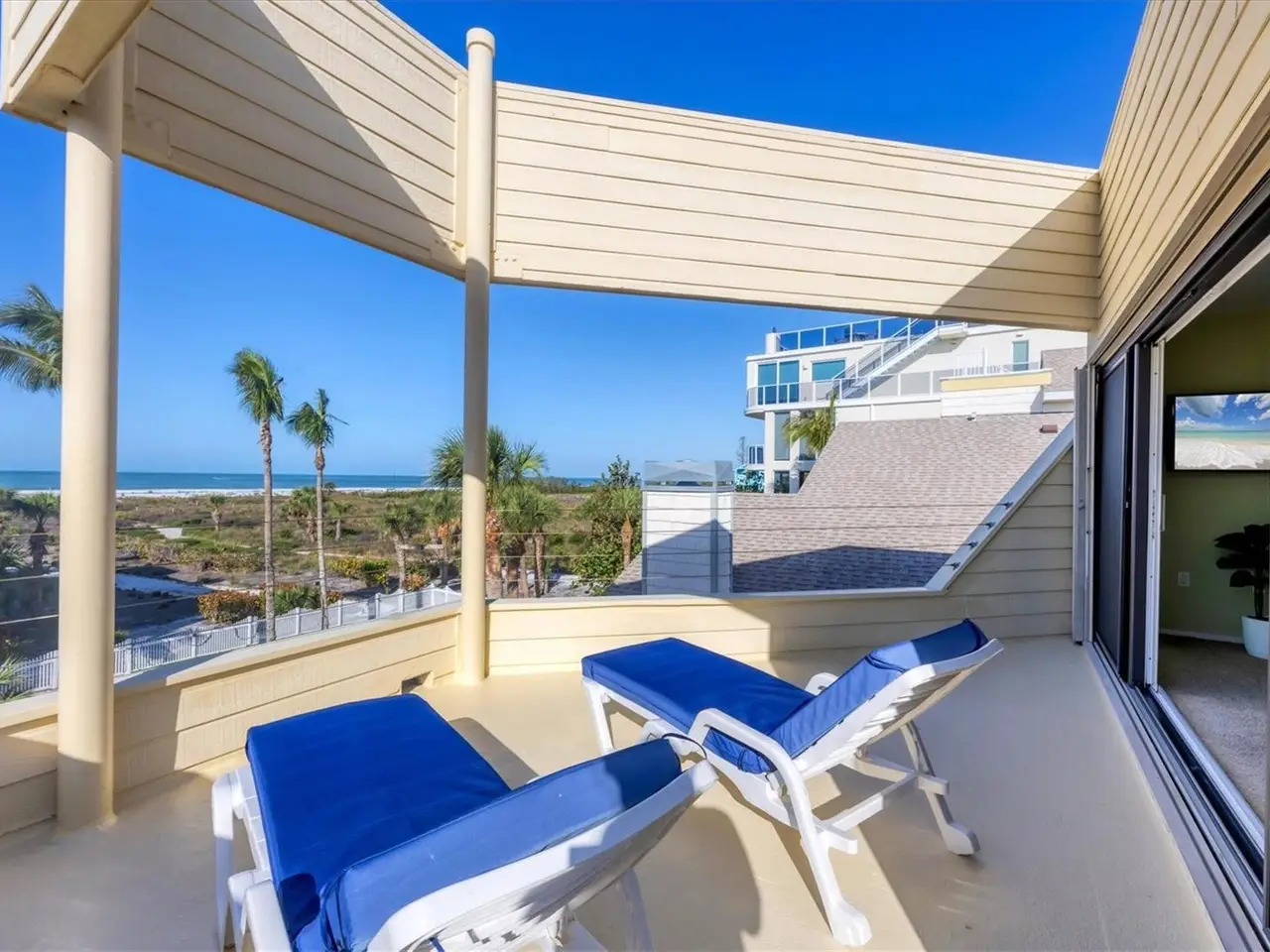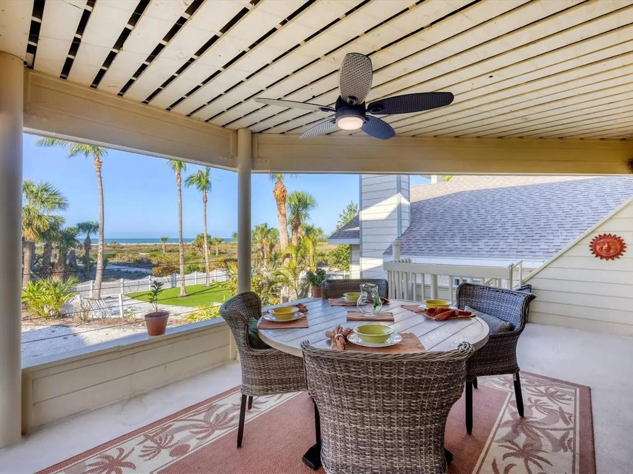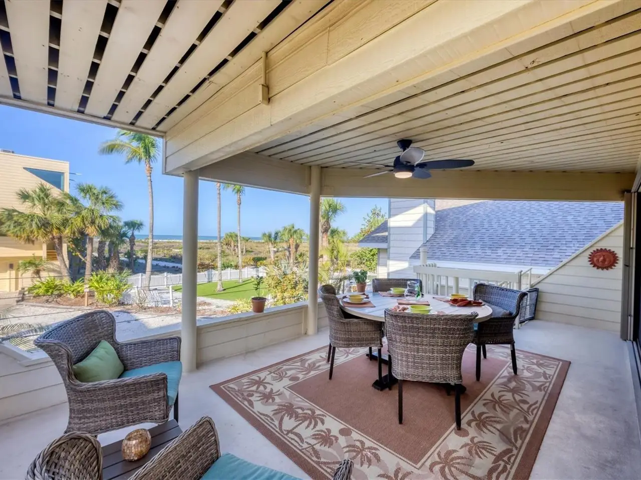 Covered patio with direct beach access