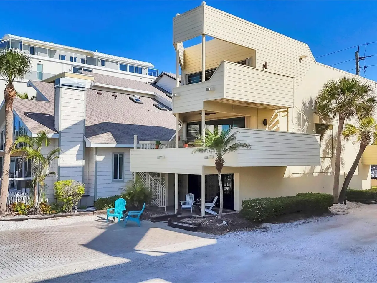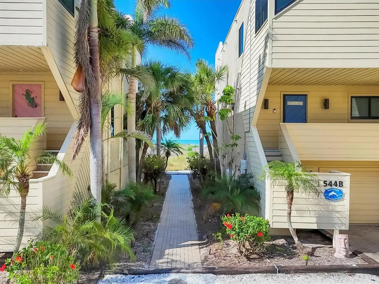 A beachfront home for the price of a condo. 540 Beach Road on Siesta Key is a three-story standalone Gulf front residence with private beach access and breathtaking views directly on famed Siesta Key Beach. Privacy and exclusivity await at Tiffany Sands, an enclave of only 9 units. With expansive Gulf views from the moment you open the front door, 540 Beach Road is a detached single-family condo overlooking the sandy shores of the #1 beach in America. This meticulously maintained 2 bedroom, 3 ½ bath home features a bonus cabana room and one-car attached garage. With pride of ownership and nearly 1,900 sq ft under air, this maintenance-free standalone villa features private beach access. Every floor boasts floor-to-ceiling sliding glass doors and expansive terraces with stunning unobstructed views of the shimmering shores of the Gulf. With just over 3,000 sq ft total combined living space, the light-filled, open-plan main level consists of a recently remodeled kitchen, half bath, living room and dining area. 16-foot newly installed sliding glass doors provide access to the main covered deck, a great spot for your morning coffee and perfect for entertaining or relaxing as you revel at the majestic views of the beach and stunning sunsets. On the upper floor you will find 2 large en-suite bedrooms with private, newly updated full baths. The main suite has spectacular views with floor-to-ceiling sliding glass doors that open to a private deck, the perfect spot for sunning or reading a book. Main suite has 3 large closets and an oversized bathroom with double vanities and skylights. The 2nd bedroom features a cozy deck with sliders and a private bath with skylight. On the upper floor you will find a large laundry closet with new washer & dryer. The downstairs cabana room is complete with full bath and storage, floor-to-ceiling sliders and a covered patio with direct access to the beach. 540 Beach comes with private parking for 5 cars and additional guest parking. 540 Beach is situated precisely one-half mile to the heart of Siesta Key Village and a half mile to world renowned Siesta Key Public Beach. You have the option to make this your forever home or a lucrative vacation rental, as the present owners enjoy months of using the residence for their personal pleasure and rent it for a portion of the year, garnering substantial rental income. Home is equipped with 2 A/C units- one of which is BRAND NEW, new sliders on the upper levels, new hot water heater and storm shutters. 15+ years remain on the roof warranty. A one-of-a-kind property, 540 Beach is a private beachfront residence that feels like a home but is priced like a condo. Available turnkey furnished.