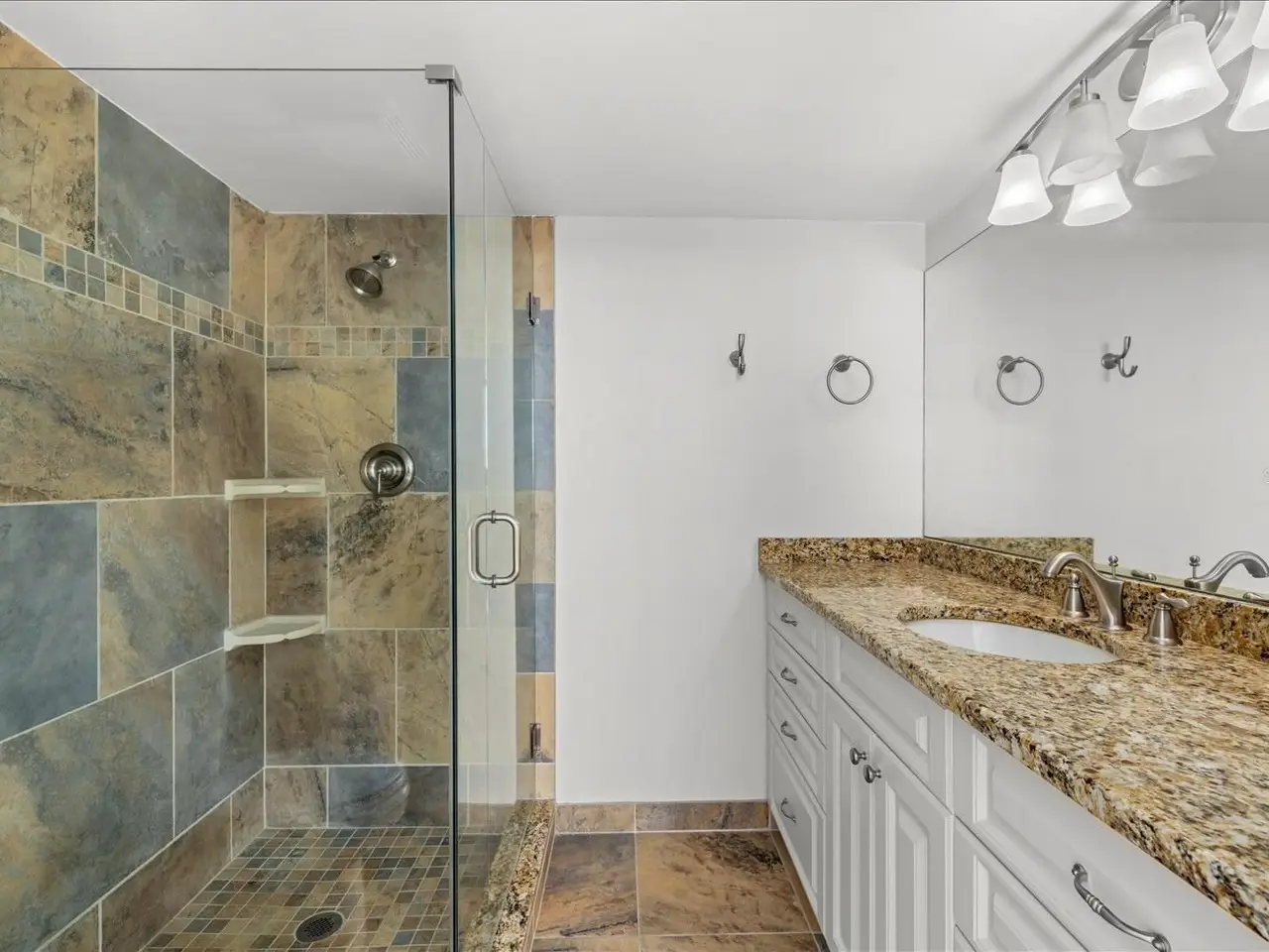 Tiled flooring and updated cabinetry