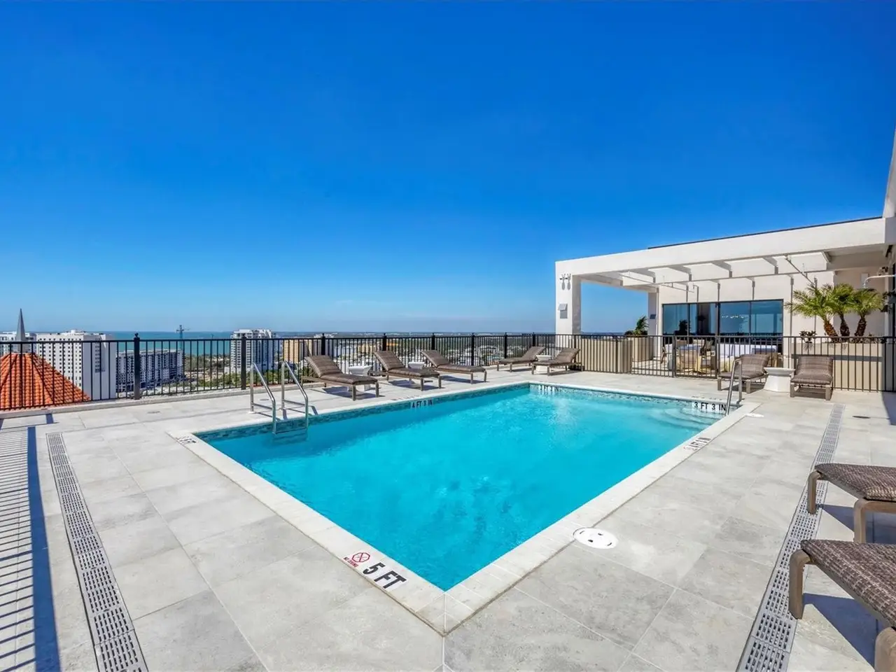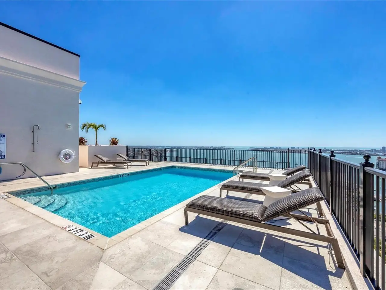 Welcome to the DeMarcay- an 18-story boutique condominium community located on Palm Avenue, in the heart of downtown Sarasota. This beautiful 2 bedroom, 2 bathroom home on the 14th floor comes fully appointed and furnished. The residence features 11-foot ceilings, Italian cabinetry, Miele appliances including a gas cooktop, porcelain floors throughout, quartz countertops, built-out closets, and a custom dry bar. Relax on the terrace and enjoy the abundance of natural light and sweeping views of Sarasota. An array of thoughtful amenities are found on the 18th floor rooftop - all with unobstructed 360-degree views of the Bay and downtown skyline. The outdoor amenities include a heated, saltwater pool and lanai area, an outdoor kitchen and a generous entertaining area. Inside you will find a fitness center and sophisticated club room with a lounge area, dining table, bar and catering kitchen where you can entertain guests or just enjoy the views and sense of community that the DeMarcay has to offer. On-site staff is available 24/7 providing resident services for owners whether they are in town or traveling, offering a true "lock and leave" lifestyle.