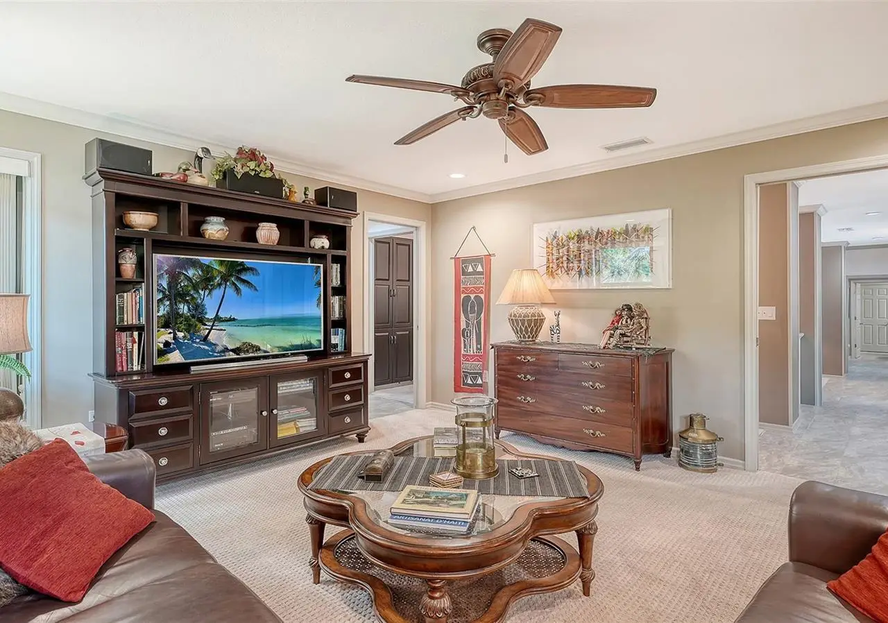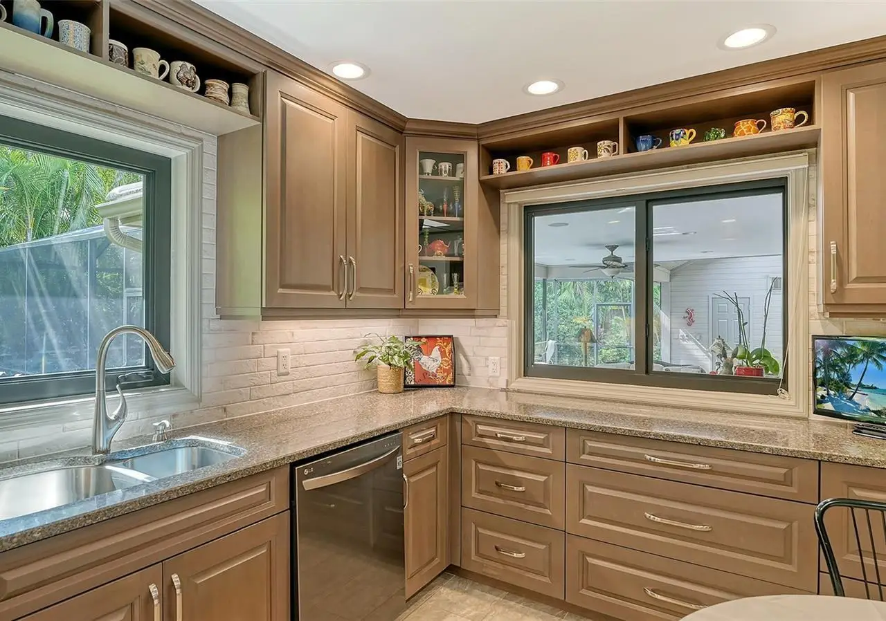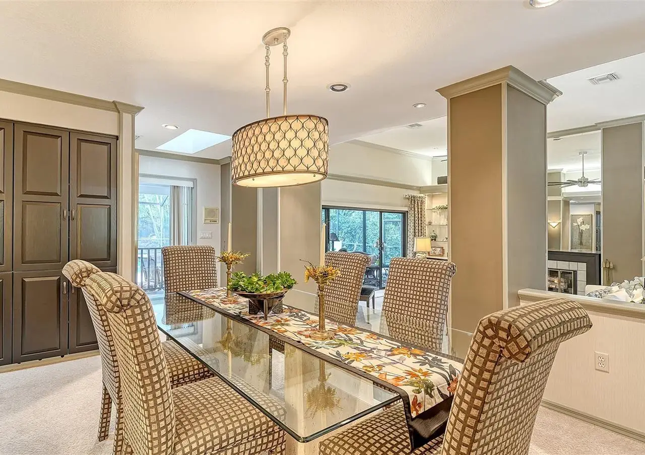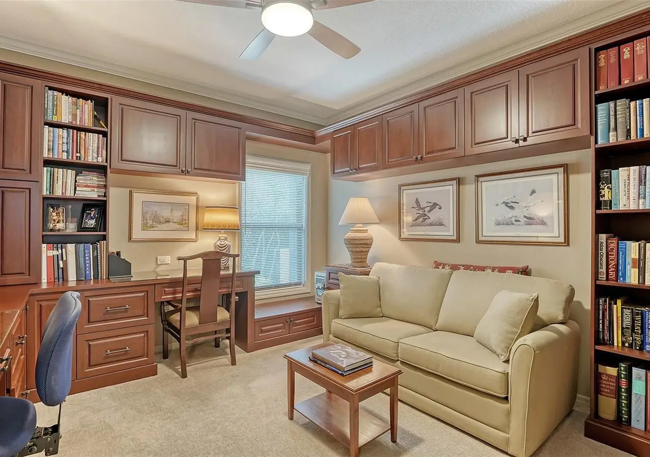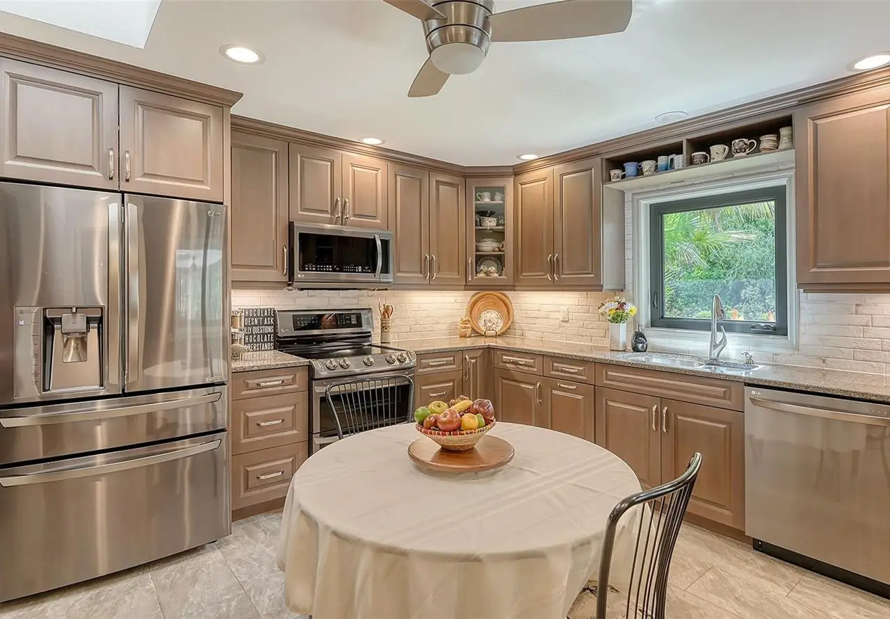 Located in Sarasota’s coveted and 24-hour guard-gated West of Trail community, The Landings, this beautifully reimagined 3-bedroom, 3-bath residence with a bonus room offers refined coastal living and peace of mind through extensive, high-quality updates. Situated on a lushly landscaped lot with mature trees and privacy and not in a flood zone, this 2,921 sf home blends timeless architecture with thoughtful modern improvements, all just minutes from Siesta Key’s world-famous beaches and Downtown Sarasota. Hurricane-impact windows were added in 2023, and the newer roof and updated PVC plumbing offer structural integrity and long-term value. Design upgrades include porcelain tile flooring and beautiful custom wood cabinetry and built-ins. The fully updated kitchen features premium stainless appliances, Silestone counters, stylish cabinetry, a picture frame window overlooking the beautiful garden, a convenient pass thru window to the lanai, and custom walk-in pantry. The adjacent dining room is perfect for entertaining and the formal living room with its high ceiling is anchored by a woodburning fireplace with tiled hearth and built-ins. The split-bedroom floor plan offers privacy and functionality, with all 3 bedrooms, (one currently outfitted as a convenient home office with solid wood built-ins) boasting custom walk-in closets and lovely bathrooms. A spacious bonus room is light and bright and includes a redesigned alcove with floor-to-ceiling custom built-ins to house books, media, or art. Every inch of this home reflects quality, style, and enduring craftsmanship. The interior of the home flows seamlessly to the elegant and serene exterior where you will enjoy the professionally redesigned landscape with exquisite plantings, brick paver driveway, meandering walking path, elevated relaxation area, peaceful fountain, and custom exterior lighting. The spectacular pool area underwent a major renovation in 2020 which included resurfacing with Pebble Tec (lifetime warranty), installation of a new heater and pump, and the addition of a stylish new Italian tile surround. The lanai was rescreened in 2023 and the deck was upgraded with a high-performance Pro Tech surface for durability and beauty. Located behind the gates of The Landings, residents enjoy tree-canopied streets, a nature trail leading to Roberts Bay, and optional membership to the Landings Racquet Club, offering tennis, pickleball, a heated pool, fitness center, and clubhouse. With proximity to A-rated schools, Southside Village, Sarasota Memorial Hospital, and the cultural amenities of downtown Sarasota, this property is a rare opportunity to own a truly move-in-ready home in one of Sarasota’s most sought-after communities