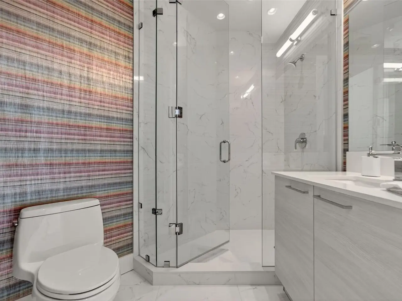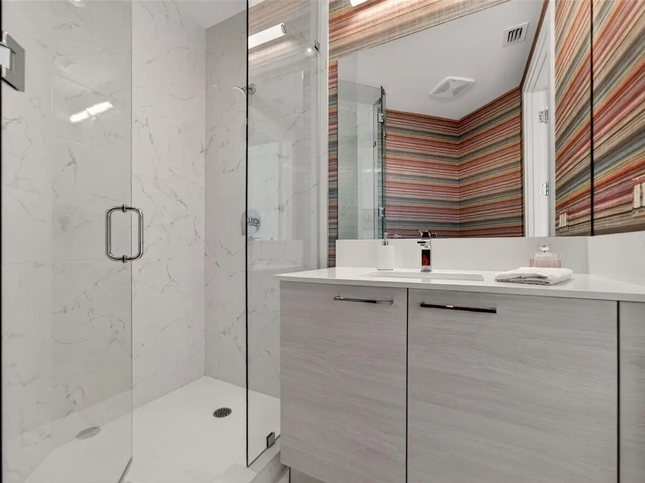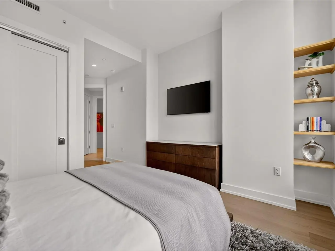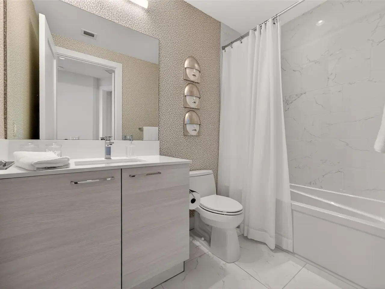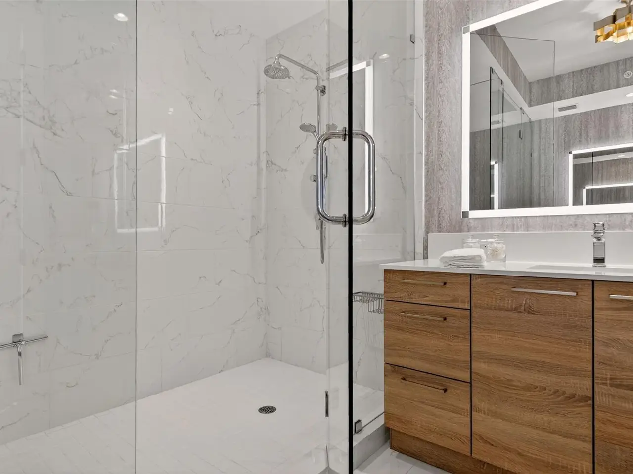 Design perfection at The Mark in this exquisitely designed and impeccably maintained three-bedroom residence with dramatic art gallery entrance. From the moment you step inside, walls of glass frame sweeping vistas of the sparkling city skyline and Sarasota Bay. The home features two private and spacious balconies inviting you to enjoy morning coffee or sunset cocktails. The open living, dining, and kitchen spaces are filled with natural light from full height sliding glass doors that open onto the terrace. Electronic window treatments add a refined touch, allowing you to balance privacy with soft daylight. The sophisticated den with custom shelving and its picturesque view creates the perfect home office or cozy reading nook. The primary suite is a peaceful sanctuary with its own private balcony, custom-designed closet, and spa-like bath featuring dual vanities, lighted mirrors, and a spacious frameless glass shower. Two additional en-suite bedrooms offer comfort and privacy for family and guests. Touches of sophisticated designer wall paper and custom lighting throughout the home. The chef’s kitchen is both stylish and functional, featuring Nolte Premium European cabinets, quartz countertops, Euro Dark/High Gloss soft-close doors, sliding shelves, subway tile backsplash, and Italian-honed porcelain floors. This home is like a brand-new residence with every detail perfectly executed. For convenience and peace of mind, the condo includes a temperature-controlled storage unit on the same floor as residence, two side-by-side gated parking spaces, and access to two electric vehicle charging stations. World class amenities include the 5th floor amenity deck sporting a 65-foot resort style heated saltwater pool and spa, lounge area, fire pit, outdoor grills, high tech fitness center, spin room and a club room with fire place, bar, billiards, catering kitchen and newsroom. The concierge service provides convenience and security. Experience the epitome of urban living in Sarasota. Indulge in the vibrant arts and culture scene, fine dining and upscale shopping, all within walking distance.