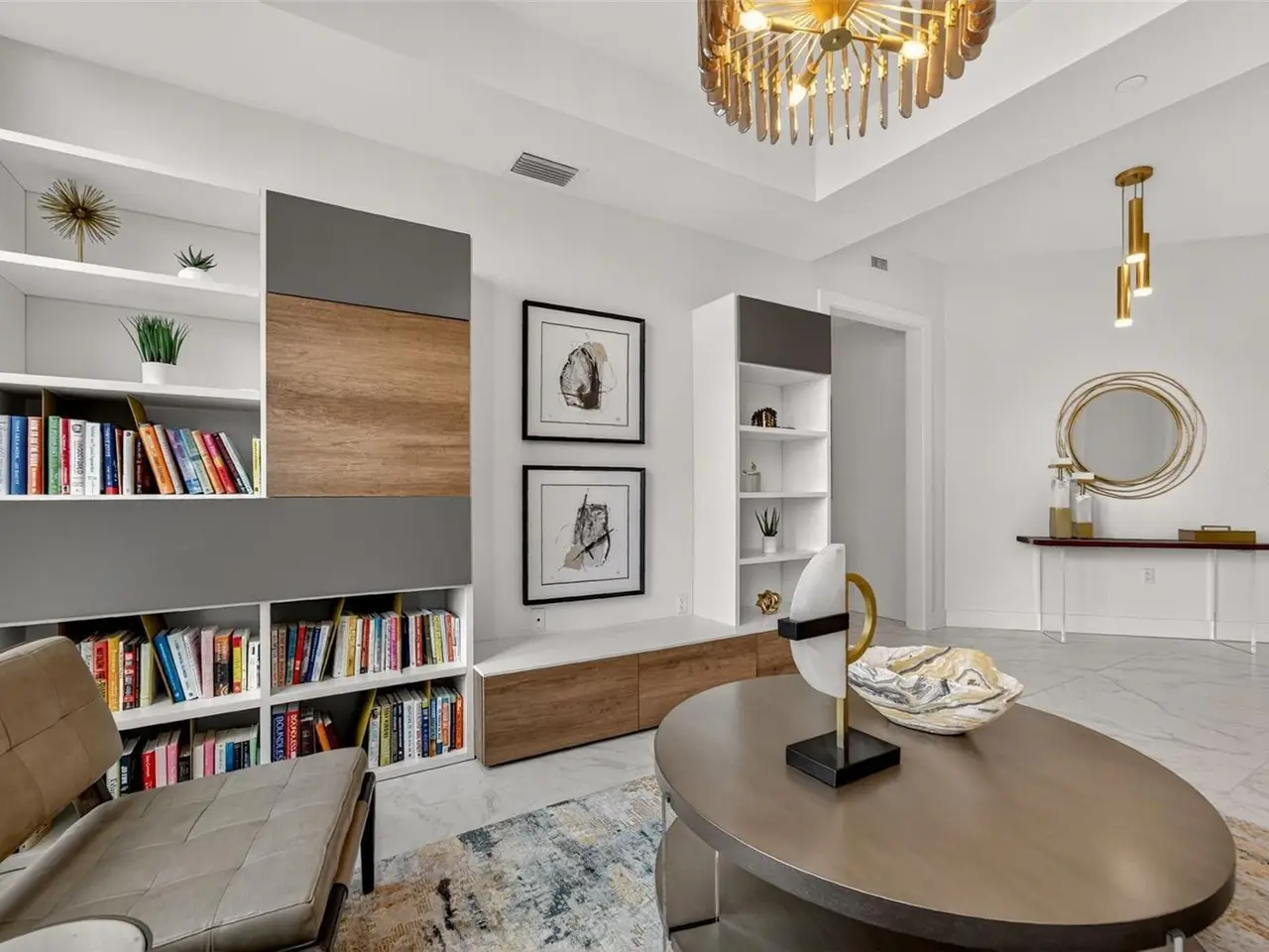 Den with custom shelving