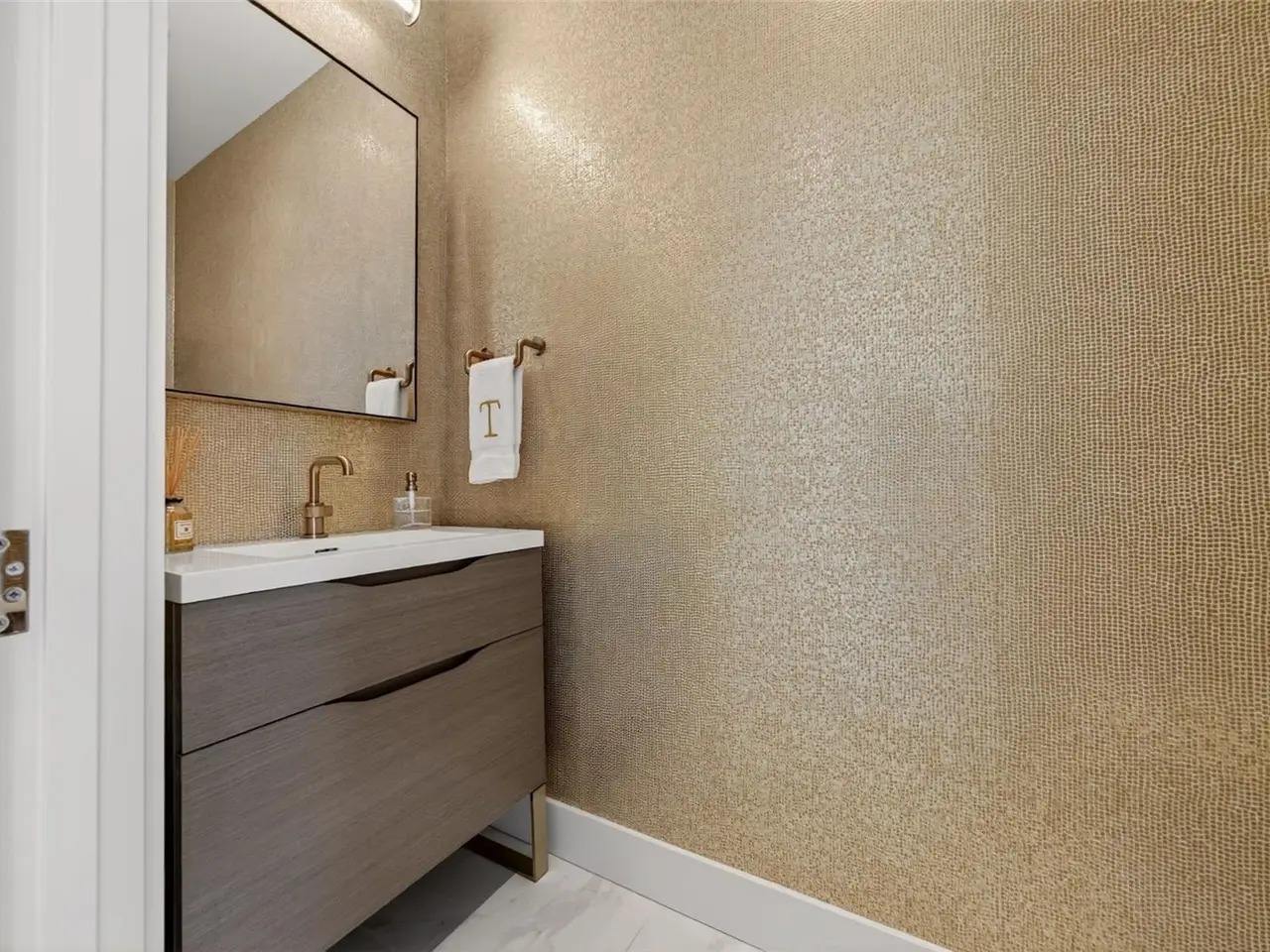 Italian-honed porcelain floors