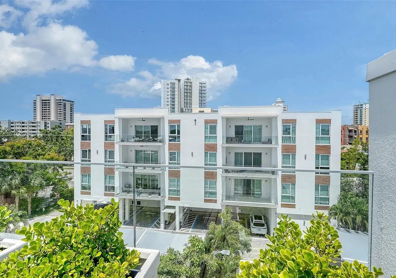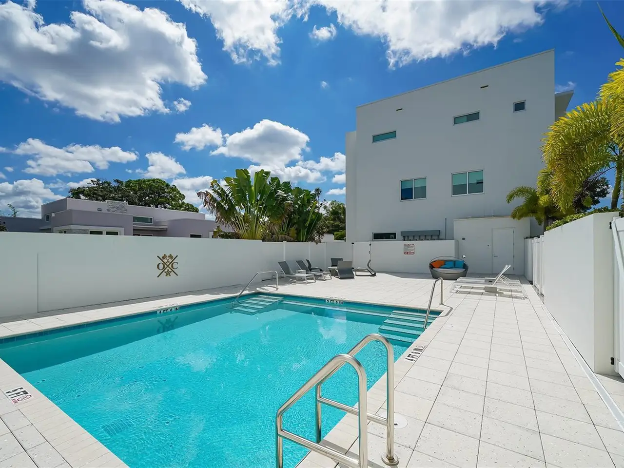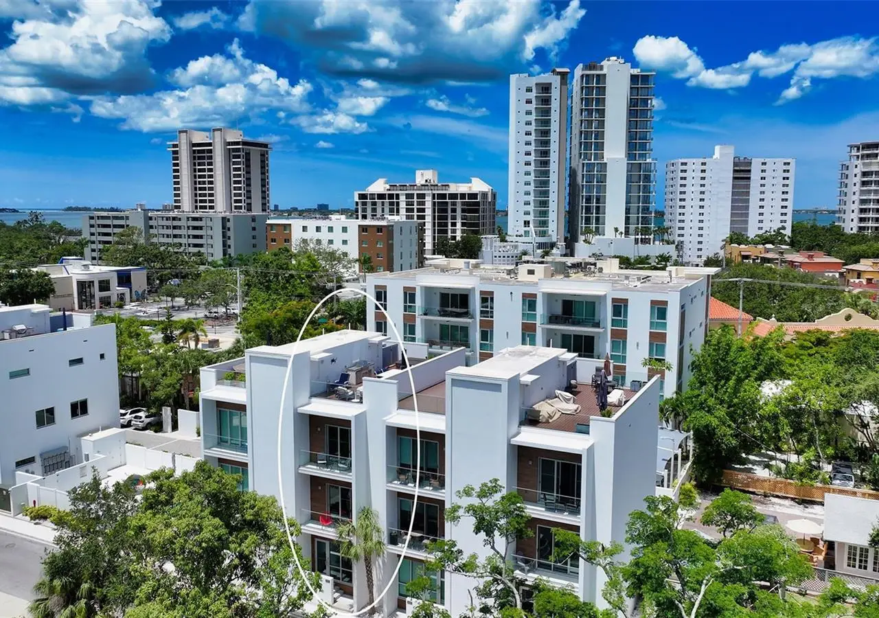 Sophisticated urban living awaits in this refined three-story townhouse with a PRIVATE ELEVATOR and expansive ROOFTOP DECK, located in the exclusive Townhomes of Orange Club in downtown Sarasota. Just steps from the historic Burns Court district and the city's vibrant Bayfront, this stylish residence offers 2,300 SF of thoughtfully designed living space, including 3 bedrooms each with their own ensuite bathroom. The private rooftop deck is a true sanctuary featuring a jacuzzi hot tub, outdoor kitchen, privacy wall, and 608 SF of additional outdoor living space - perfect for relaxing or entertaining under the stars, all with captivating city views. Designer finishes throughout, soaring 10-ft smooth-finish ceilings, Low-E impact windows and doors, contemporary baseboards and casings all enhance the home's clean aesthetic. A private two-car garage opens to a welcoming foyer and a guest bedroom with ensuite bath on the first level. The second floor is designed for effortless entertaining, with an open-concept great room, east- and west-facing balconies with frameless glass railings for unobstructed views, powder room, and a gourmet kitchen featuring imported Italian cabinetry, quartz countertops, and Jenn-Air stainless steel appliances, including a six-burner gas range. Upstairs, the third floor hosts a serene primary suite and a spacious second bedroom, both with ensuite baths and private balconies. A laundry closet with full-size washer and dryer adds convenience. Residents of Orange Club enjoy a secure, upscale community with surveillance cameras, a heated pool, and a sun lounge area. Located in the heart of Sarasota, you're just moments from the city's best, including a thriving arts and culture scene, award-winning dining, boutiques, nightlife, farmers market, and year-round festivals. This is downtown Sarasota living at its finest.
