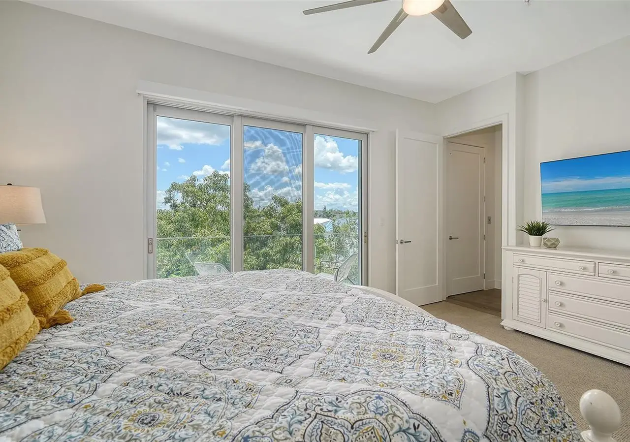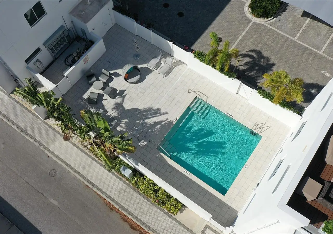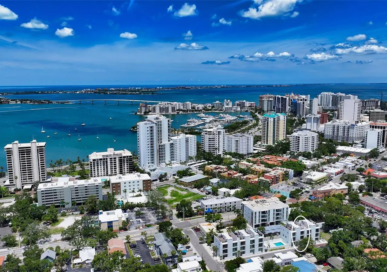 Sophisticated urban living awaits in this refined three-story townhouse with a PRIVATE ELEVATOR and expansive ROOFTOP DECK, located in the exclusive Townhomes of Orange Club in downtown Sarasota. Just steps from the historic Burns Court district and the city's vibrant Bayfront, this stylish residence offers 2,300 SF of thoughtfully designed living space, including 3 bedrooms each with their own ensuite bathroom. The private rooftop deck is a true sanctuary featuring a jacuzzi hot tub, outdoor kitchen, privacy wall, and 608 SF of additional outdoor living space - perfect for relaxing or entertaining under the stars, all with captivating city views. Designer finishes throughout, soaring 10-ft smooth-finish ceilings, Low-E impact windows and doors, contemporary baseboards and casings all enhance the home's clean aesthetic. A private two-car garage opens to a welcoming foyer and a guest bedroom with ensuite bath on the first level. The second floor is designed for effortless entertaining, with an open-concept great room, east- and west-facing balconies with frameless glass railings for unobstructed views, powder room, and a gourmet kitchen featuring imported Italian cabinetry, quartz countertops, and Jenn-Air stainless steel appliances, including a six-burner gas range. Upstairs, the third floor hosts a serene primary suite and a spacious second bedroom, both with ensuite baths and private balconies. A laundry closet with full-size washer and dryer adds convenience. Residents of Orange Club enjoy a secure, upscale community with surveillance cameras, a heated pool, and a sun lounge area. Located in the heart of Sarasota, you're just moments from the city's best, including a thriving arts and culture scene, award-winning dining, boutiques, nightlife, farmers market, and year-round festivals. This is downtown Sarasota living at its finest.