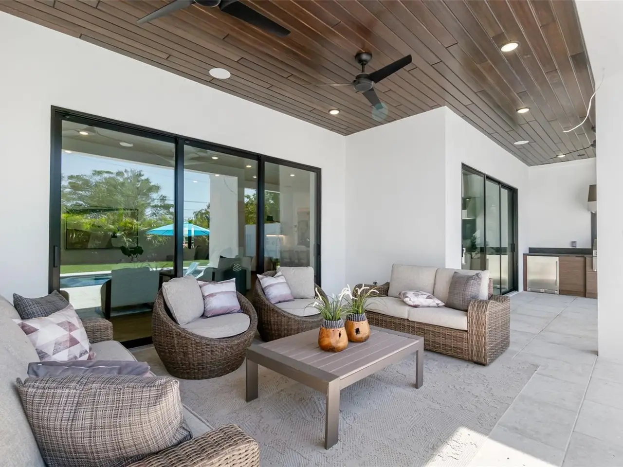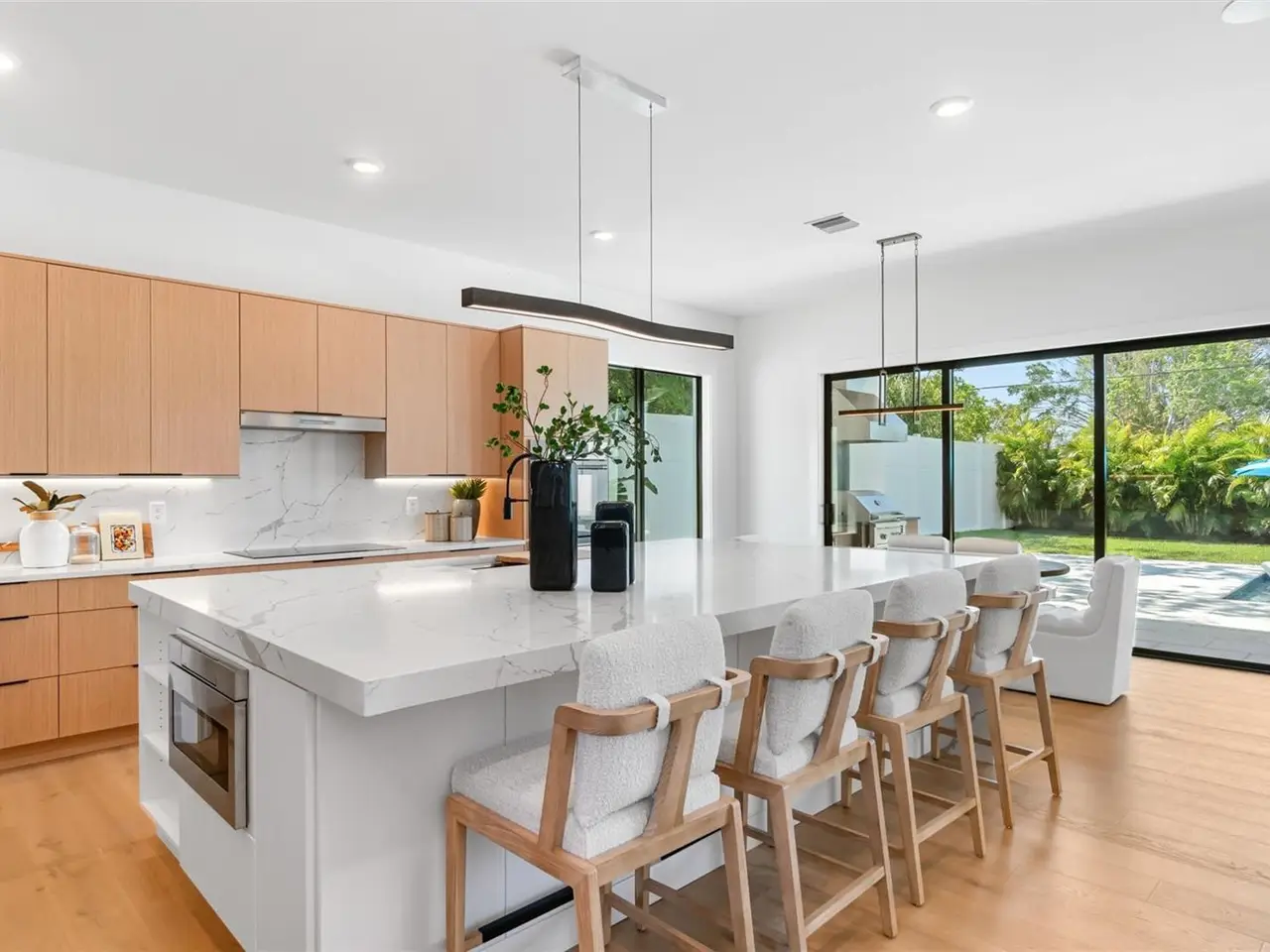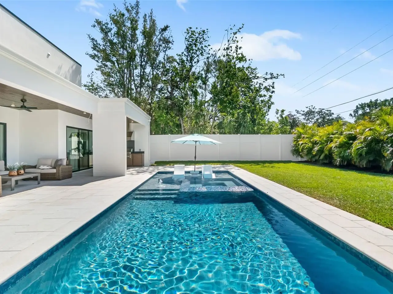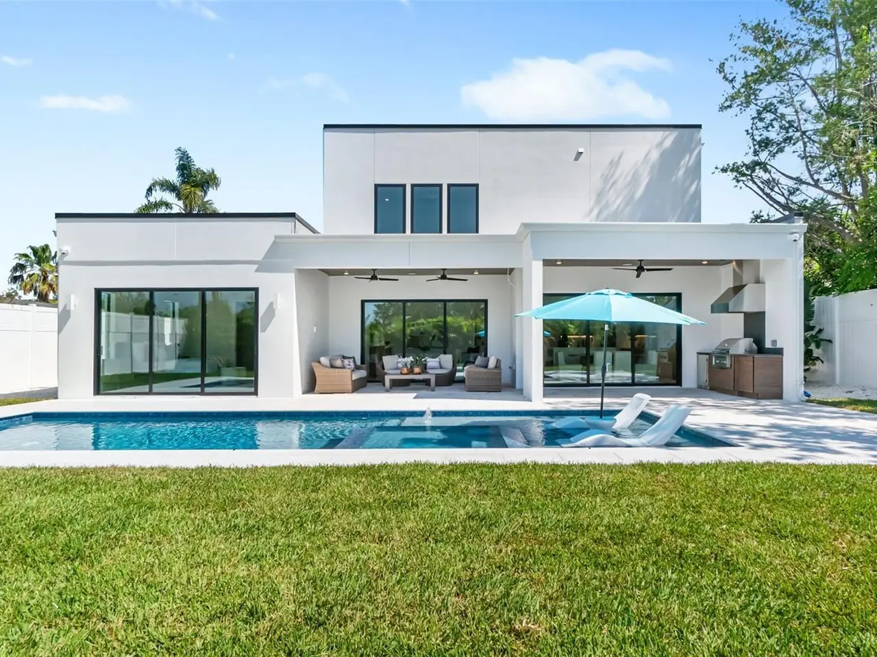 Modern refinement blends seamlessly with elegance and comfort in this stunning, new construction masterpiece from TDI Coastal Homes. An ideal location, this home is situated 10 minutes from the world famous Crescent beach on Siesta Key and just minutes to downtown Sarasota. Peace of mind is assured as this property is not in a flood zone and is perched a safe 21 feet above sea level. With a front facade that boasts clean lines and a captivating mix of wood, stone and a unique commercial style glass garage door, your curb appeal will be undeniable as you welcome family and friends into your sophisticated sanctuary. Cutting edge material and design does not sacrifice quality and durability as the engineered hardwood floors throughout the first floor create the perfect foundation for the exquisite open concept design. A chef's kitchen, featuring Thermador appliances, quartz countertops, an oversized island, intriguing fixtures and a walk-in pantry, lies at the heart of the home and is undoubtedly where your guests will gather to enjoy your inspired culinary creations. Find respite in your primary suite that will envelope you in luxury as you rest and recharge from your days filled with Suncoast adventures. The first floor also offers a home office, mud room, laundry space and multiple sets of sliders to the outdoor oasis consisting of a spacious lanai with a fully appointed outdoor kitchen and multiple seating areas. The refreshing pool will keep you comfortable on sunny afternoons while the warm spa will soothe as the day fades into night. The second floor grants room for guests or additional personal space with three generous bedrooms; one bedroom with a private bath and two that share an adjoining bath. Additional features to include a mosquito misting system for added comfort, a two car garage, and a reverse osmosis system for clean, filtered ice and water. With an incredible location in a vibrant community and top notch schools just around the corner, this home offers the best of Sarasota, brimming with culture, recreation, convenience and the quintessential Florida lifestyle. TDI Coastal Homes creates homes to meet your lifestyle through innovative design and meticulous attention to creating a space that feels extravagant yet effortless.