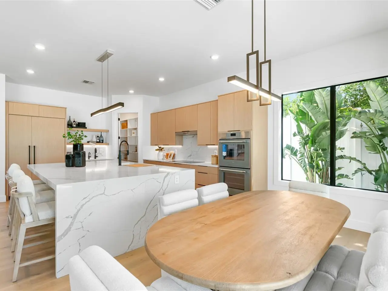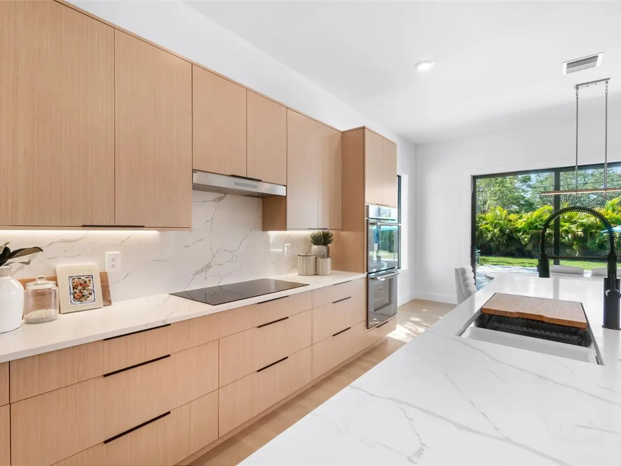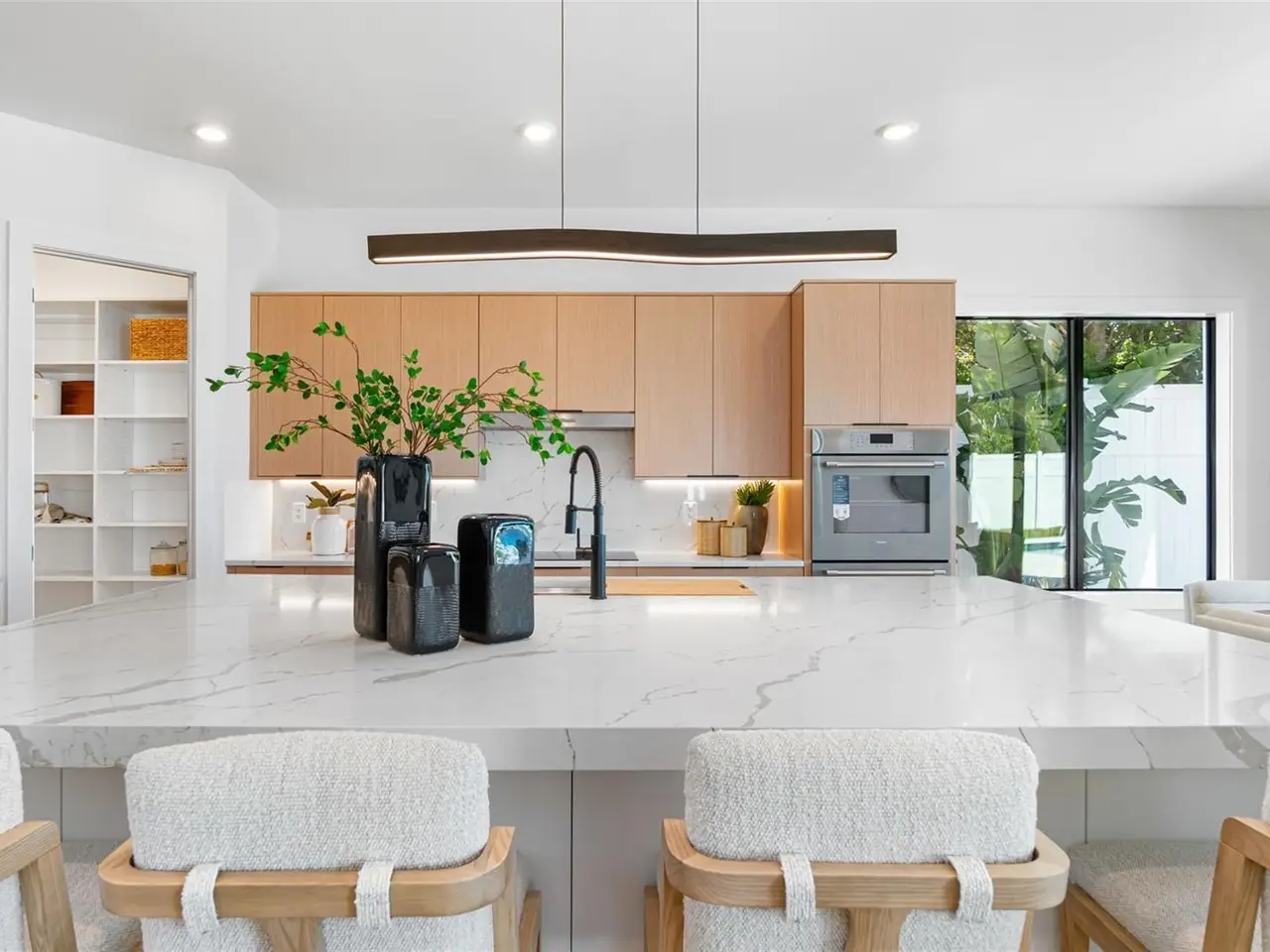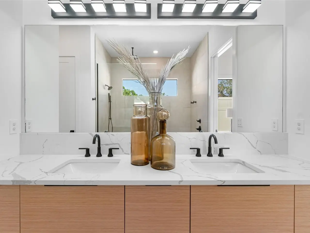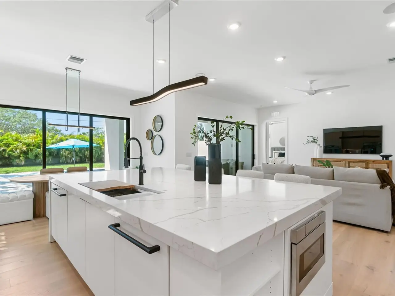 Modern refinement blends seamlessly with elegance and comfort in this stunning, new construction masterpiece from TDI Coastal Homes. An ideal location, this home is situated 10 minutes from the world famous Crescent beach on Siesta Key and just minutes to downtown Sarasota. Peace of mind is assured as this property is not in a flood zone and is perched a safe 21 feet above sea level. With a front facade that boasts clean lines and a captivating mix of wood, stone and a unique commercial style glass garage door, your curb appeal will be undeniable as you welcome family and friends into your sophisticated sanctuary. Cutting edge material and design does not sacrifice quality and durability as the engineered hardwood floors throughout the first floor create the perfect foundation for the exquisite open concept design. A chef's kitchen, featuring Thermador appliances, quartz countertops, an oversized island, intriguing fixtures and a walk-in pantry, lies at the heart of the home and is undoubtedly where your guests will gather to enjoy your inspired culinary creations. Find respite in your primary suite that will envelope you in luxury as you rest and recharge from your days filled with Suncoast adventures. The first floor also offers a home office, mud room, laundry space and multiple sets of sliders to the outdoor oasis consisting of a spacious lanai with a fully appointed outdoor kitchen and multiple seating areas. The refreshing pool will keep you comfortable on sunny afternoons while the warm spa will soothe as the day fades into night. The second floor grants room for guests or additional personal space with three generous bedrooms; one bedroom with a private bath and two that share an adjoining bath. Additional features to include a mosquito misting system for added comfort, a two car garage, and a reverse osmosis system for clean, filtered ice and water. With an incredible location in a vibrant community and top notch schools just around the corner, this home offers the best of Sarasota, brimming with culture, recreation, convenience and the quintessential Florida lifestyle. TDI Coastal Homes creates homes to meet your lifestyle through innovative design and meticulous attention to creating a space that feels extravagant yet effortless.