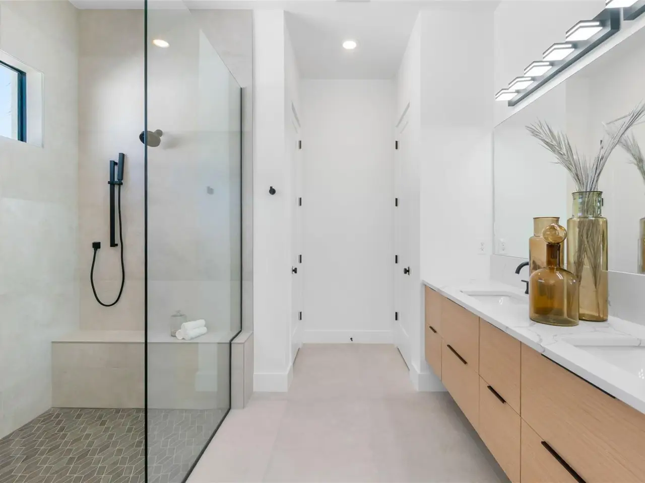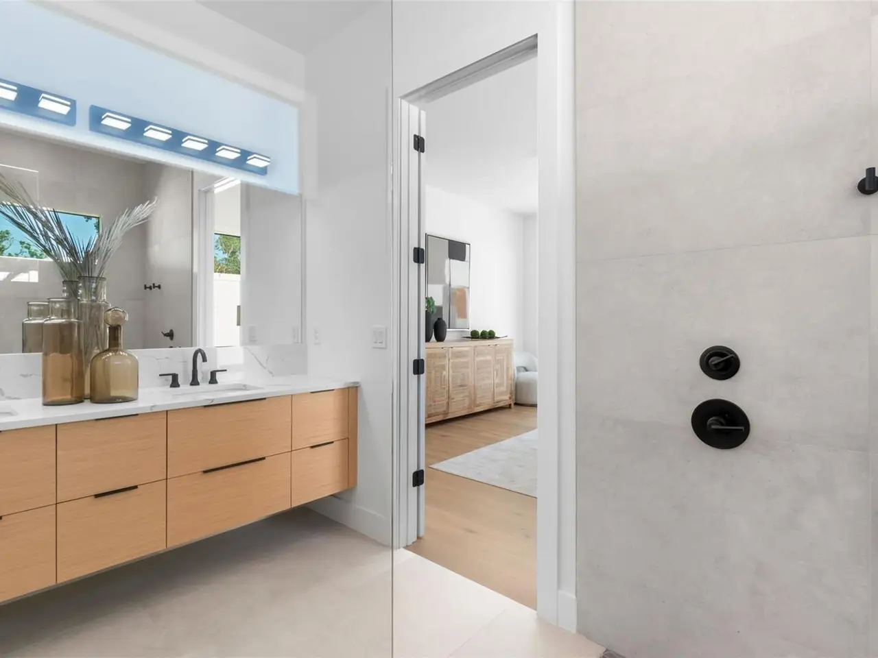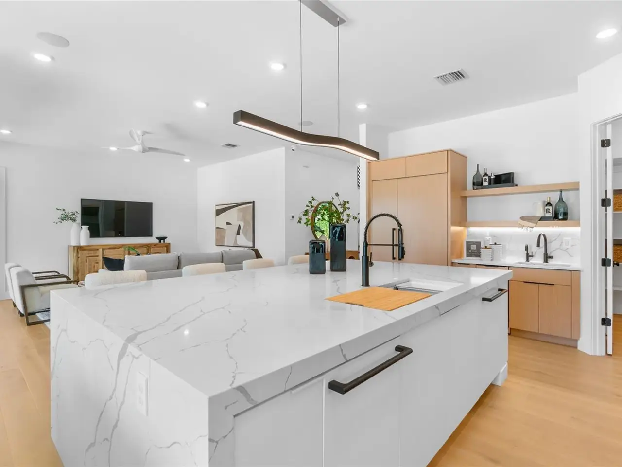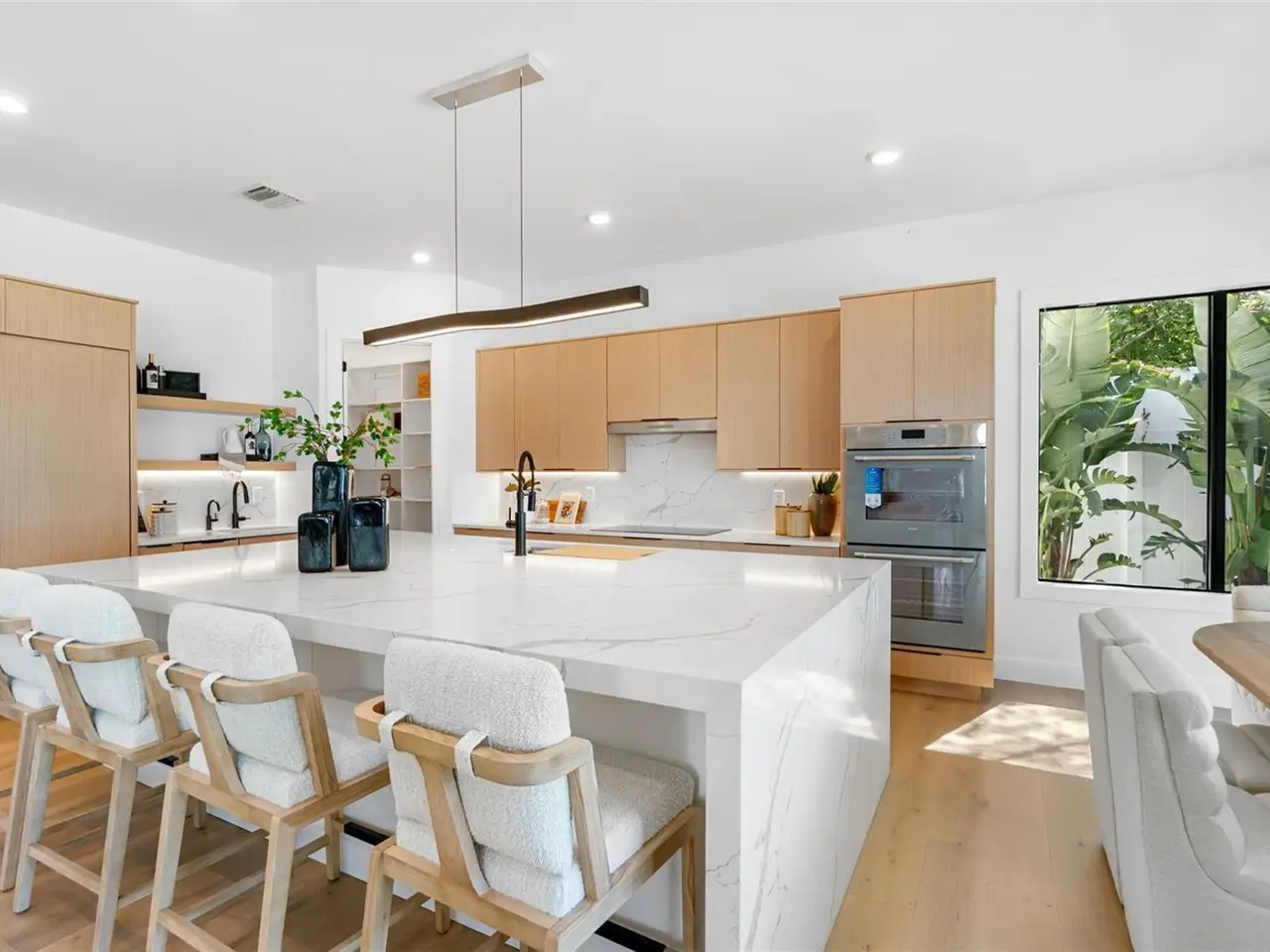 Modern refinement blends seamlessly with elegance and comfort in this stunning, new construction masterpiece from TDI Coastal Homes. An ideal location, this home is situated 10 minutes from the world famous Crescent beach on Siesta Key and just minutes to downtown Sarasota. Peace of mind is assured as this property is not in a flood zone and is perched a safe 21 feet above sea level. With a front facade that boasts clean lines and a captivating mix of wood, stone and a unique commercial style glass garage door, your curb appeal will be undeniable as you welcome family and friends into your sophisticated sanctuary. Cutting edge material and design does not sacrifice quality and durability as the engineered hardwood floors throughout the first floor create the perfect foundation for the exquisite open concept design. A chef's kitchen, featuring Thermador appliances, quartz countertops, an oversized island, intriguing fixtures and a walk-in pantry, lies at the heart of the home and is undoubtedly where your guests will gather to enjoy your inspired culinary creations. Find respite in your primary suite that will envelope you in luxury as you rest and recharge from your days filled with Suncoast adventures. The first floor also offers a home office, mud room, laundry space and multiple sets of sliders to the outdoor oasis consisting of a spacious lanai with a fully appointed outdoor kitchen and multiple seating areas. The refreshing pool will keep you comfortable on sunny afternoons while the warm spa will soothe as the day fades into night. The second floor grants room for guests or additional personal space with three generous bedrooms; one bedroom with a private bath and two that share an adjoining bath. Additional features to include a mosquito misting system for added comfort, a two car garage, and a reverse osmosis system for clean, filtered ice and water. With an incredible location in a vibrant community and top notch schools just around the corner, this home offers the best of Sarasota, brimming with culture, recreation, convenience and the quintessential Florida lifestyle. TDI Coastal Homes creates homes to meet your lifestyle through innovative design and meticulous attention to creating a space that feels extravagant yet effortless.