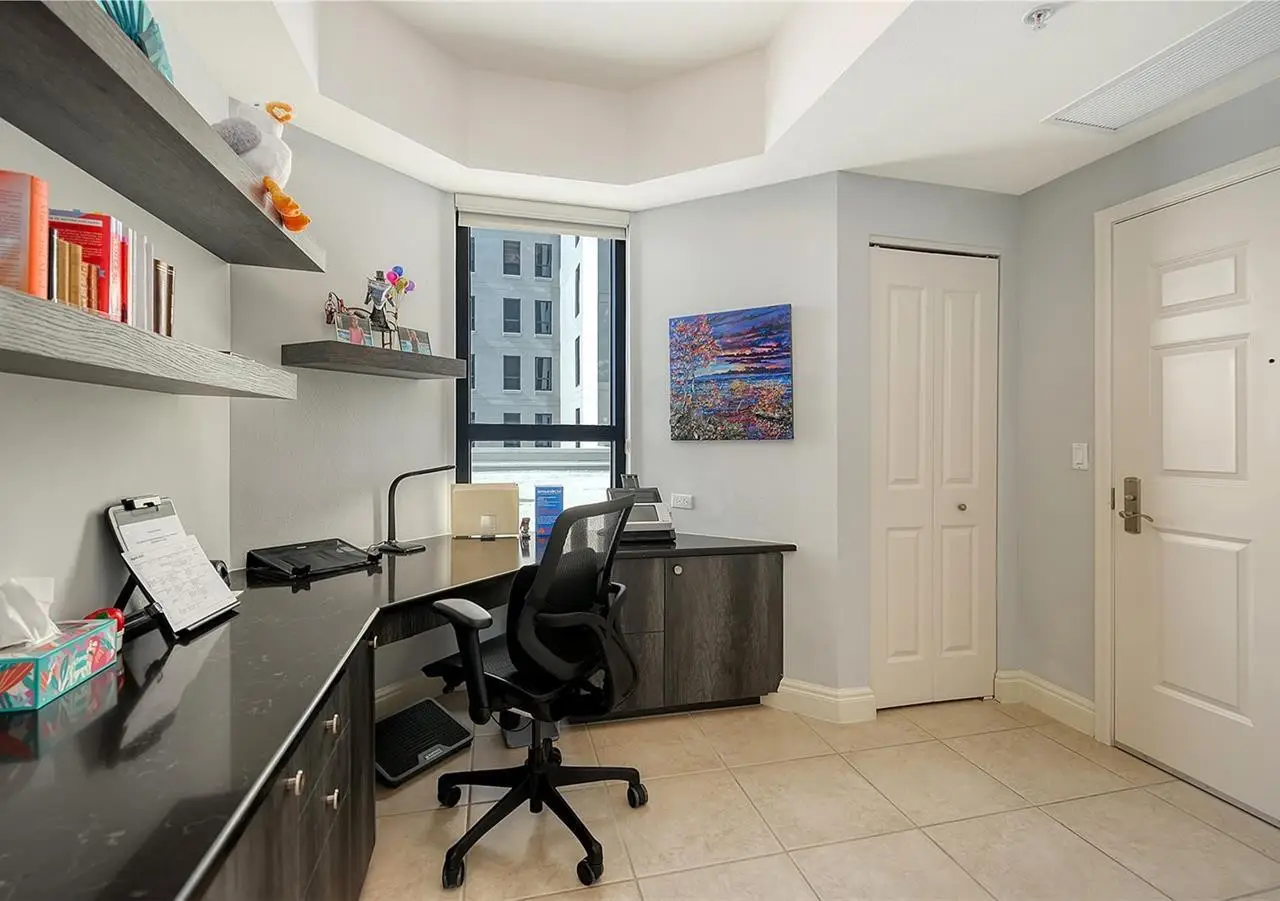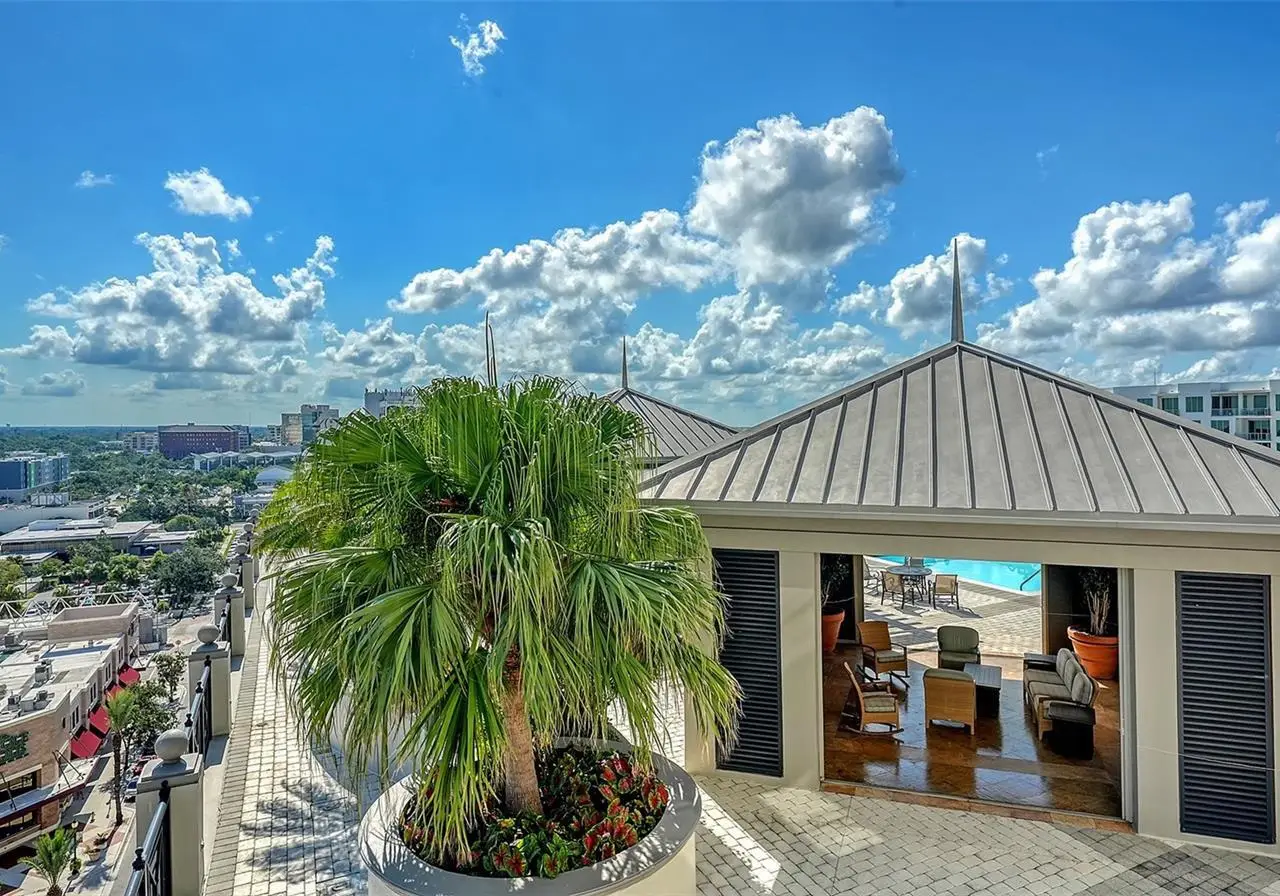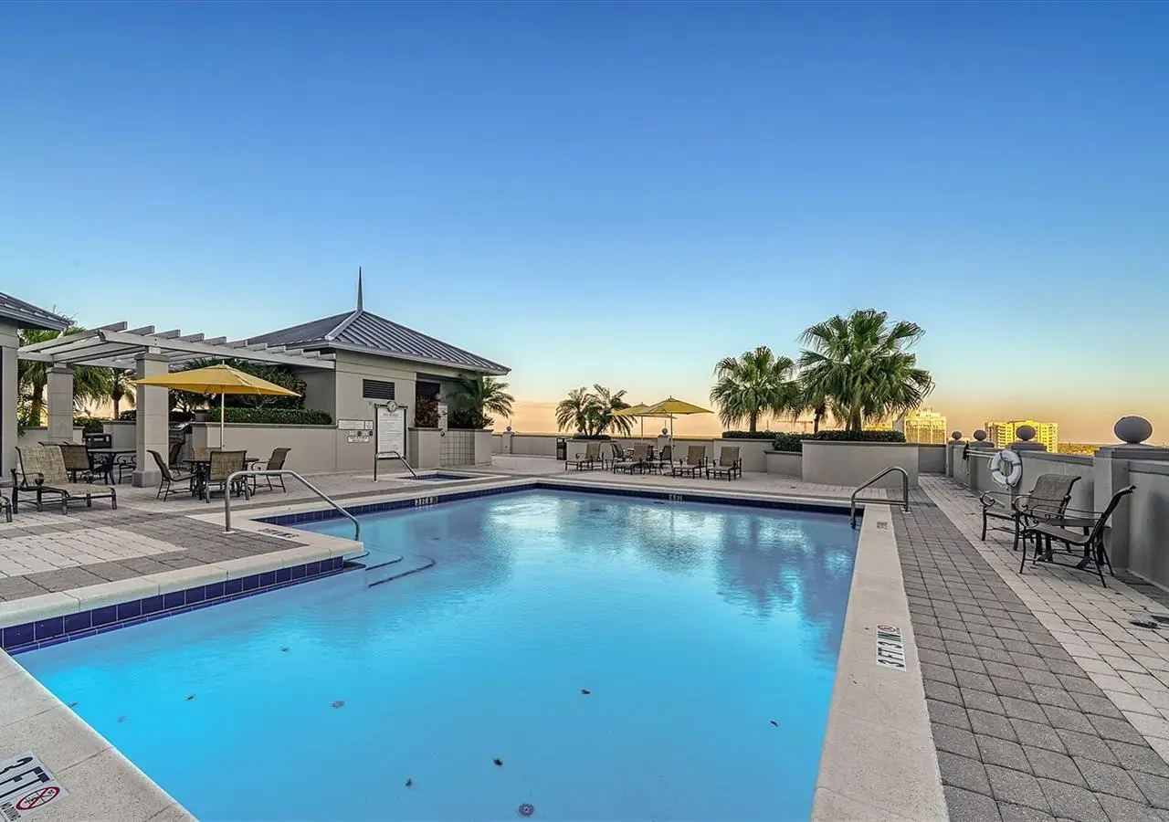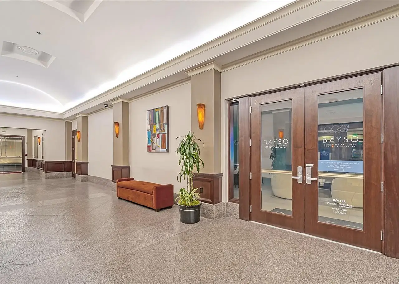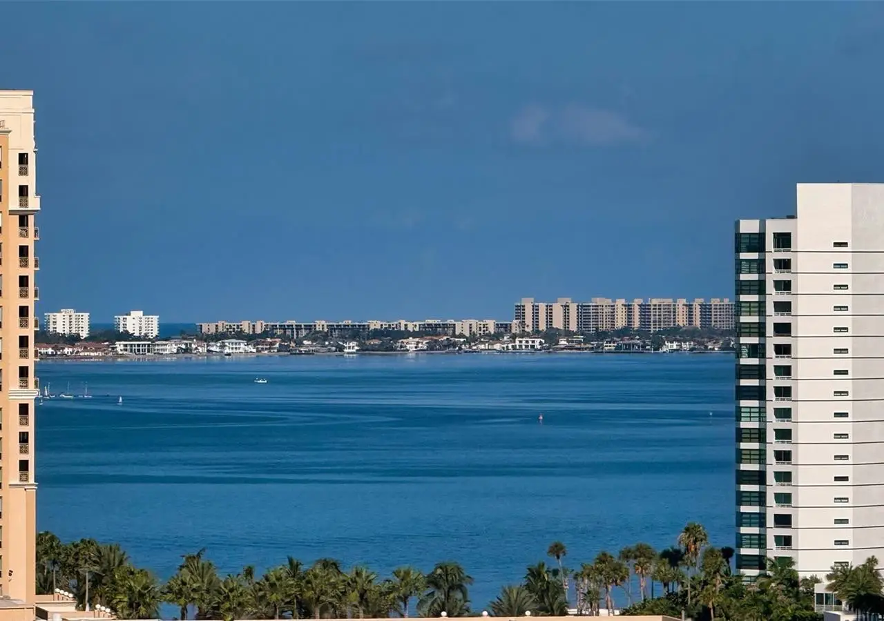 Lavish boutique living in the heart of Downtown Sarasota awaits at the Plaza at Five Points. This tastefully updated, turnkey 2-bedroom, 2-bath condo residence, offers city living with refined style and comfort. A spacious entry foyer with a dedicated office nook provides a practical and welcoming first impression ideal for year-round living or an stress-free seasonal retreat. The kitchen features sleek quartz countertops and newer, high-quality appliances. The primary en-suite bedroom showcases beautiful city views, a California-style walk-in closet, and access to the private lanai. The guest bedroom is generously sized and offers equally charming downtown vistas. The lanai is accessible from both the living room and the primary bedroom, providing a seamless indoor-outdoor flow. Additional features include two deeded garage parking spaces conveniently located near the lobby, and a private storage room. Building security includes controlled access at all entry points and elevators, ensuring peace of mind. Enjoy an elevated lifestyle with luxurious amenities including front desk concierge service, front desk steward, valet parking, rooftop heated pool and spa, outdoor grilling area, cabana with gazebo, a well-equipped fitness center, community room with catering kitchen and fireplace, conference room, and a guest suite available for weekly reservations. Step out of your lobby into Sarasota's vibrant arts and entertainment district. Just a short stroll to the Sarasota Opera House, theaters, live music venues, art galleries, eclectic shopping, and top-rated dining. Whole Foods is around the corner for added convenience. The Bayfront and Marina Jack are just minutes away, offering a variety of boating and waterfront activities. Easy access St. Armands Circle, Lido Beach, Longboat Key, and world-renowned Siesta Key Beach. The Sarasota-Bradenton International Airport, Selby Botanical Gardens, Van Wezel Performing Arts Center, and the Asolo Repertory Theatre are all within a short drive. The building performs like a champ during hurricanes and storms. Residences with this floor plan in 'The Plaza at Five Points' are rarely available schedule your private or virtual showing today. Vacant and easy to show.