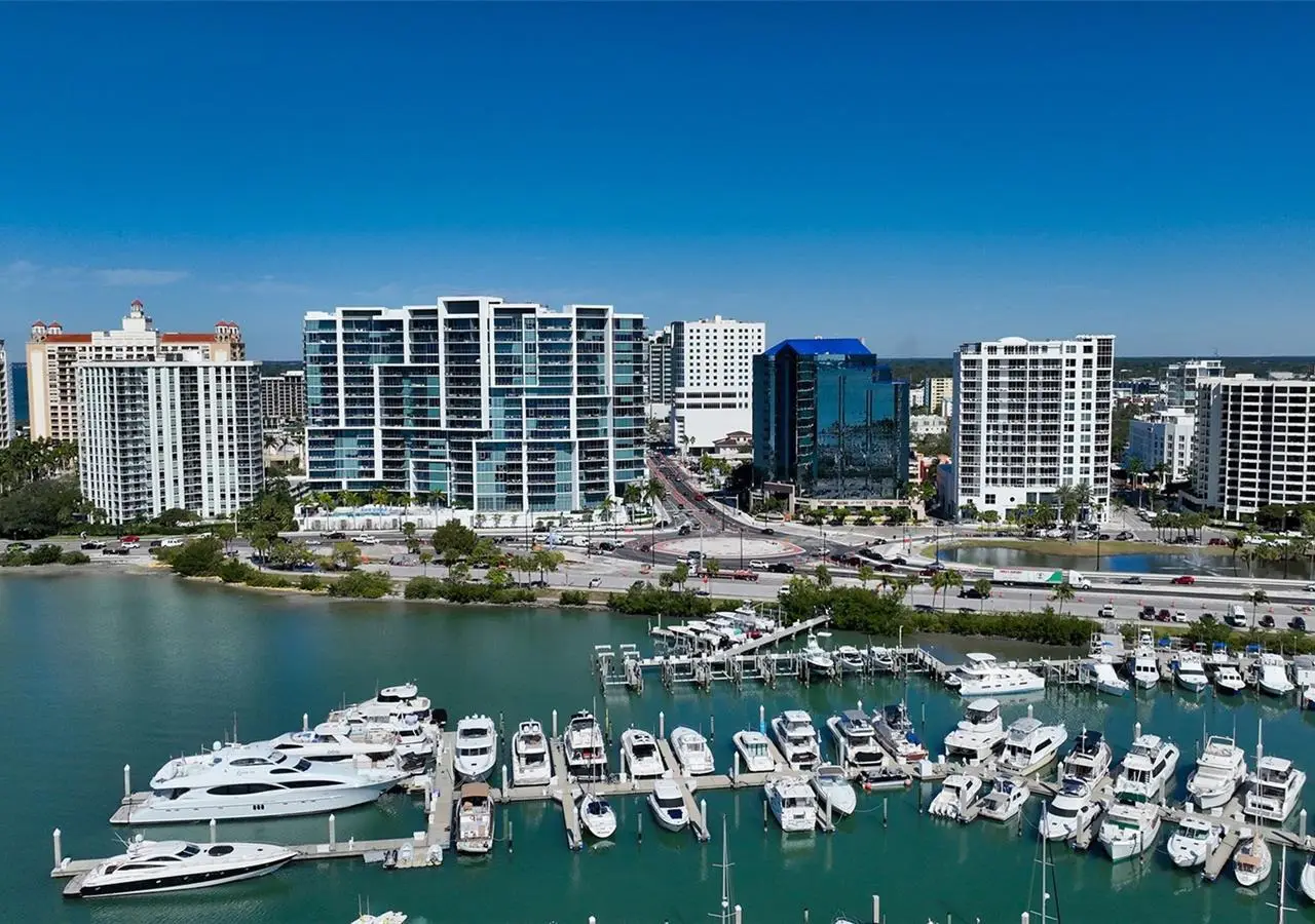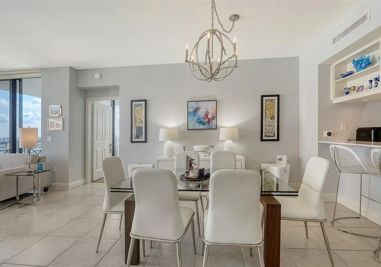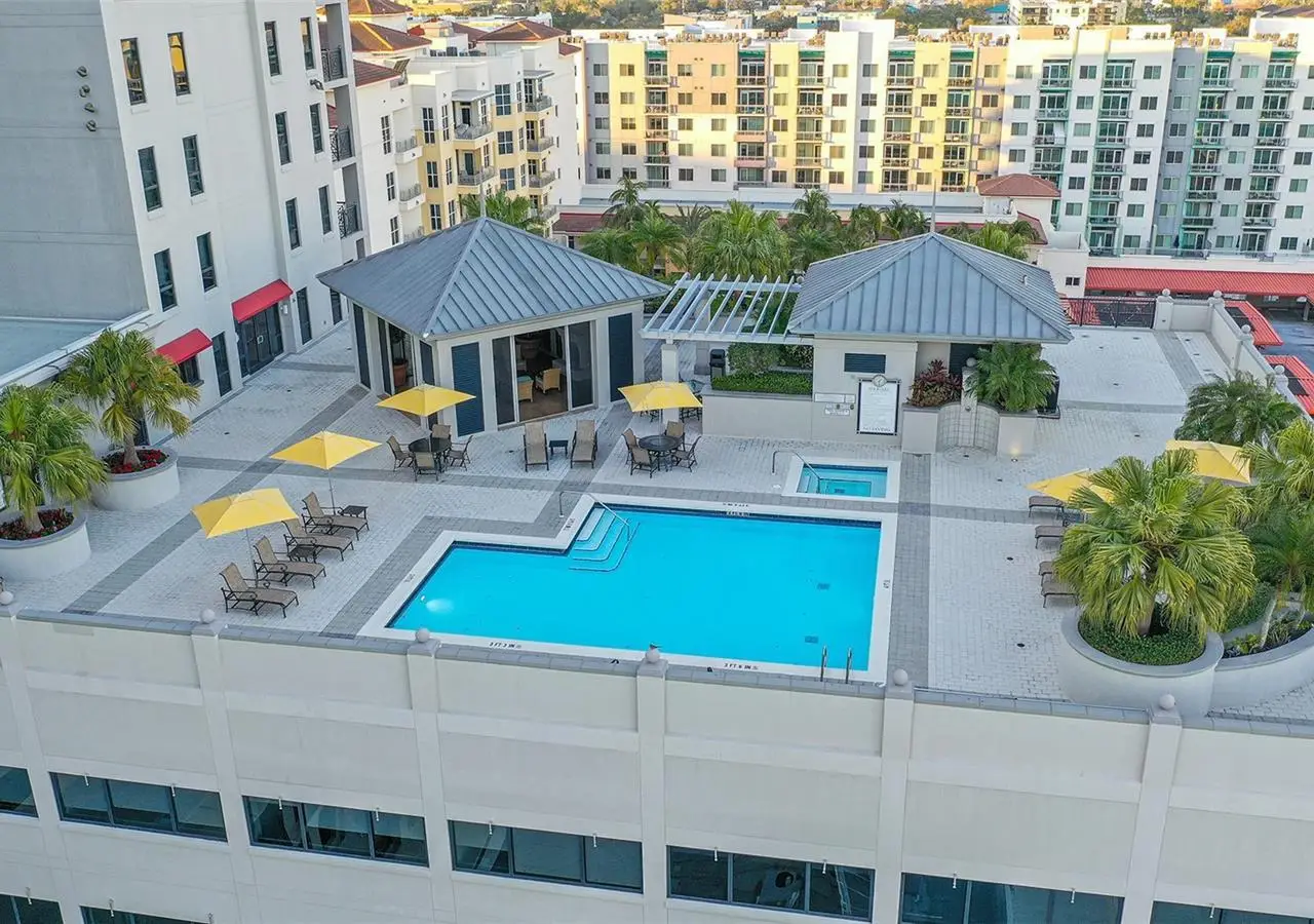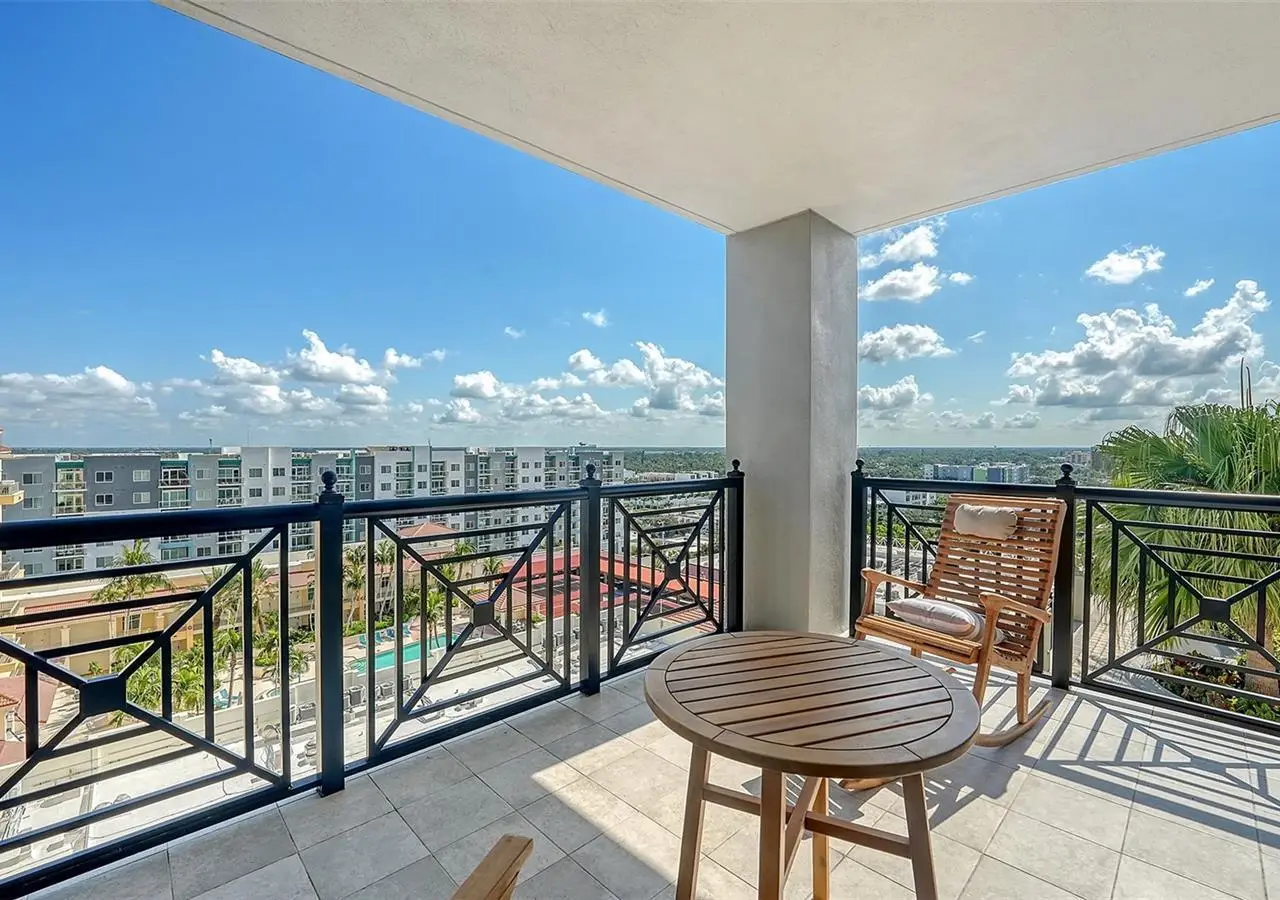 Lavish boutique living in the heart of Downtown Sarasota awaits at the Plaza at Five Points. This tastefully updated, turnkey 2-bedroom, 2-bath condo residence, offers city living with refined style and comfort. A spacious entry foyer with a dedicated office nook provides a practical and welcoming first impression ideal for year-round living or an stress-free seasonal retreat. The kitchen features sleek quartz countertops and newer, high-quality appliances. The primary en-suite bedroom showcases beautiful city views, a California-style walk-in closet, and access to the private lanai. The guest bedroom is generously sized and offers equally charming downtown vistas. The lanai is accessible from both the living room and the primary bedroom, providing a seamless indoor-outdoor flow. Additional features include two deeded garage parking spaces conveniently located near the lobby, and a private storage room. Building security includes controlled access at all entry points and elevators, ensuring peace of mind. Enjoy an elevated lifestyle with luxurious amenities including front desk concierge service, front desk steward, valet parking, rooftop heated pool and spa, outdoor grilling area, cabana with gazebo, a well-equipped fitness center, community room with catering kitchen and fireplace, conference room, and a guest suite available for weekly reservations. Step out of your lobby into Sarasota's vibrant arts and entertainment district. Just a short stroll to the Sarasota Opera House, theaters, live music venues, art galleries, eclectic shopping, and top-rated dining. Whole Foods is around the corner for added convenience. The Bayfront and Marina Jack are just minutes away, offering a variety of boating and waterfront activities. Easy access St. Armands Circle, Lido Beach, Longboat Key, and world-renowned Siesta Key Beach. The Sarasota-Bradenton International Airport, Selby Botanical Gardens, Van Wezel Performing Arts Center, and the Asolo Repertory Theatre are all within a short drive. The building performs like a champ during hurricanes and storms. Residences with this floor plan in 'The Plaza at Five Points' are rarely available schedule your private or virtual showing today. Vacant and easy to show.