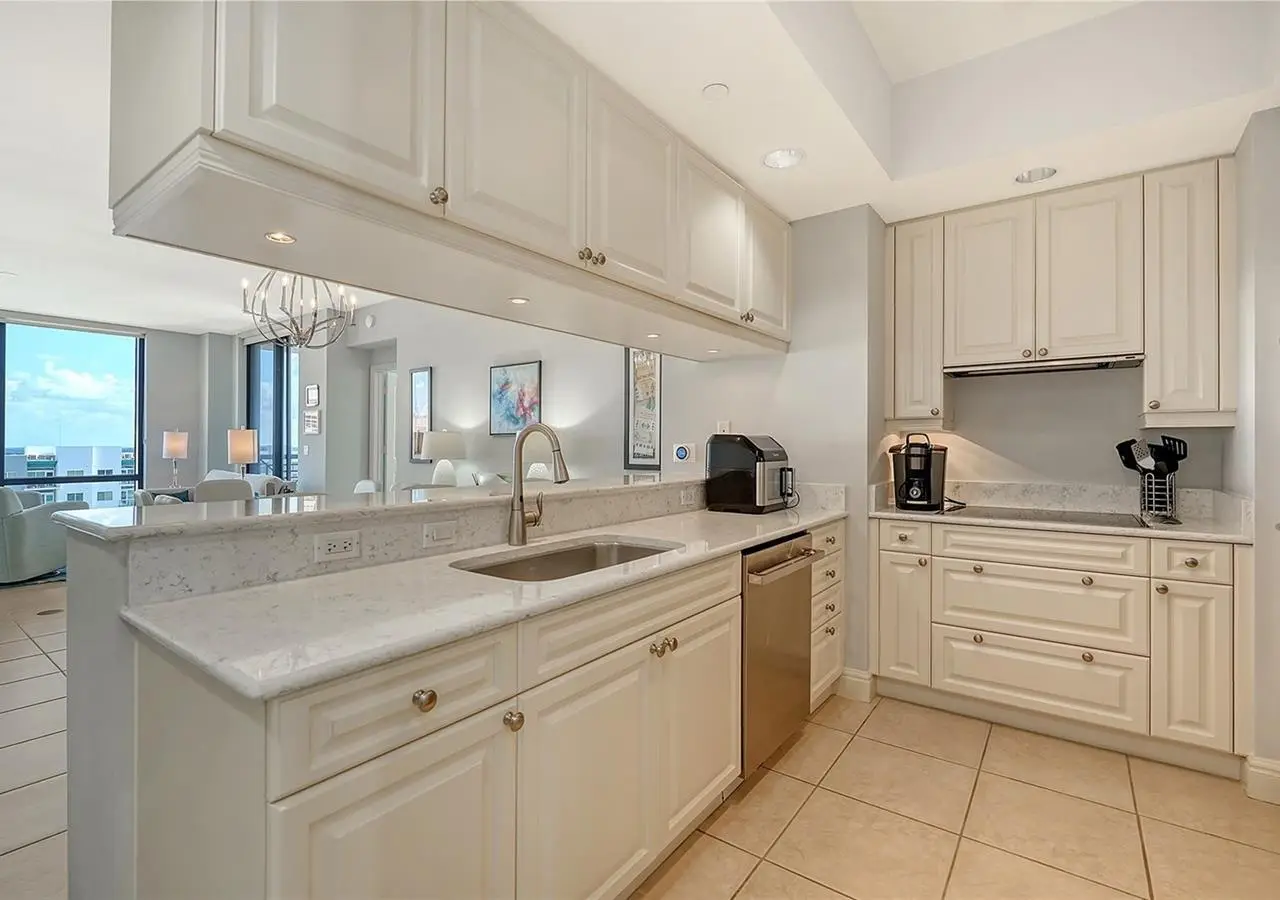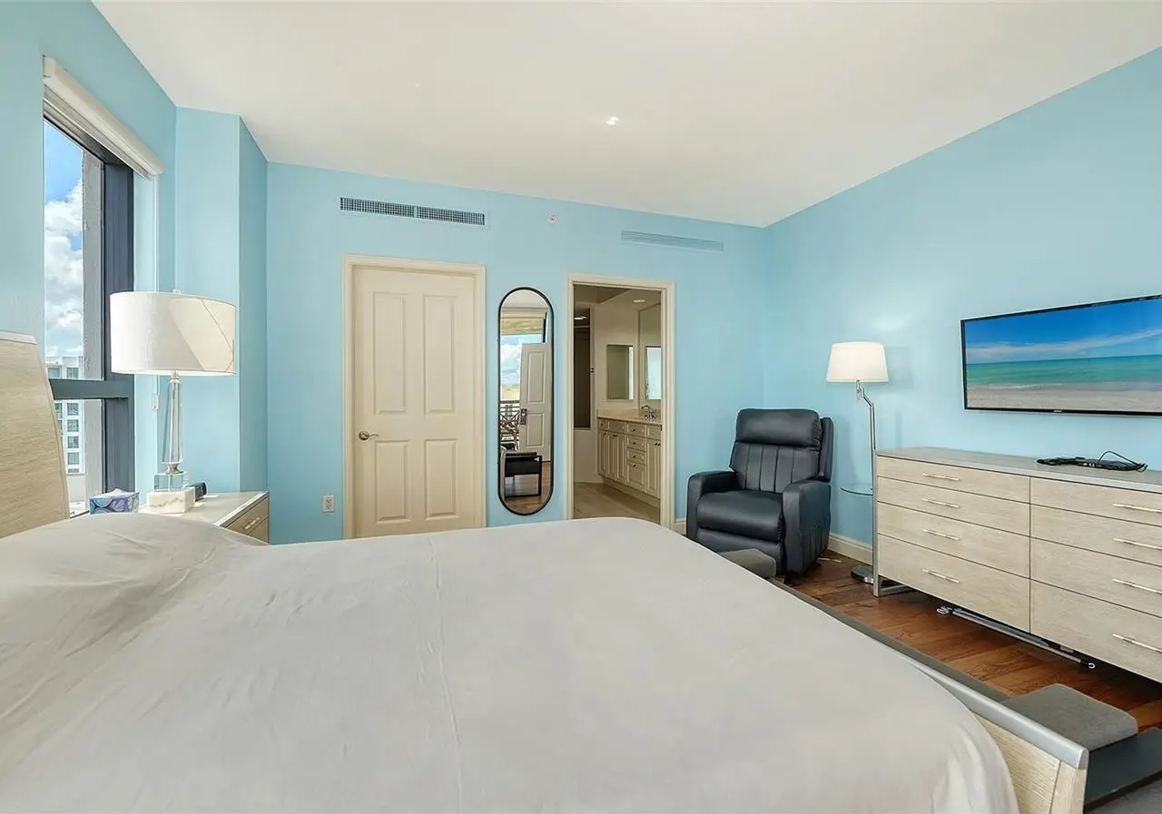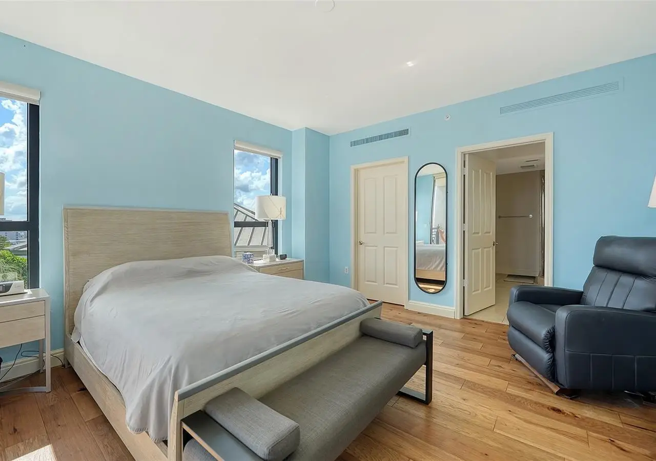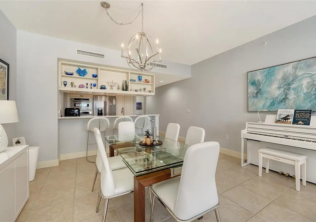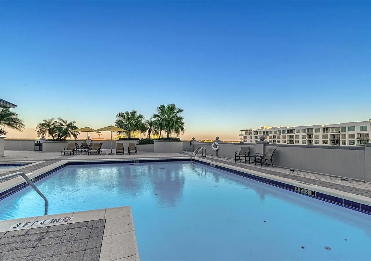 Lavish boutique living in the heart of Downtown Sarasota awaits at the Plaza at Five Points. This tastefully updated, turnkey 2-bedroom, 2-bath condo residence, offers city living with refined style and comfort. A spacious entry foyer with a dedicated office nook provides a practical and welcoming first impression ideal for year-round living or an stress-free seasonal retreat. The kitchen features sleek quartz countertops and newer, high-quality appliances. The primary en-suite bedroom showcases beautiful city views, a California-style walk-in closet, and access to the private lanai. The guest bedroom is generously sized and offers equally charming downtown vistas. The lanai is accessible from both the living room and the primary bedroom, providing a seamless indoor-outdoor flow. Additional features include two deeded garage parking spaces conveniently located near the lobby, and a private storage room. Building security includes controlled access at all entry points and elevators, ensuring peace of mind. Enjoy an elevated lifestyle with luxurious amenities including front desk concierge service, front desk steward, valet parking, rooftop heated pool and spa, outdoor grilling area, cabana with gazebo, a well-equipped fitness center, community room with catering kitchen and fireplace, conference room, and a guest suite available for weekly reservations. Step out of your lobby into Sarasota's vibrant arts and entertainment district. Just a short stroll to the Sarasota Opera House, theaters, live music venues, art galleries, eclectic shopping, and top-rated dining. Whole Foods is around the corner for added convenience. The Bayfront and Marina Jack are just minutes away, offering a variety of boating and waterfront activities. Easy access St. Armands Circle, Lido Beach, Longboat Key, and world-renowned Siesta Key Beach. The Sarasota-Bradenton International Airport, Selby Botanical Gardens, Van Wezel Performing Arts Center, and the Asolo Repertory Theatre are all within a short drive. The building performs like a champ during hurricanes and storms. Residences with this floor plan in 'The Plaza at Five Points' are rarely available schedule your private or virtual showing today. Vacant and easy to show.