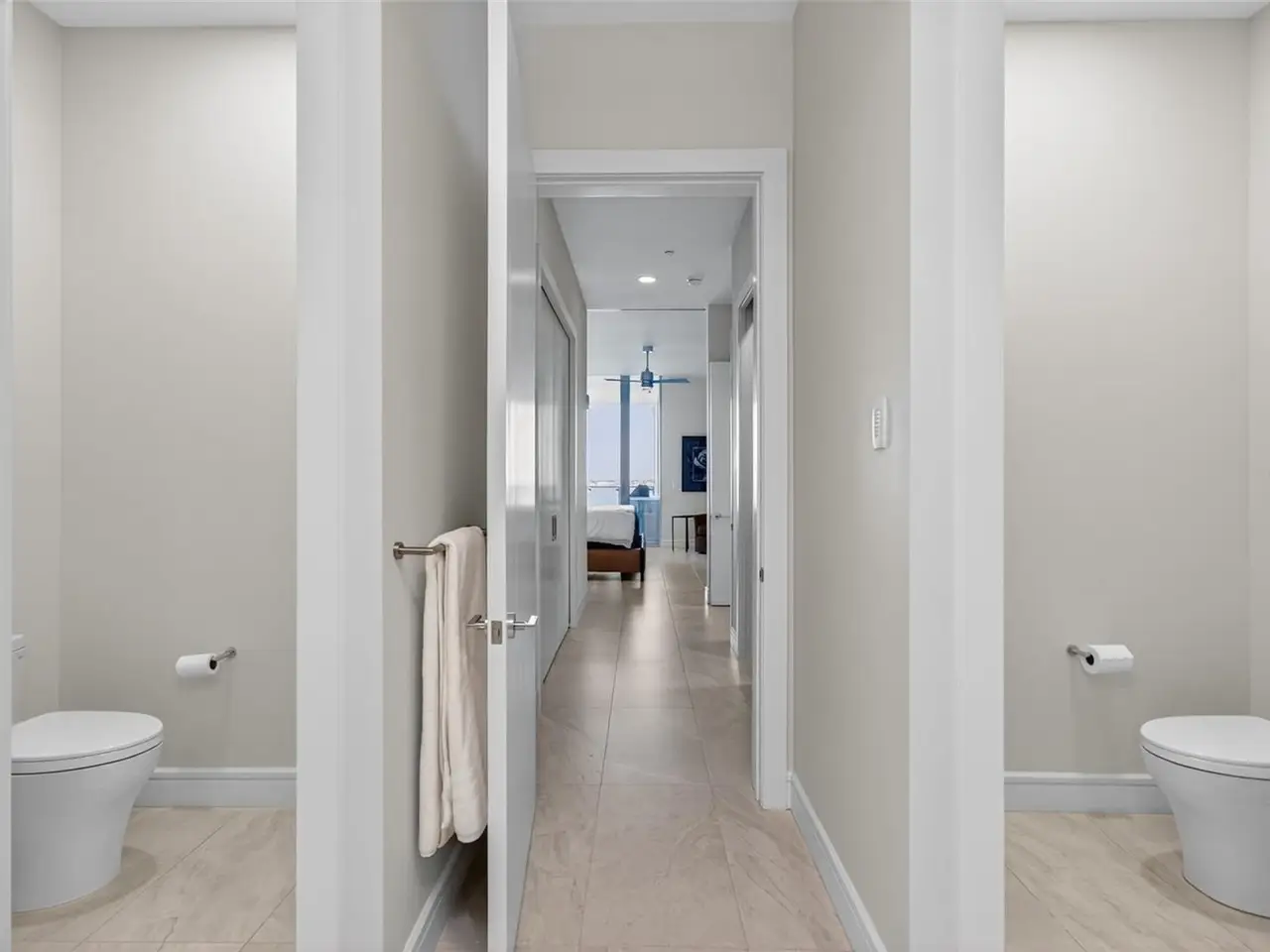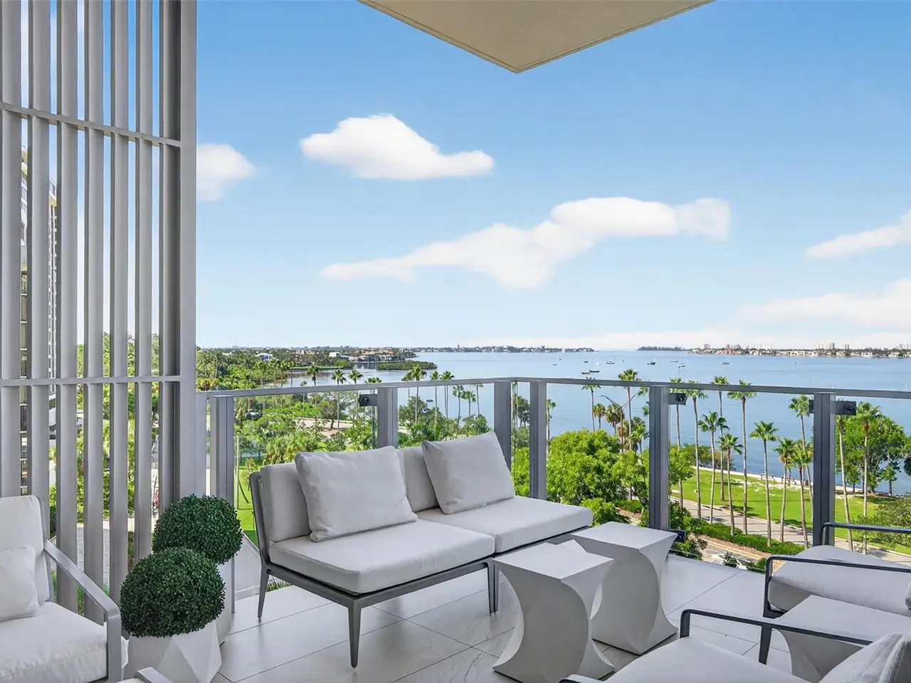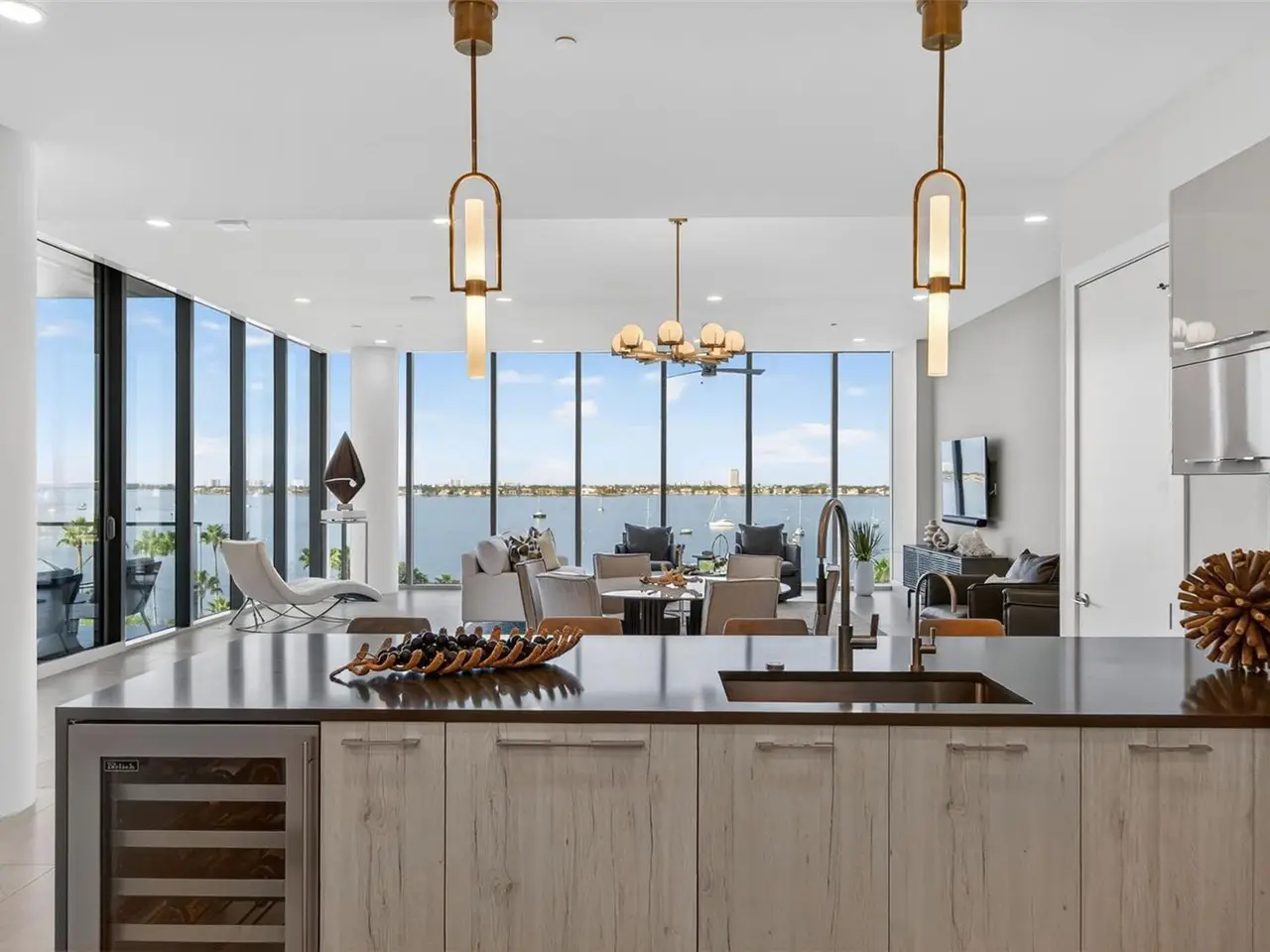 If you’re looking for a downtown condominium with unparalleled views of the Bay and City lights, framed by the drama of a panoramic southwest corner, look no further than this exceptional EPOCH residence in Sarasota’s most desirable walkable neighborhood. Arrive via your private elevator foyer and be greeted by walls of glass showcasing sweeping vistas from Marina Jack to Big Pass and the Gulf beyond. Spanning 3,600 air-conditioned square feet, this coastal contemporary home blends sophisticated style, smart technology, and exceptional comfort. Soaring ceilings and an open floor plan enhance the grand scale of the great room, dining area, and expansive terraces, creating seamless spaces for both intimate living and large-scale entertaining. The gourmet kitchen is a true centerpiece, with a large island, bespoke Cucine Ricci Italian cabinetry, quartz countertops, and ultra-premium Gaggenau appliances including a six-burner gas range, double ovens, side-by-side refrigerator/freezer, and wine refrigerator. Access to the terrace with a summer kitchen makes indoor-outdoor living effortless. The owner’s retreat is an unrivaled sanctuary with direct bayfront terrace access, generous custom walk-in closets, and a spa-inspired bath featuring a curbless walk-in shower, sculptural soaking tub, double vanities, and two private water closets. The guest wing includes two en-suite bedrooms and a private den/TV lounge, providing comfort and privacy for family and visitors. Every finish speaks to refined living, from large-format porcelain flooring to Lutron automated shades, smart lighting controls, multi-zone air conditioning, and an oversized laundry room. A private storage space and two secure deeded parking spaces further elevate convenience. At EPOCH, residents enjoy world-class amenities: a 70-foot recreation and lap pool with spa, fire tables, pool bar and grill; a dramatic rooftop terrace; a Residents’ Club; state-of-the-art fitness center; massage suite; steam showers; and a private guest suite for visitors. Meticulously conceived to honor the Sarasota School of Architecture, EPOCH offers just 23 exclusive residences where contemporary elegance and unmatched quality converge. Nestled on the shoreline of Sarasota Bay and steps from downtown’s cosmopolitan core, this is the pinnacle of Gulf Coast living.