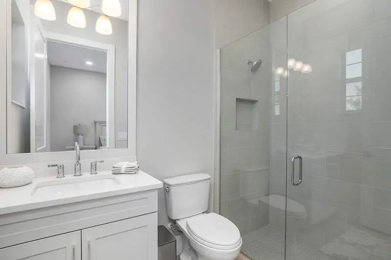 Ceramic tile flooring and quartz countertops