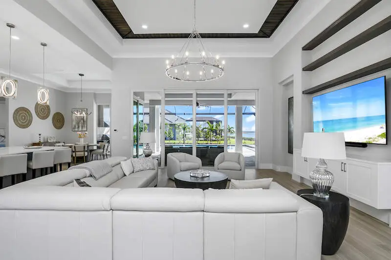 Open concept living/dining with panoramic lake views