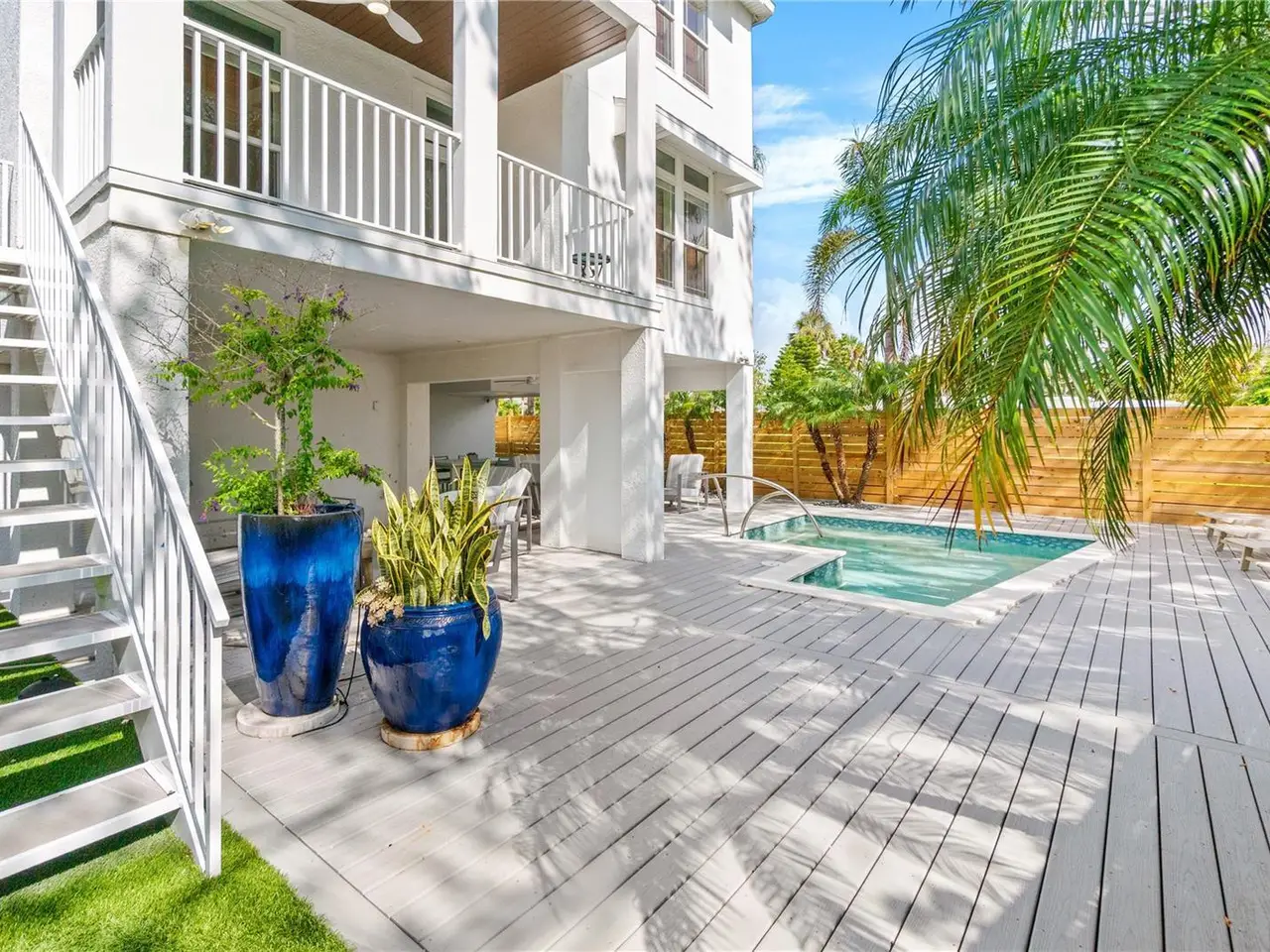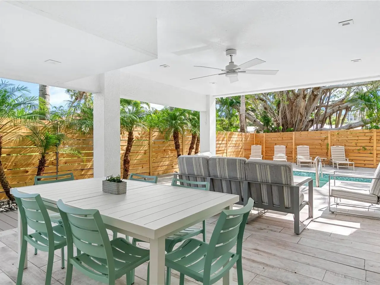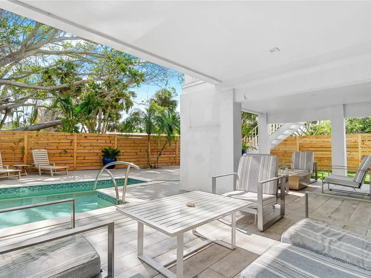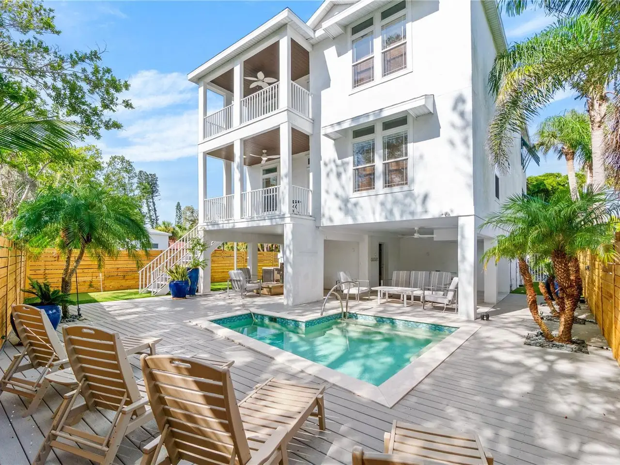 This newer construction home is perfect for year-round living or as a beach retreat. Additionally, it has made nearly $100,000.00 in rental income. Its design and amenities are exceptional as is it’s versatility! The elevator extends from the street level 3+ car garages to the main living floor and the upper floor. You are greeted on the main floor with a large living room opening to a main dining room. The dining room extends to the large chef’s kitchen and its breakfast bar which easily seats 6 for casual dining. This floor also contains one of the 2 primary suites toward the rear of the home with views of the backyard pool area. The main level also has a large ½ bath and an additional family/entertainment room. The primary suite is furnished with a king-size bed, a primary bath with dual vanities, water closet and extra-large shower. Closet space was not spared and there is abundant storage as well. The kitchen has a large walk-in pantry, upgraded appliances, soft close drawers and doors and plenty of storage. The upper, 3rd level, has a large family room, a breakfast bar, mini fridge, microwave and plenty of counterspace and storage for long lazy nights in front of the tv or with a good book. The laundry area is on this floor along with another primary suite, primary bath with a beautiful soaking tub, separate shower, water closet and walk-in closet as well as 2 additional large guest bedrooms and a full bath. All this is wrapped with beautiful outdoor space, private balconies and porches on all living levels and a covered sitting area beside the sparkling heated pool. If you prefer the beach, Siesta Key beach is a short 3 block walk, and the village is filled with wonderful restaurants, shops and all beach life’s necessities are all close at hand. The Seller’s preference is to sell the home turnkey but if that isn’t your desire, they will accommodate the needs of the buyer.