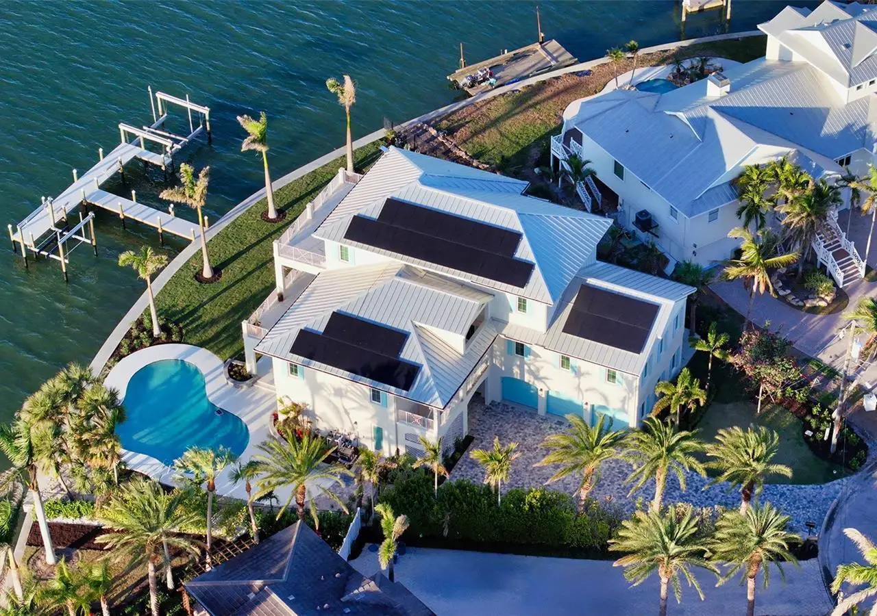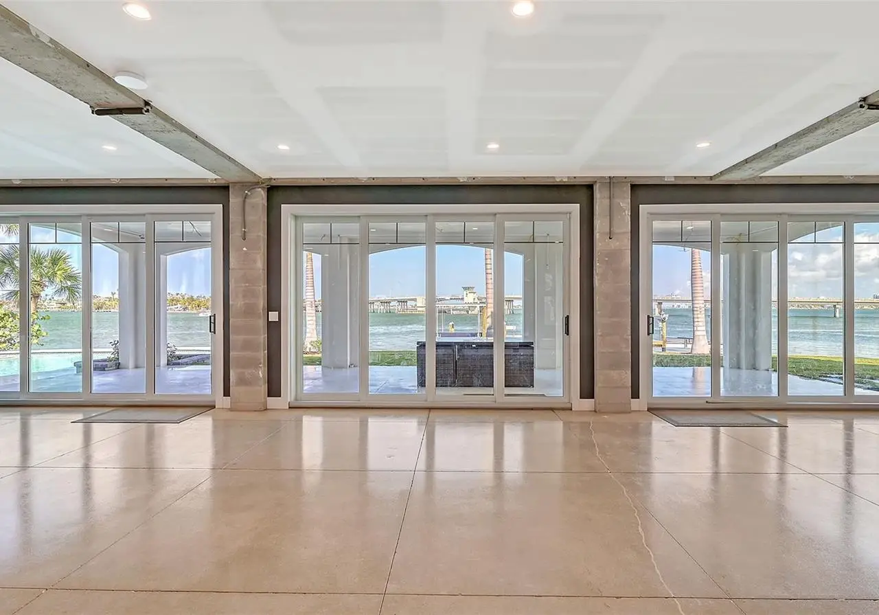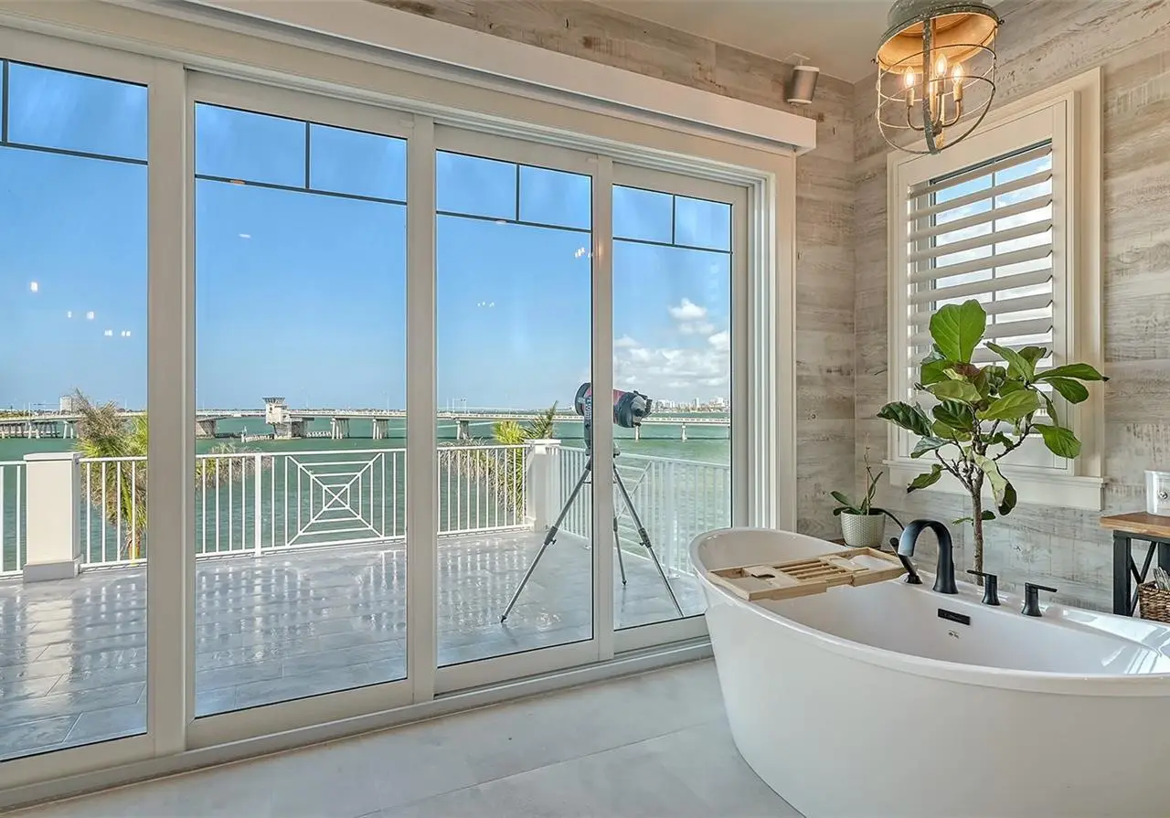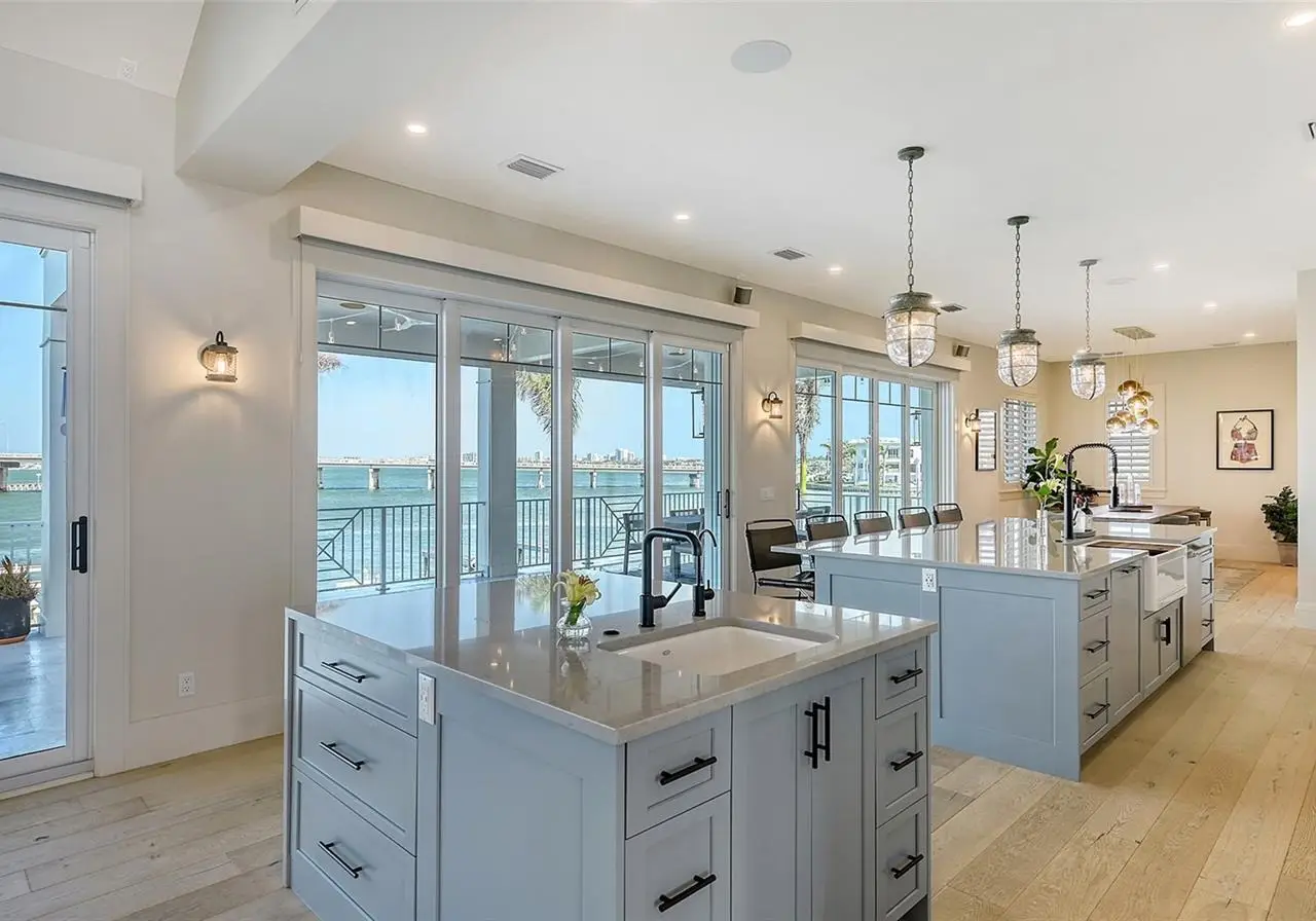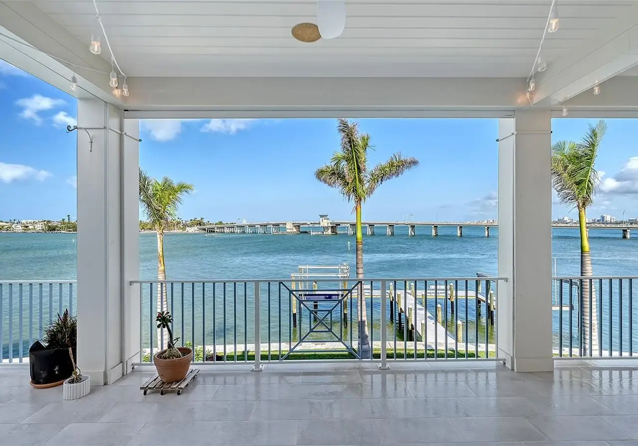 Experience the epitome of waterfront living in the sought-after San Remo neighborhood, ideally positioned at the tip of the peninsula. This exceptional 2022 custom-built residence offers sweeping panoramic views of Sarasota Bay and the city skyline, providing an unparalleled backdrop for everyday living. Boasting 4,359 square feet of thoughtfully designed living space, this home features 4 ensuite bedrooms, powder room, two expansive terraces, and a private study. The moment you step inside, you are greeted by breathtaking bay views through floor-to-ceiling windows and sliding glass doors that flood the space with natural light. The open-concept main level is designed for both comfort and style, with vaulted ceilings, unobstructed views and hardwood floors throughout. The chef's kitchen is a true highlight, complete with a large island offering seating, a hidden pantry, custom cabinetry and designer appliances. The kitchen opens to a large covered terrace, featuring an automated screen system to seamlessly blend indoor and outdoor living. The upper level is dedicated to the owner's suite, offering a spacious bedroom, a spa-like bathroom, a private terrace, and a separate area ideal for a study or lounge. An elevator services all levels. The backyard is designed for ultimate relaxation and entertainment, featuring a large saltwater pool, a new dock with two boat lifts, new seawall and a generous lawn with panoramic water views. Additional features include solar panels with 3 Tesla Powerwalls and an oversized 3-car side-entry garage with epoxy flooring. Located just minutes from downtown Sarasota, Southside Village's shops and restaurants, and the world-renowned Siesta Key beaches, this home is the perfect sanctuary for those seeking newer construction, convenience, and an unmatched lifestyle. Schedule your private showing today.