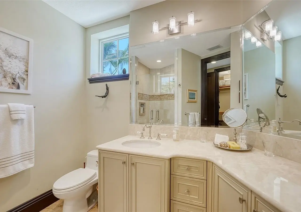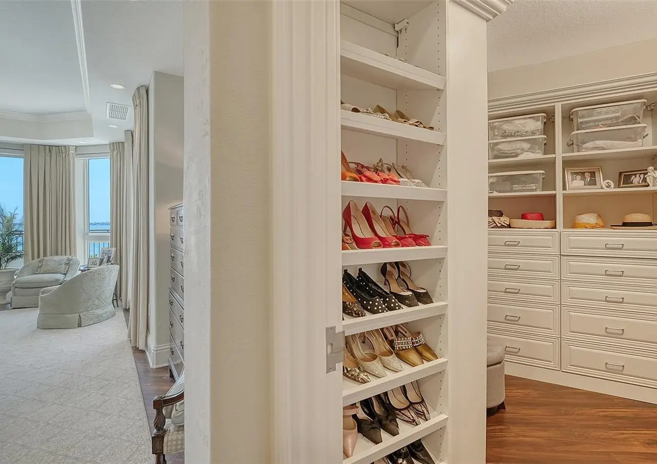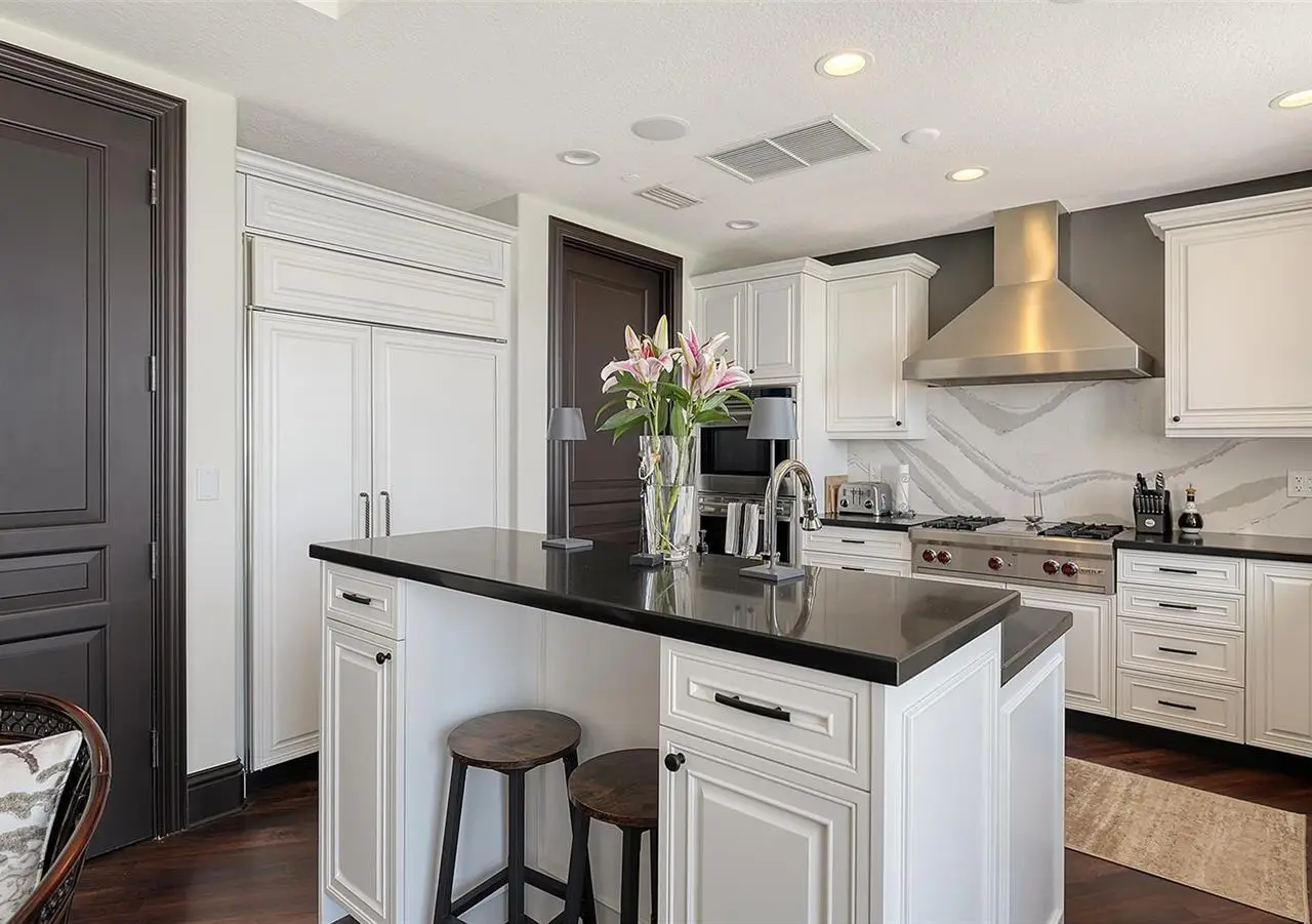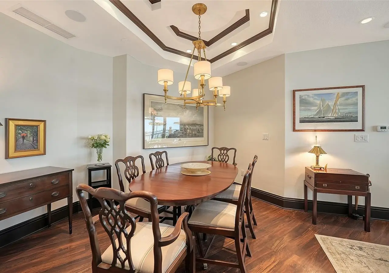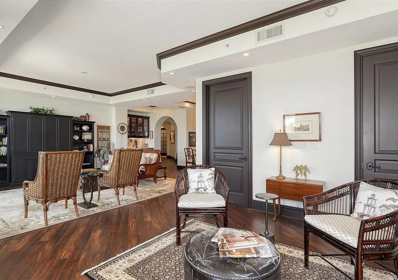 Experience the epitome of elegance and timeless sophistication in this exquisitely appointed residence at the exclusive Grande Riviera, a breathtaking architectural gem nestled in the prestigious Golden Gate Point neighborhood. Meticulously maintained, this classic condominium offers panoramic views of Sarasota Bay and the sparkling downtown skyline, setting a new standard for luxury waterfront living. This residence boasts the largest terrace in Grande Riviera, approximately 2300 square feet, providing the ultimate setting for sunsets and entertaining friends and family. One of only 13 exclusive residences, this home offers an intimate and private lifestyle, with a private elevator entrance leading directly to the elegant foyer. Designed for both comfort and grandeur, the residence features arched walkways, rich crown molding, and expansive living spaces ideal for entertaining or quiet reflection. The heart of the home is a remodeled chef’s kitchen, outfitted with a large center island, solid wood cabinetry adorned with sleek black hardware, a quartz backsplash, granite countertops, and a Sub-Zero refrigerator and freezer, as well as a Wolf gas range and double wall oven. Deluxe Laundry room with custom cabinetry and workspace conveniently located near the kitchen. A wet bar with a Sub-Zero wine fridge seamlessly connects the open living space to the elegant dining and living areas, creating a perfect flow for gatherings. Step outside onto the largest private wraparound terrace in the building, where you’ll enjoy breathtaking, unobstructed views of the bay. This is truly one of the most distinguished outdoor living spaces in the complex. The owners’ suite is a serene retreat, featuring dual walk-in closets with custom built-ins, and a spa-like bathroom with marble floors, a dual quartz vanity, walk-in shower with dual showerheads, and a private water closet. The suite also offers direct access to the terrace, allowing for peaceful mornings with stunning bay views. The guest suite boasts a private terrace entry, en suite bath, and walk-in closet, while a versatile den with double glass doors can serve as an office, sitting room, or additional guest space. Additional features include a private, deeded two-car garage with storage, resort-style pool, rooftop terrace, boat docks, on-site management, and private secured access. This is a rare opportunity to own a distinguished waterfront home in one of Sarasota’s most coveted locations, a residence that masterfully blends classic design, modern comforts, and breathtaking surroundings.