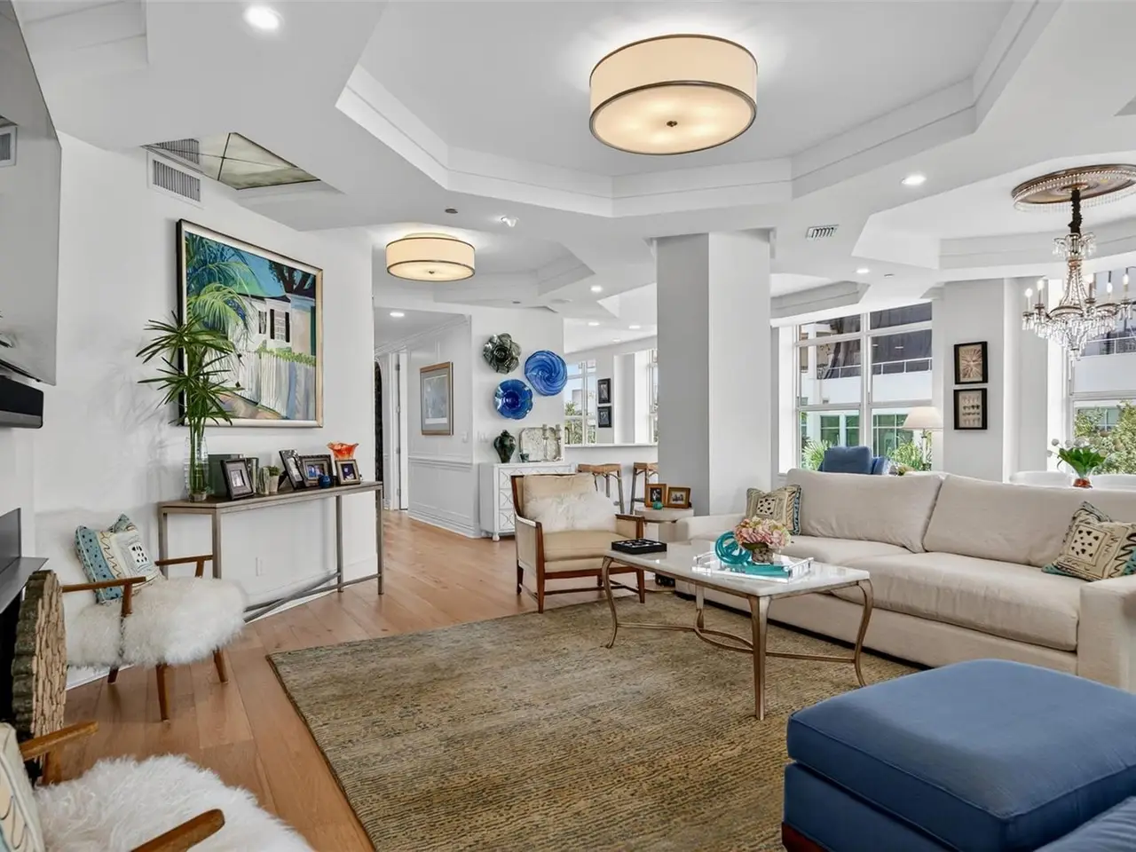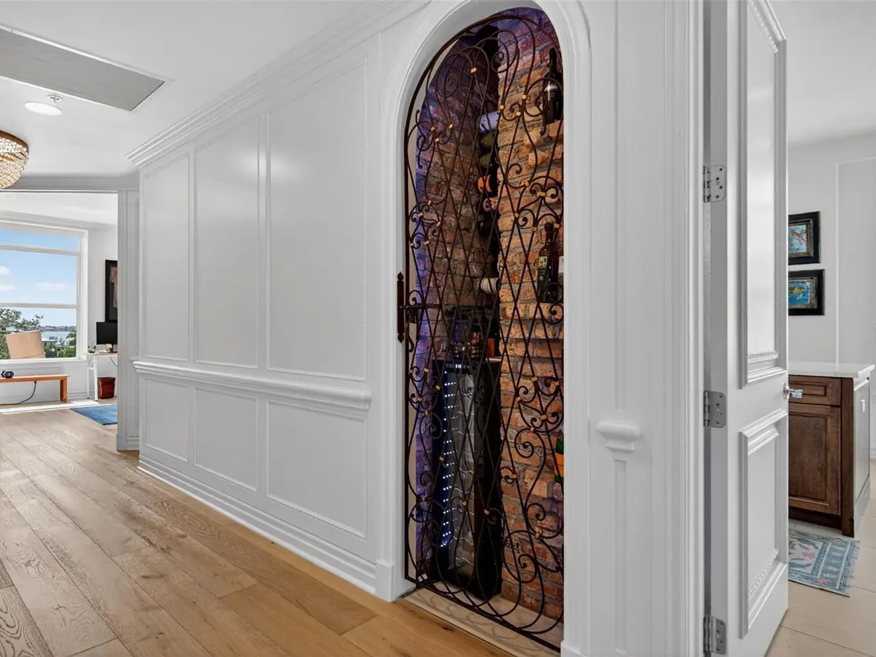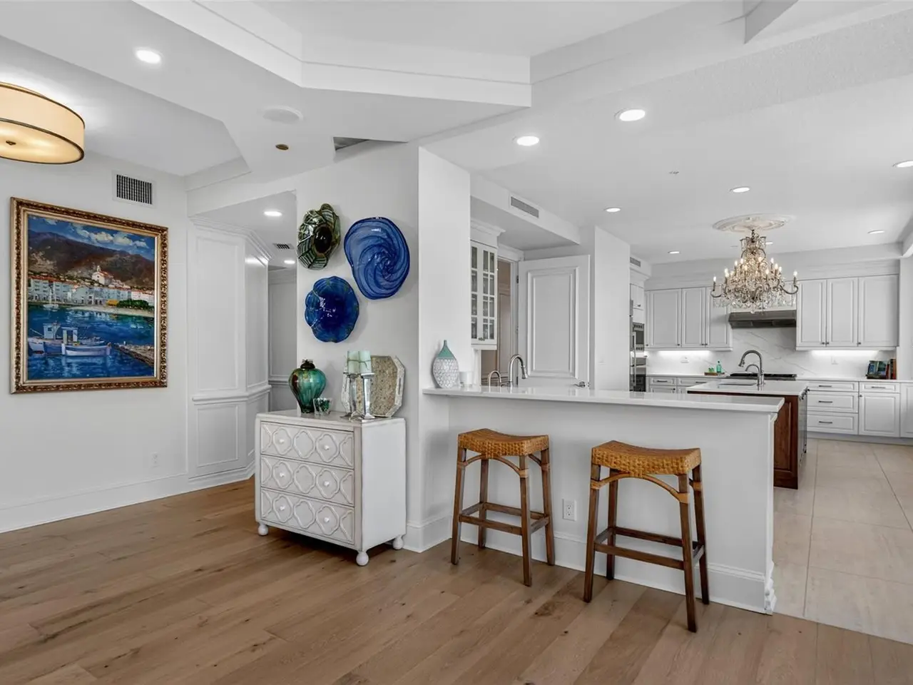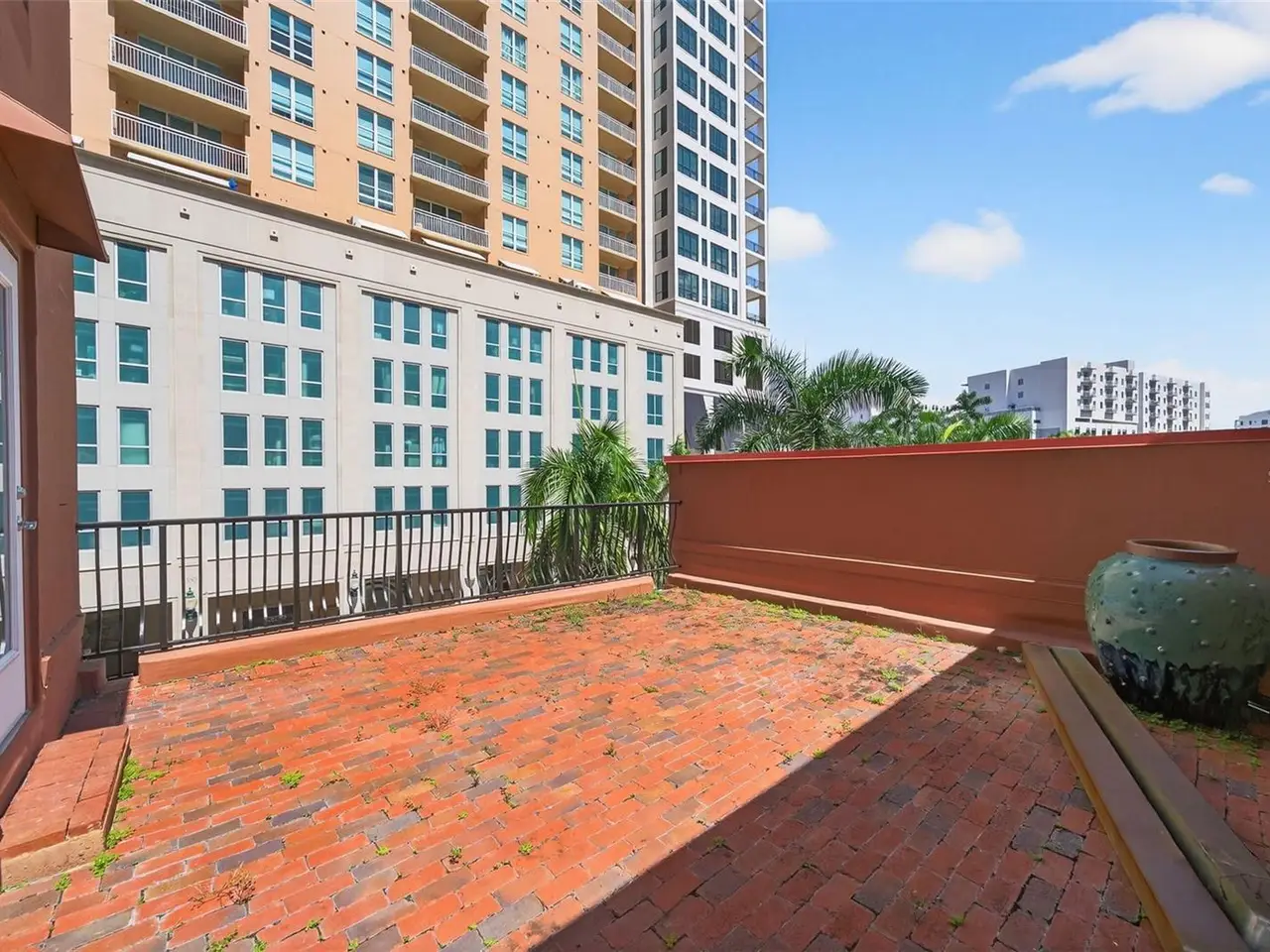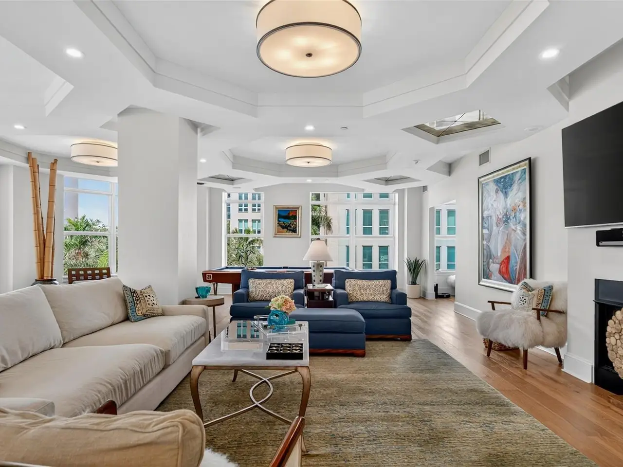 A luxurious piece of Sarasota’s history, combining timeless architecture, generous space, and modern upgrades in the heart of downtown. This rarely available full-floor residence at the iconic Orange Blossom Tower, built in 1926, one of downtown Sarasota’s most prestigious addresses at Main Street and Palm Avenue. Occupying the entire third floor, this 3-bedroom, 3-bath, 3,974-square-foot home offers a vibrant urban lifestyle just steps from fine dining, art galleries, boutiques, Bayfront Park, the marina, and Sarasota’s renowned theater district. From your private elevator, a grand foyer opens to a gallery hallway showcasing an antique brick wine cellar with a custom iron door, leading into expansive living and dining spaces adorned with bespoke millwork, a fireplace, octagonal ceiling detail, and oversized 7’ windows that flood the interiors with natural light. Two private terraces, including an oversized 13’ x 46’ retreat, to extend your living space outdoors for al fresco dining, and relaxation. The professionally enhanced kitchen is a chef’s dream, featuring quartz countertops, a Wolf 6-burner gas range, two Signature dishwashers, built-in refrigerator, beverage refrigerator, and a crystal chandelier over the center island. Condo features a water treatment system with reverse osmosis. Other recent updates include new AC units with infrared (2022 and 2023), new hot water heater (2024), new engineered wood flooring and carpet, a remodeled bath, new electrical outlets, electronic shades throughout, quartz window sills, and LED surface-mount fixtures and dimmers, The spacious owner’s suite offers large windows, 17’7” x 18’ antique-brick terrace overlooking tree-lined Palm Avenue, and an elegantly updated bath with dual vanities, walk-in shower, soaking tub, and custom closet system. Two guest suites are tucked into a private wing, each with a full bath and new custom closets—one opens directly to the expansive terrace—while a versatile large den makes an ideal office, reading room, or potential fourth bedroom with views of Sarasota Bay and stunning sunsets. Residents of Orange Blossom Tower enjoy concierge service, secure lobby entry, two deeded garage spaces, and use of the pool, spa, and fitness center at neighboring 1350 Main, along with additional storage room on the terrace and second floor. Importantly, the building’s Structural Integrity Reserve Study (SIRS) and Financial Reserve Study (FRS) were both completed in 2024, ensuring full compliance with current Florida regulations and giving buyers added peace of mind.