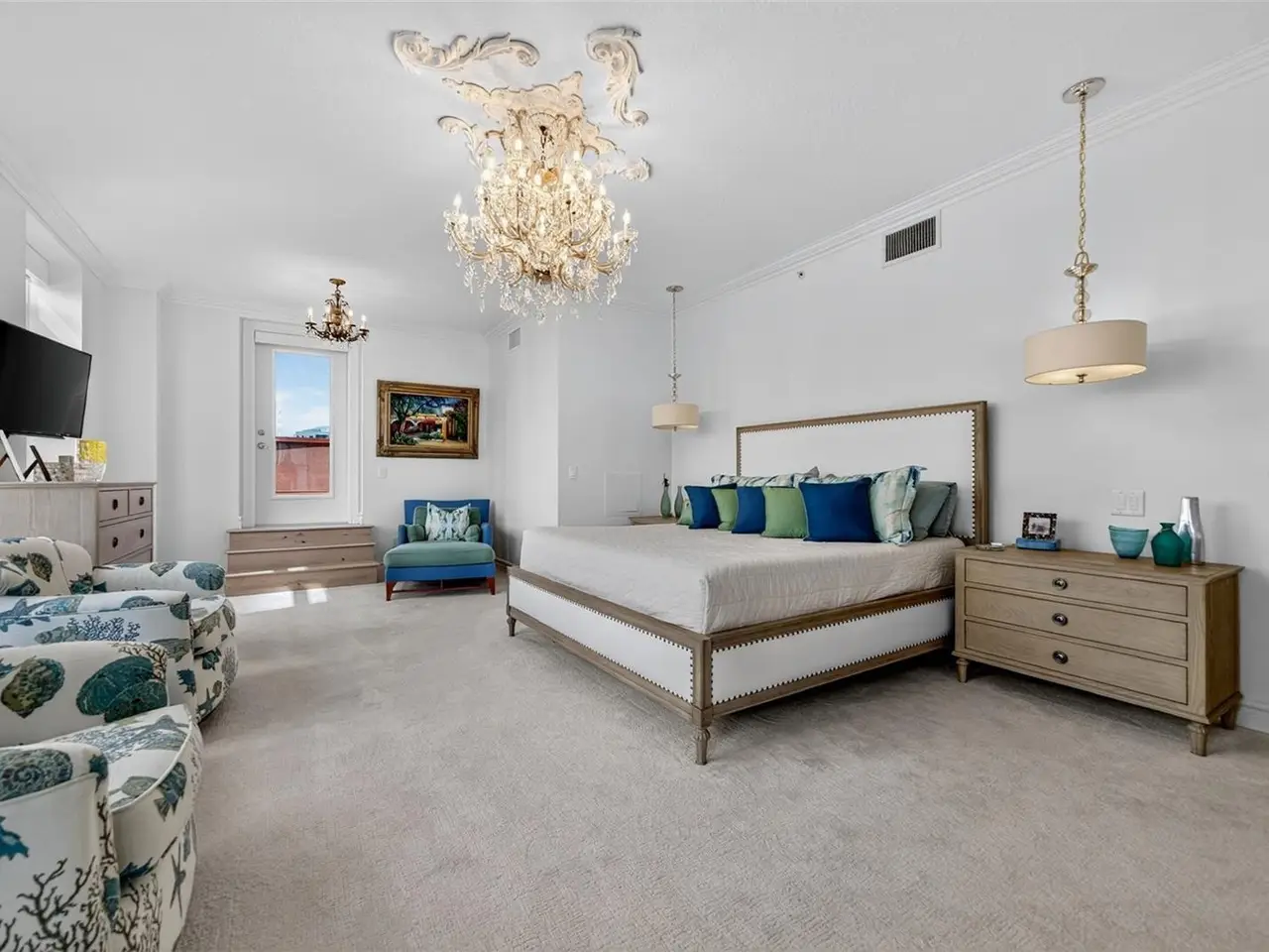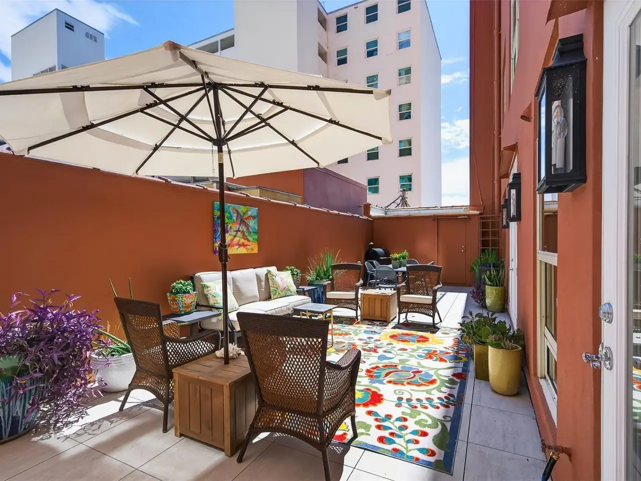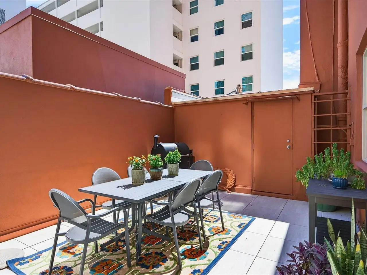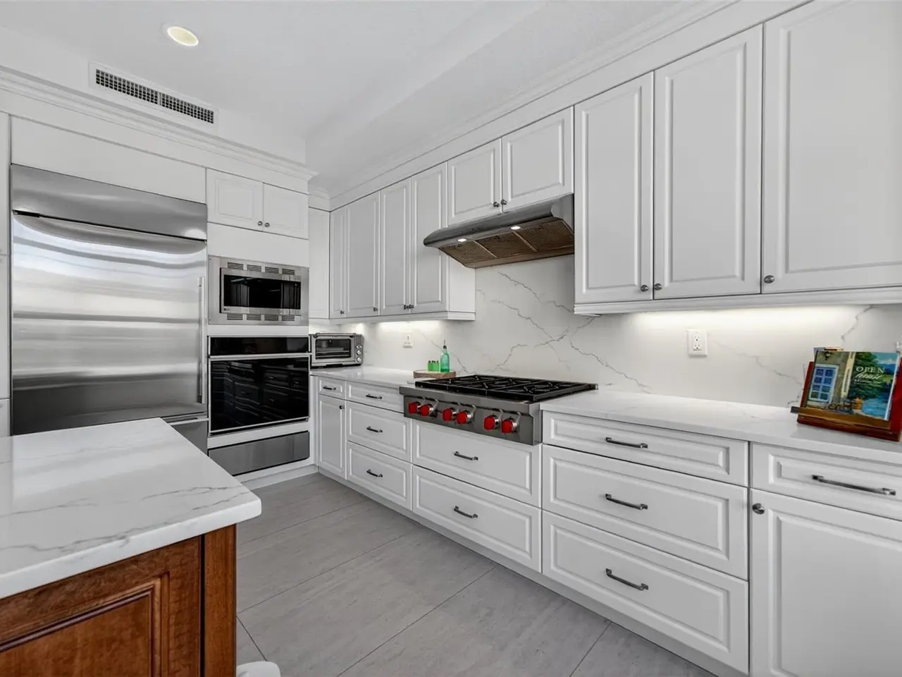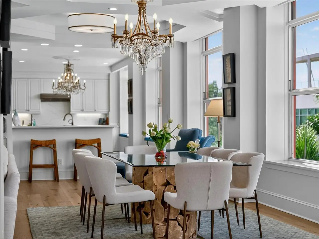 A luxurious piece of Sarasota’s history, combining timeless architecture, generous space, and modern upgrades in the heart of downtown. This rarely available full-floor residence at the iconic Orange Blossom Tower, built in 1926, one of downtown Sarasota’s most prestigious addresses at Main Street and Palm Avenue. Occupying the entire third floor, this 3-bedroom, 3-bath, 3,974-square-foot home offers a vibrant urban lifestyle just steps from fine dining, art galleries, boutiques, Bayfront Park, the marina, and Sarasota’s renowned theater district. From your private elevator, a grand foyer opens to a gallery hallway showcasing an antique brick wine cellar with a custom iron door, leading into expansive living and dining spaces adorned with bespoke millwork, a fireplace, octagonal ceiling detail, and oversized 7’ windows that flood the interiors with natural light. Two private terraces, including an oversized 13’ x 46’ retreat, to extend your living space outdoors for al fresco dining, and relaxation. The professionally enhanced kitchen is a chef’s dream, featuring quartz countertops, a Wolf 6-burner gas range, two Signature dishwashers, built-in refrigerator, beverage refrigerator, and a crystal chandelier over the center island. Condo features a water treatment system with reverse osmosis. Other recent updates include new AC units with infrared (2022 and 2023), new hot water heater (2024), new engineered wood flooring and carpet, a remodeled bath, new electrical outlets, electronic shades throughout, quartz window sills, and LED surface-mount fixtures and dimmers, The spacious owner’s suite offers large windows, 17’7” x 18’ antique-brick terrace overlooking tree-lined Palm Avenue, and an elegantly updated bath with dual vanities, walk-in shower, soaking tub, and custom closet system. Two guest suites are tucked into a private wing, each with a full bath and new custom closets—one opens directly to the expansive terrace—while a versatile large den makes an ideal office, reading room, or potential fourth bedroom with views of Sarasota Bay and stunning sunsets. Residents of Orange Blossom Tower enjoy concierge service, secure lobby entry, two deeded garage spaces, and use of the pool, spa, and fitness center at neighboring 1350 Main, along with additional storage room on the terrace and second floor. Importantly, the building’s Structural Integrity Reserve Study (SIRS) and Financial Reserve Study (FRS) were both completed in 2024, ensuring full compliance with current Florida regulations and giving buyers added peace of mind.