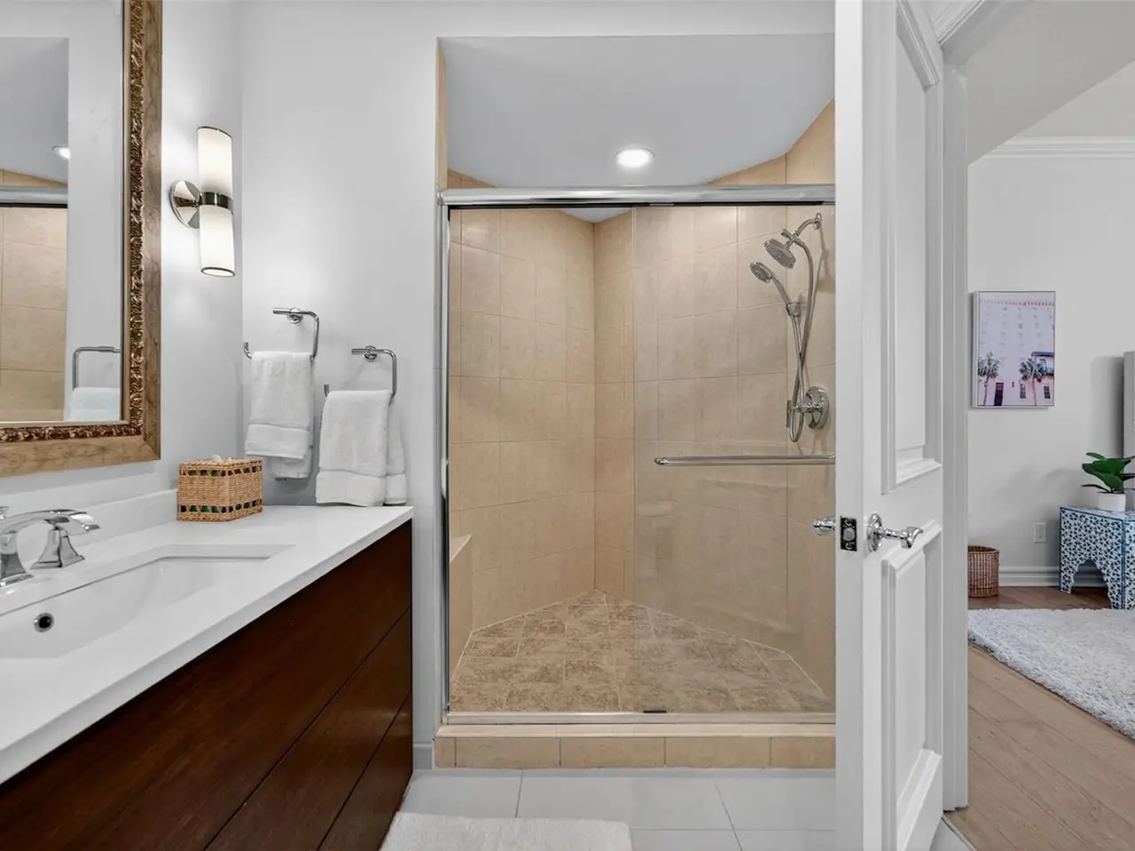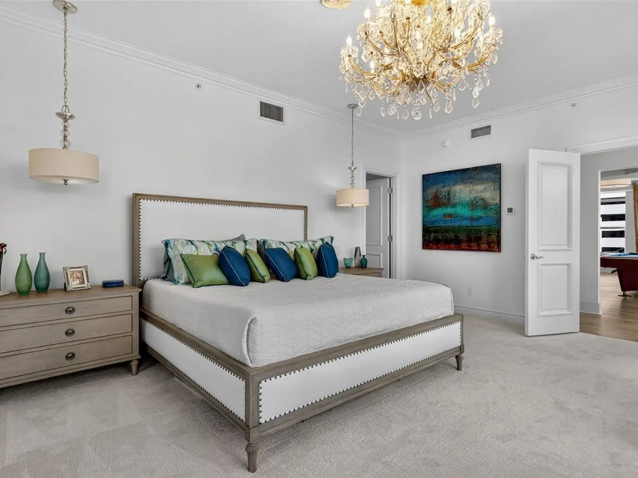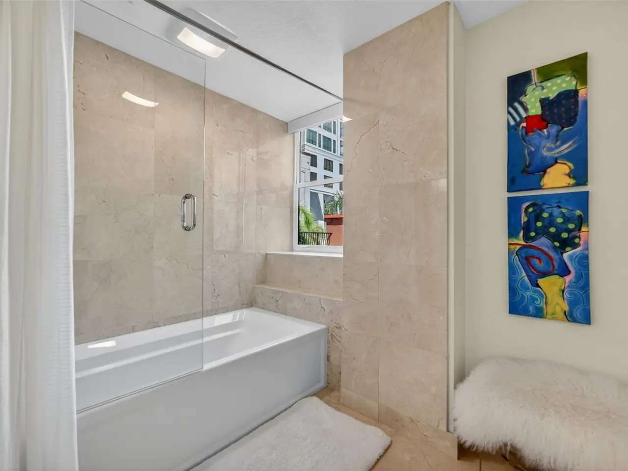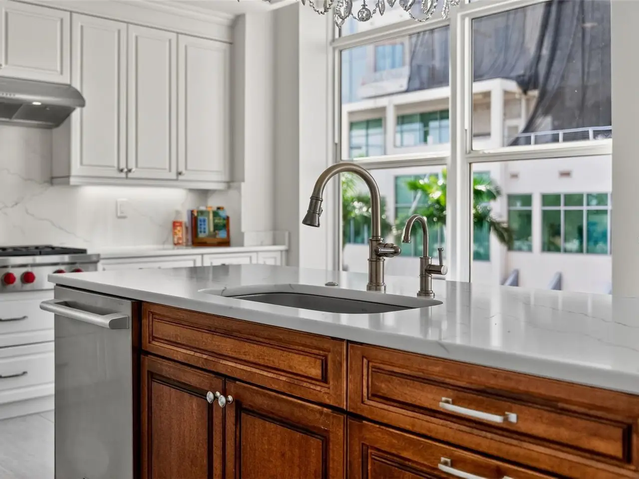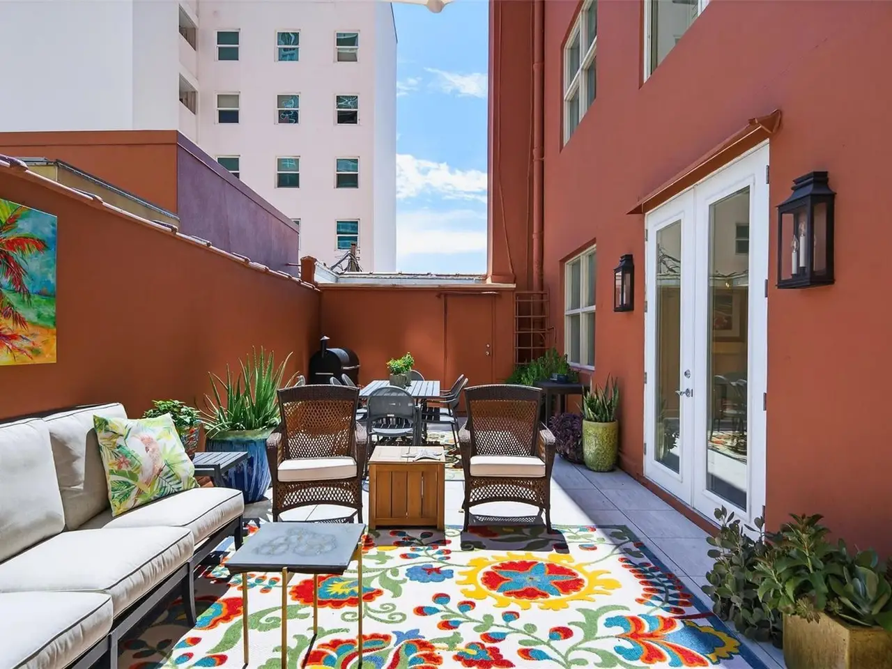 A luxurious piece of Sarasota’s history, combining timeless architecture, generous space, and modern upgrades in the heart of downtown. This rarely available full-floor residence at the iconic Orange Blossom Tower, built in 1926, one of downtown Sarasota’s most prestigious addresses at Main Street and Palm Avenue. Occupying the entire third floor, this 3-bedroom, 3-bath, 3,974-square-foot home offers a vibrant urban lifestyle just steps from fine dining, art galleries, boutiques, Bayfront Park, the marina, and Sarasota’s renowned theater district. From your private elevator, a grand foyer opens to a gallery hallway showcasing an antique brick wine cellar with a custom iron door, leading into expansive living and dining spaces adorned with bespoke millwork, a fireplace, octagonal ceiling detail, and oversized 7’ windows that flood the interiors with natural light. Two private terraces, including an oversized 13’ x 46’ retreat, to extend your living space outdoors for al fresco dining, and relaxation. The professionally enhanced kitchen is a chef’s dream, featuring quartz countertops, a Wolf 6-burner gas range, two Signature dishwashers, built-in refrigerator, beverage refrigerator, and a crystal chandelier over the center island. Condo features a water treatment system with reverse osmosis. Other recent updates include new AC units with infrared (2022 and 2023), new hot water heater (2024), new engineered wood flooring and carpet, a remodeled bath, new electrical outlets, electronic shades throughout, quartz window sills, and LED surface-mount fixtures and dimmers, The spacious owner’s suite offers large windows, 17’7” x 18’ antique-brick terrace overlooking tree-lined Palm Avenue, and an elegantly updated bath with dual vanities, walk-in shower, soaking tub, and custom closet system. Two guest suites are tucked into a private wing, each with a full bath and new custom closets—one opens directly to the expansive terrace—while a versatile large den makes an ideal office, reading room, or potential fourth bedroom with views of Sarasota Bay and stunning sunsets. Residents of Orange Blossom Tower enjoy concierge service, secure lobby entry, two deeded garage spaces, and use of the pool, spa, and fitness center at neighboring 1350 Main, along with additional storage room on the terrace and second floor. Importantly, the building’s Structural Integrity Reserve Study (SIRS) and Financial Reserve Study (FRS) were both completed in 2024, ensuring full compliance with current Florida regulations and giving buyers added peace of mind.
