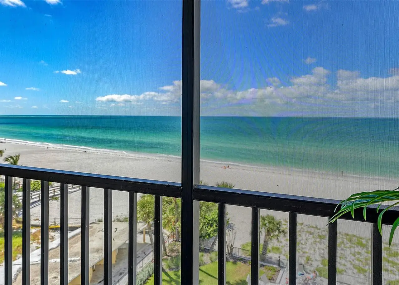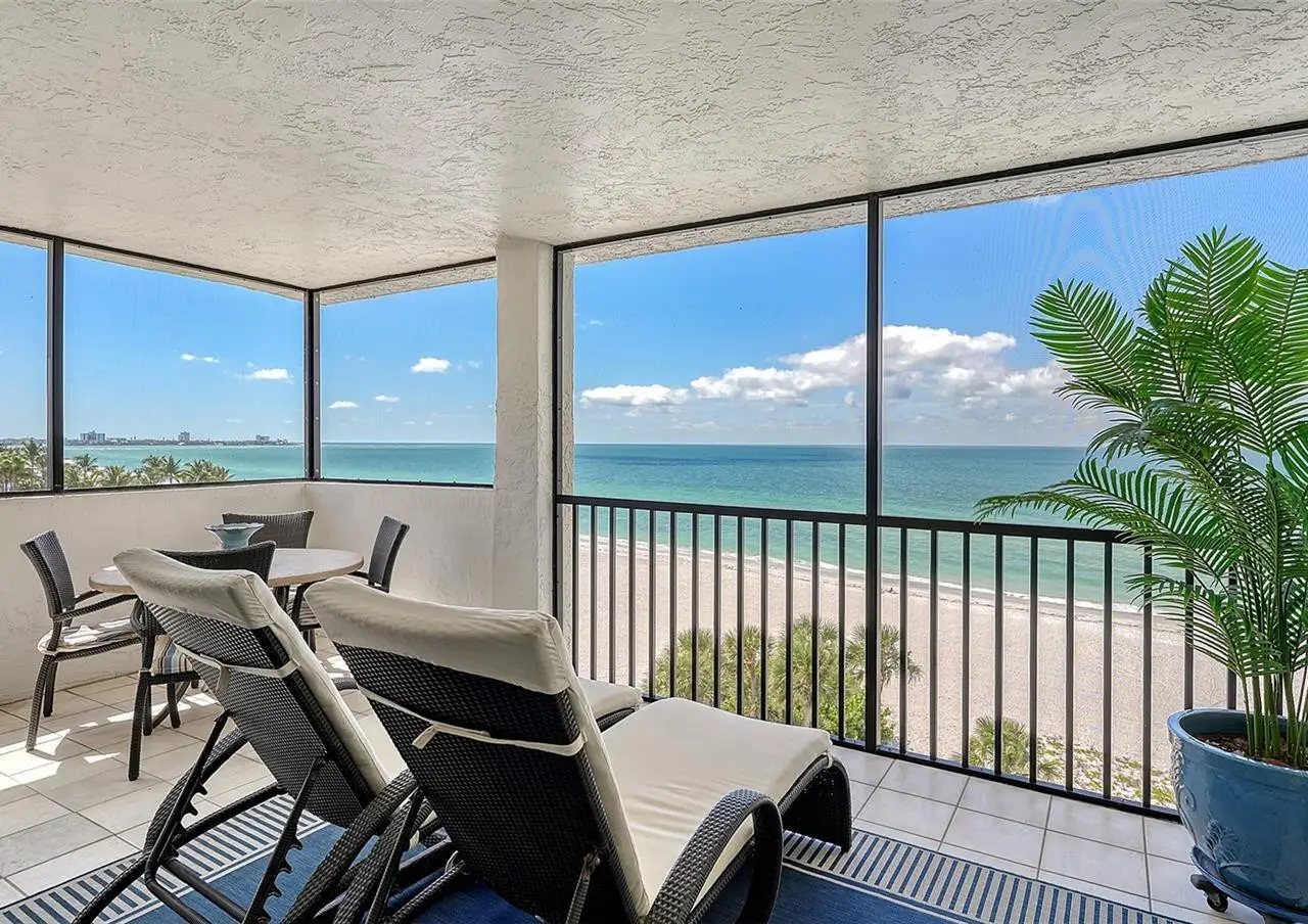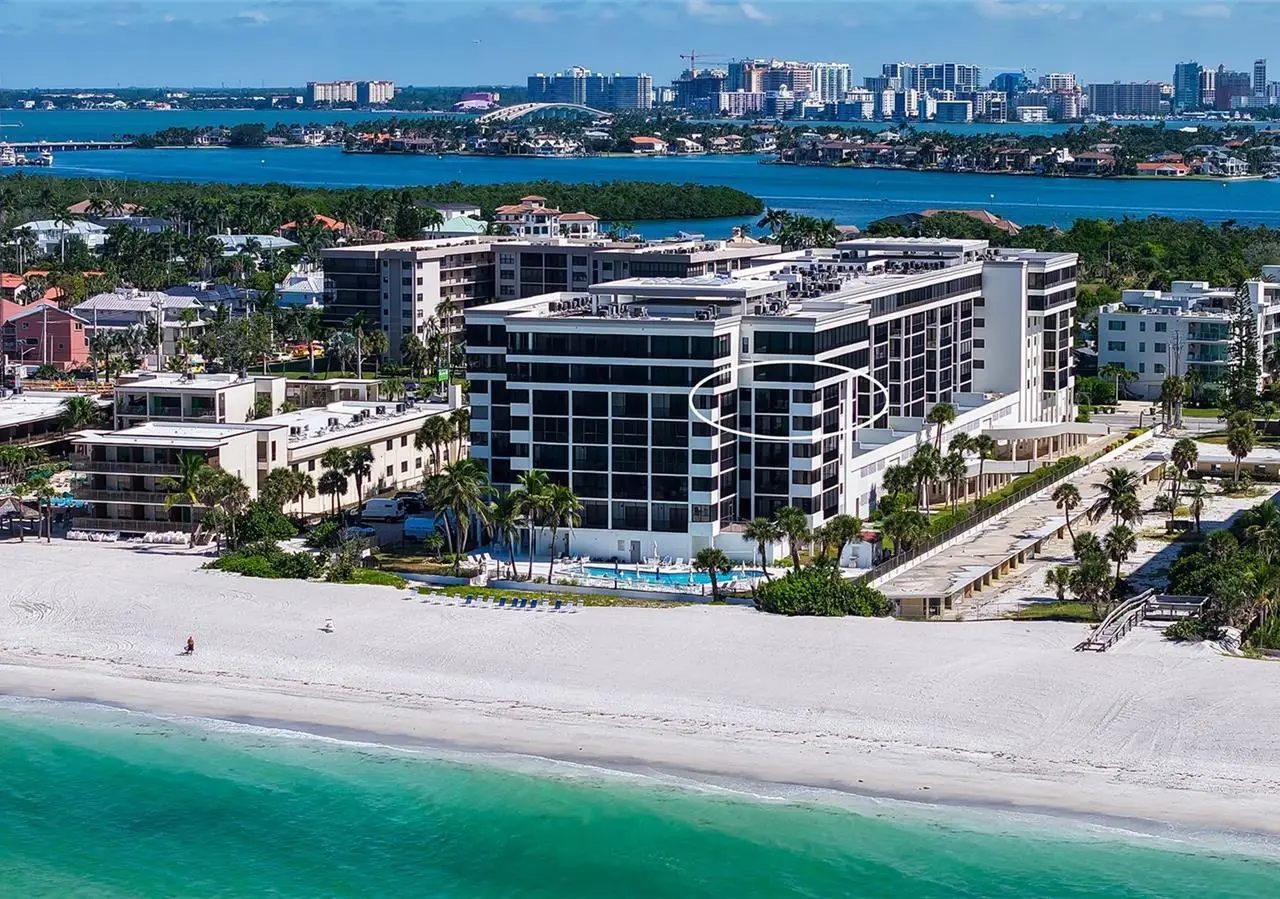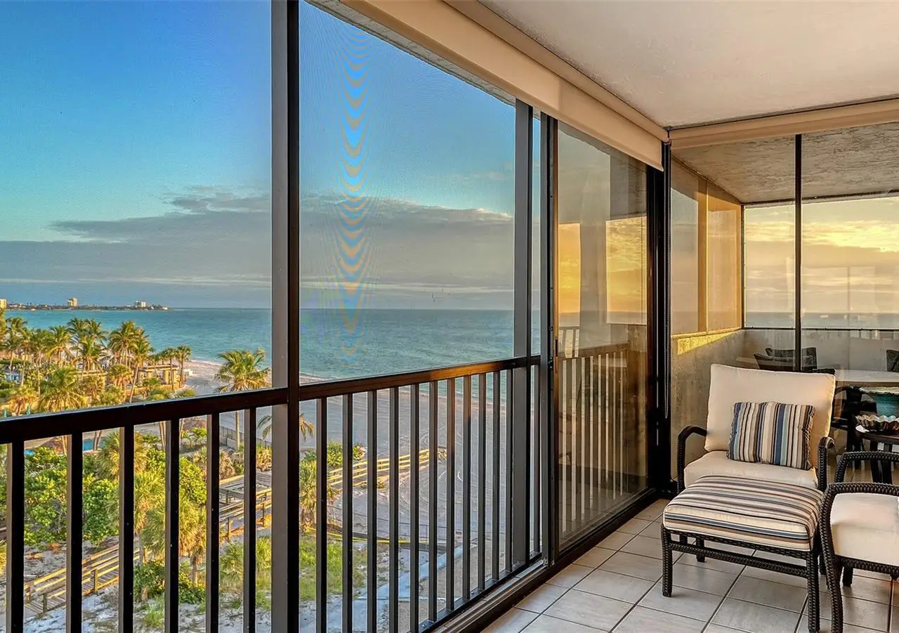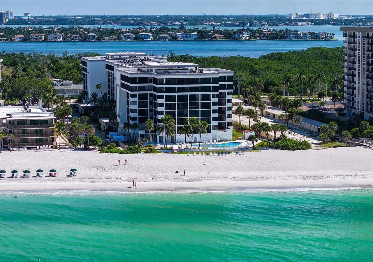 Luxurious Gulf-Front Corner Condo with Sweeping Views – Lido Surf & Sand. Experience the pinnacle of beachfront living in this rarely available southwest corner residence at Lido Surf & Sand, offering unparalleled panoramic views of the Gulf of Mexico, Lido Beach, and all the way to Siesta Key. Perched on the 6th floor of the coveted gulf-front atrium building, this 2-bedroom, 2-bathroom end-unit boasts 1,456 sq. ft. of elegant interior living space plus an additional 372 sq. ft. of expansive wraparound balconies—perfect for soaking in both sunrise and sunset. One of only four corner units per floor, this light-filled condo features floor-to-ceiling beach views from every main living space, creating a true indoor-outdoor lifestyle. The open-concept layout flows seamlessly from the dining area and spacious great room to the full-width beachfront balcony—ideal for both intimate evenings or entertaining a crowd. The custom gourmet galley kitchen is thoughtfully designed with beautiful countertops, custom lighted cabinetry, and generous storage, making it both beautiful and functional, new appliances, perfect for entertaining. Enjoy peace of mind with a new water heater (2023), brand new A/C unit, and upgraded hurricane-impact windows, sliders, and front door. Wake up to coffee on your private lanai with endless beach views or wind down with the gentle sounds of the surf in the evening. A newly planned social room will elevate your outdoor living experience even further. Just two blocks from a private nature preserve—perfect for peaceful walks or kayaking—and moments from St. Armands Circle, where you can explore boutique shopping and exceptional dining. Whether you're seeking a serene retreat or a vibrant coastal lifestyle, this one-of-a-kind residence offers the best of both. Your Lido Key beachfront lifestyle awaits. Schedule your private tour today.