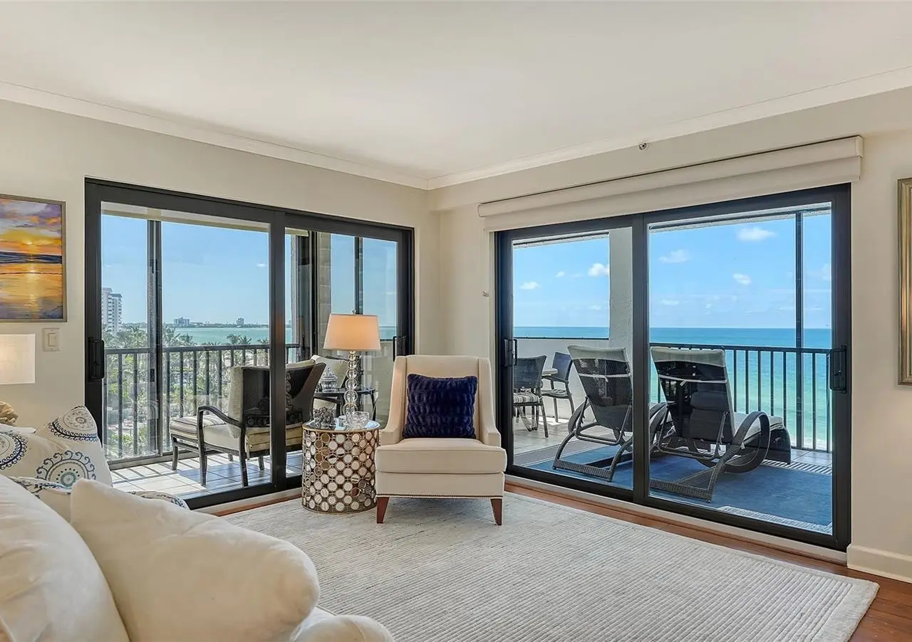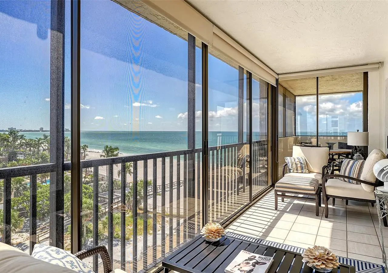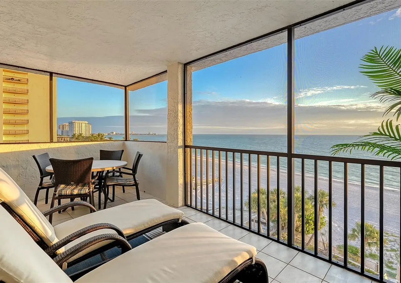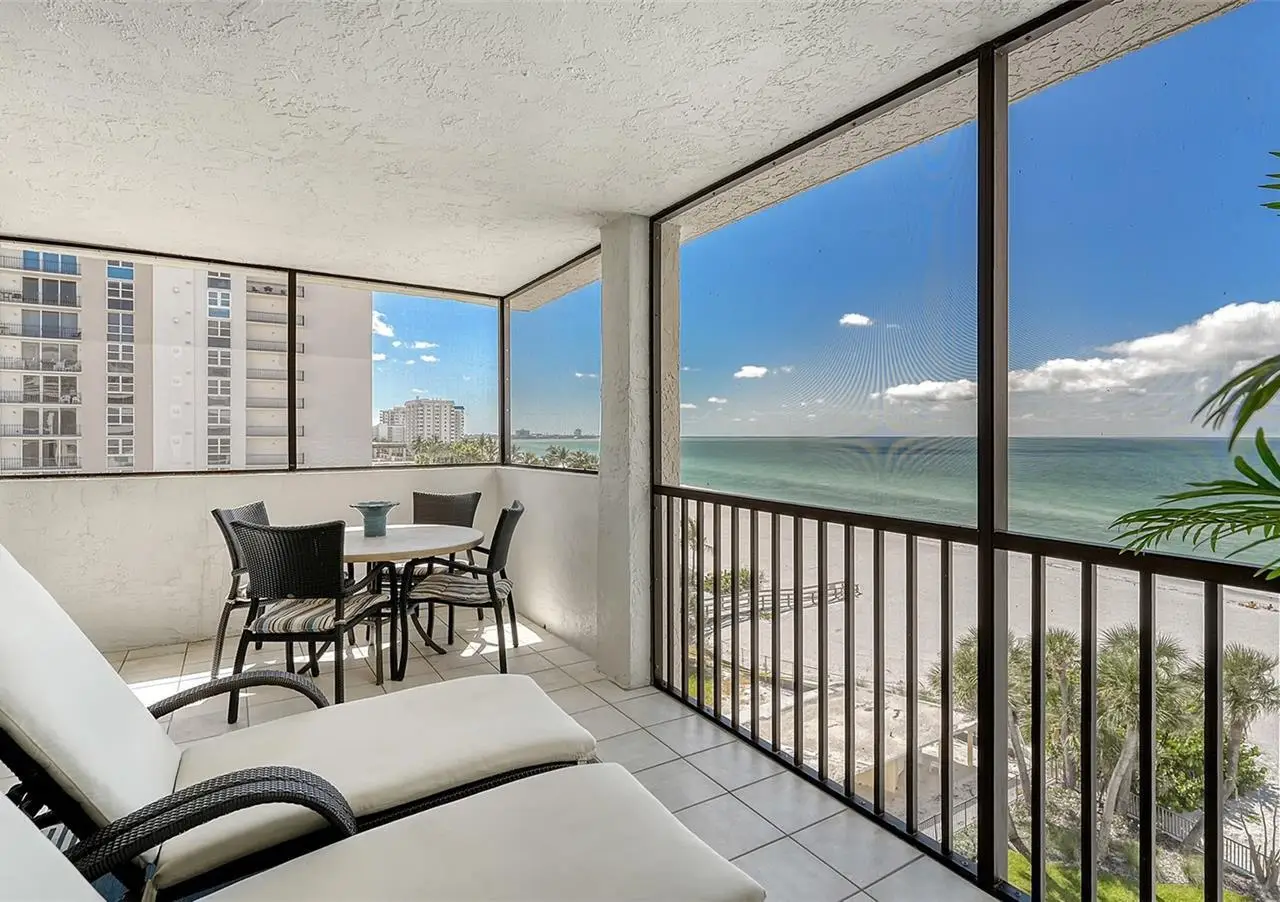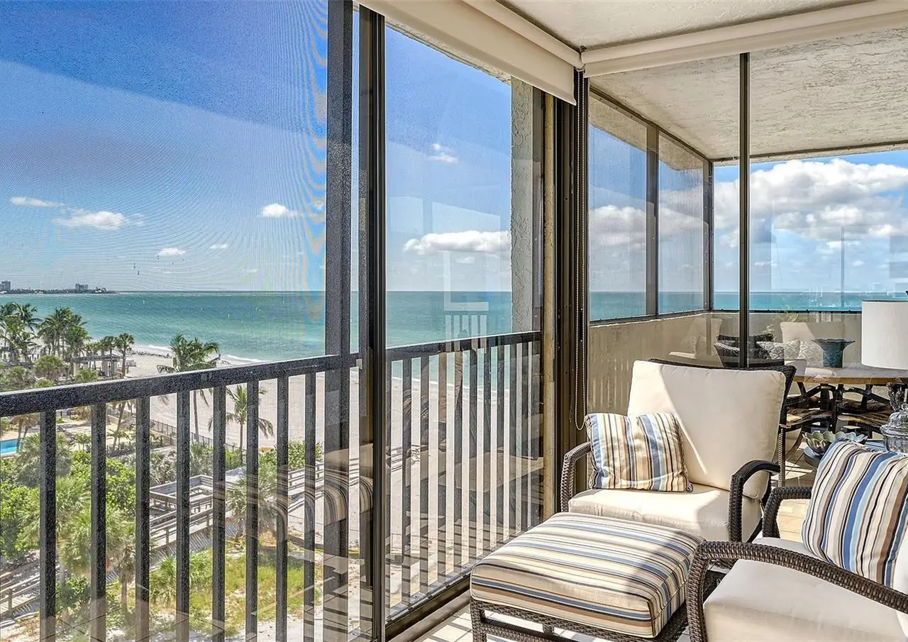 Luxurious Gulf-Front Corner Condo with Sweeping Views – Lido Surf & Sand. Experience the pinnacle of beachfront living in this rarely available southwest corner residence at Lido Surf & Sand, offering unparalleled panoramic views of the Gulf of Mexico, Lido Beach, and all the way to Siesta Key. Perched on the 6th floor of the coveted gulf-front atrium building, this 2-bedroom, 2-bathroom end-unit boasts 1,456 sq. ft. of elegant interior living space plus an additional 372 sq. ft. of expansive wraparound balconies—perfect for soaking in both sunrise and sunset. One of only four corner units per floor, this light-filled condo features floor-to-ceiling beach views from every main living space, creating a true indoor-outdoor lifestyle. The open-concept layout flows seamlessly from the dining area and spacious great room to the full-width beachfront balcony—ideal for both intimate evenings or entertaining a crowd. The custom gourmet galley kitchen is thoughtfully designed with beautiful countertops, custom lighted cabinetry, and generous storage, making it both beautiful and functional, new appliances, perfect for entertaining. Enjoy peace of mind with a new water heater (2023), brand new A/C unit, and upgraded hurricane-impact windows, sliders, and front door. Wake up to coffee on your private lanai with endless beach views or wind down with the gentle sounds of the surf in the evening. A newly planned social room will elevate your outdoor living experience even further. Just two blocks from a private nature preserve—perfect for peaceful walks or kayaking—and moments from St. Armands Circle, where you can explore boutique shopping and exceptional dining. Whether you're seeking a serene retreat or a vibrant coastal lifestyle, this one-of-a-kind residence offers the best of both. Your Lido Key beachfront lifestyle awaits. Schedule your private tour today.