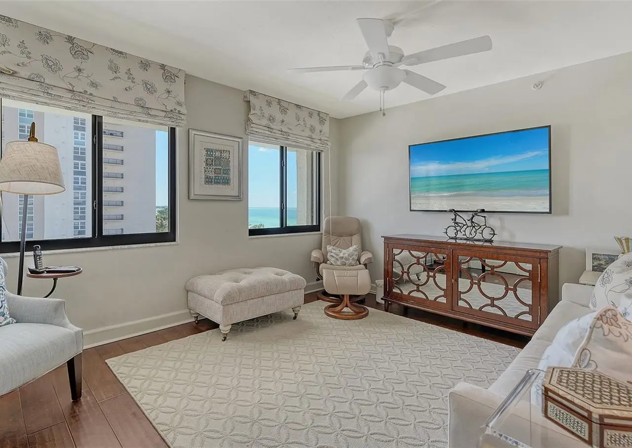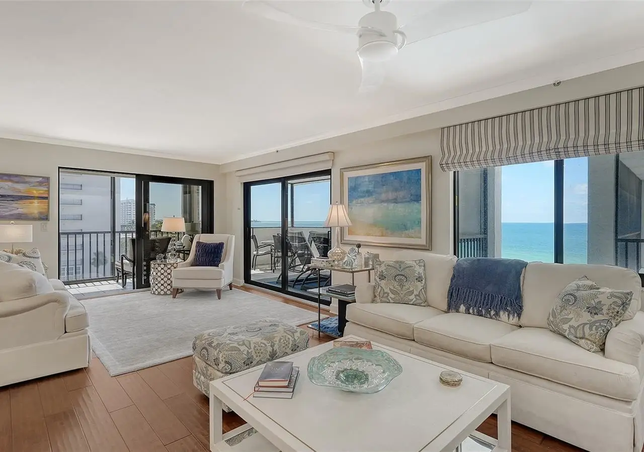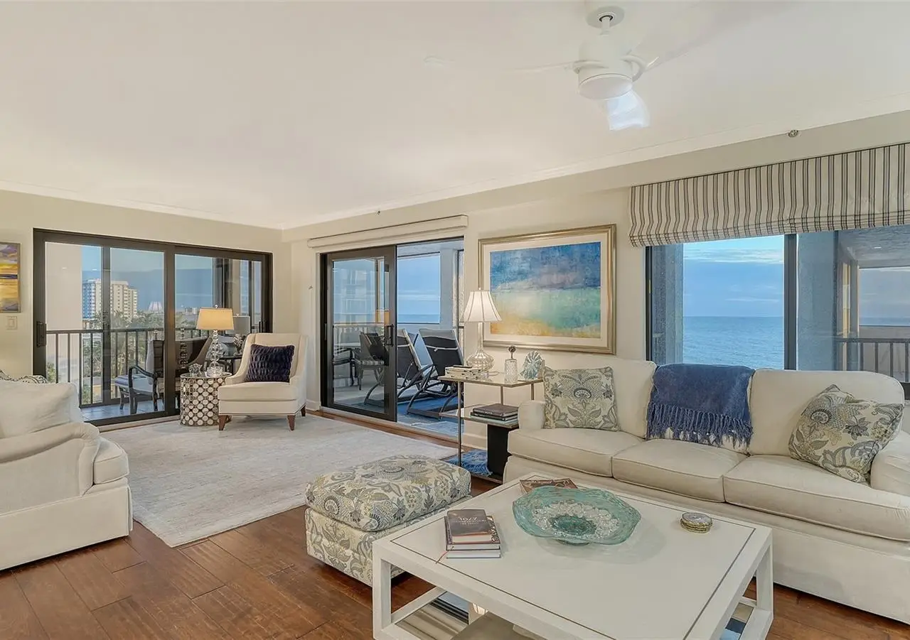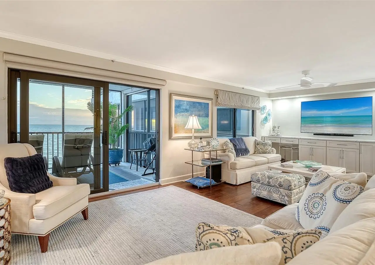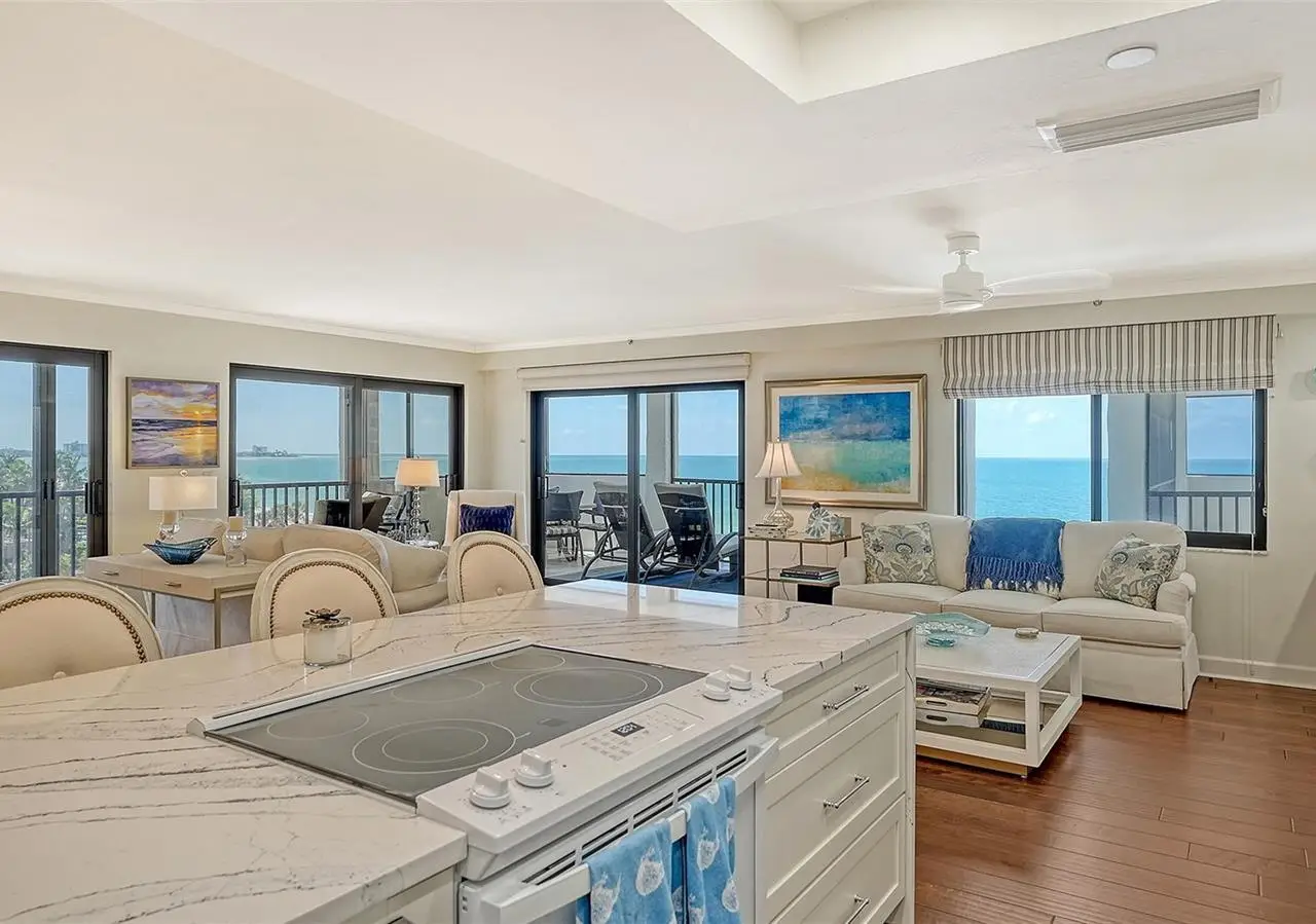 Luxurious Gulf-Front Corner Condo with Sweeping Views – Lido Surf & Sand. Experience the pinnacle of beachfront living in this rarely available southwest corner residence at Lido Surf & Sand, offering unparalleled panoramic views of the Gulf of Mexico, Lido Beach, and all the way to Siesta Key. Perched on the 6th floor of the coveted gulf-front atrium building, this 2-bedroom, 2-bathroom end-unit boasts 1,456 sq. ft. of elegant interior living space plus an additional 372 sq. ft. of expansive wraparound balconies—perfect for soaking in both sunrise and sunset. One of only four corner units per floor, this light-filled condo features floor-to-ceiling beach views from every main living space, creating a true indoor-outdoor lifestyle. The open-concept layout flows seamlessly from the dining area and spacious great room to the full-width beachfront balcony—ideal for both intimate evenings or entertaining a crowd. The custom gourmet galley kitchen is thoughtfully designed with beautiful countertops, custom lighted cabinetry, and generous storage, making it both beautiful and functional, new appliances, perfect for entertaining. Enjoy peace of mind with a new water heater (2023), brand new A/C unit, and upgraded hurricane-impact windows, sliders, and front door. Wake up to coffee on your private lanai with endless beach views or wind down with the gentle sounds of the surf in the evening. A newly planned social room will elevate your outdoor living experience even further. Just two blocks from a private nature preserve—perfect for peaceful walks or kayaking—and moments from St. Armands Circle, where you can explore boutique shopping and exceptional dining. Whether you're seeking a serene retreat or a vibrant coastal lifestyle, this one-of-a-kind residence offers the best of both. Your Lido Key beachfront lifestyle awaits. Schedule your private tour today.