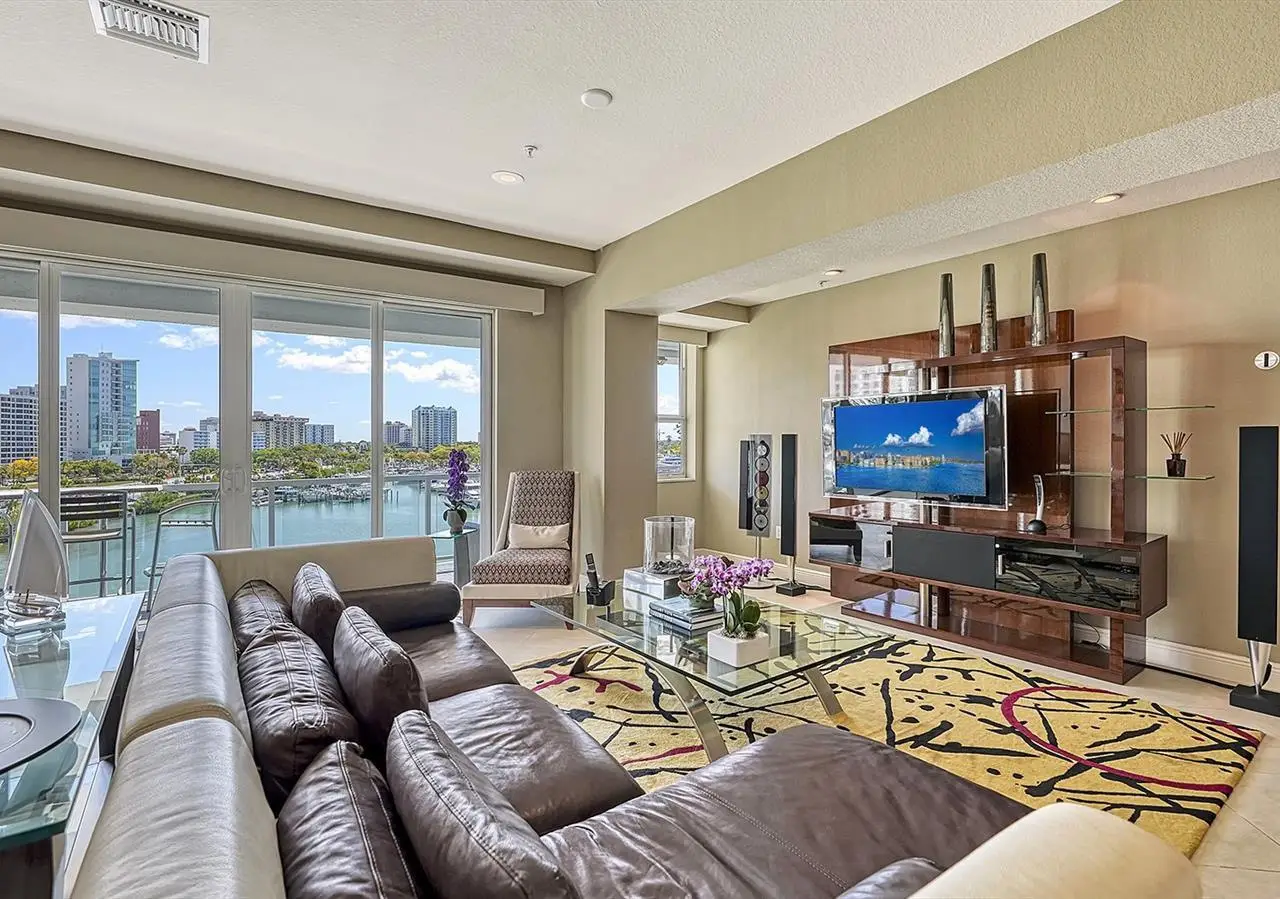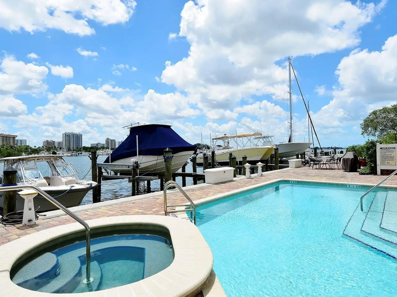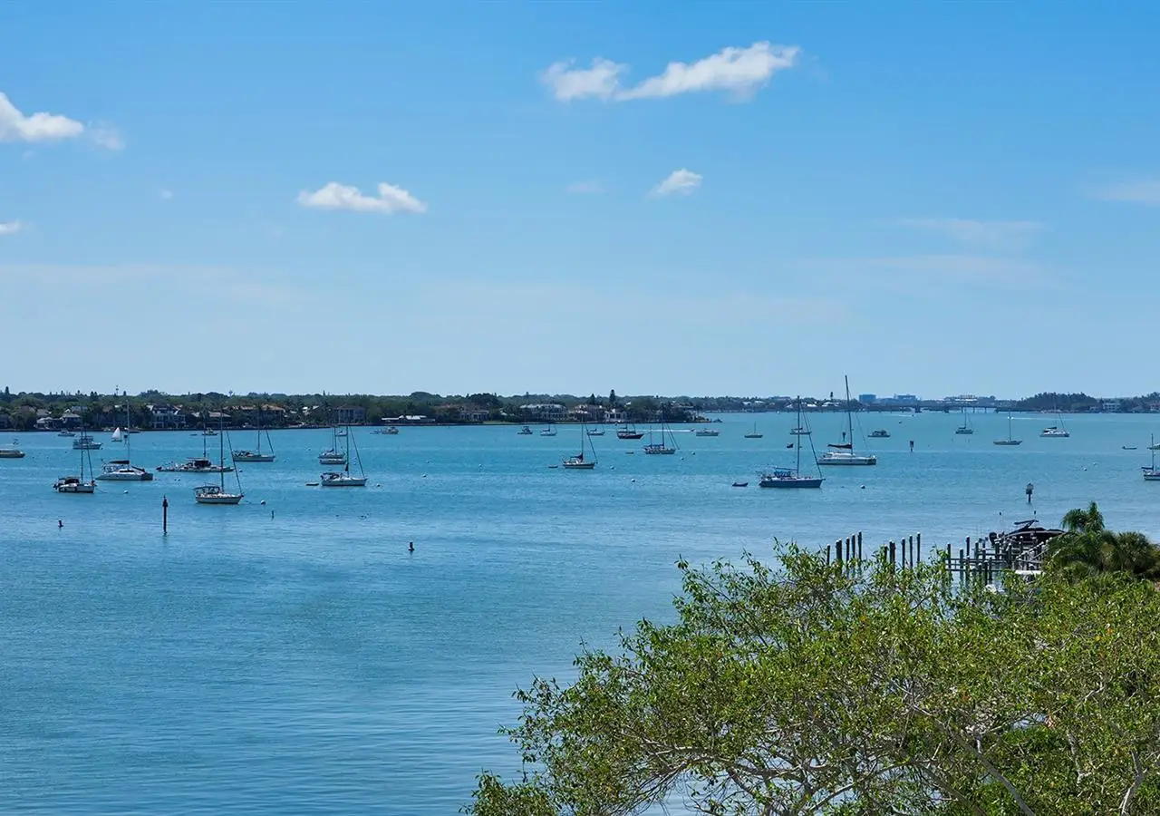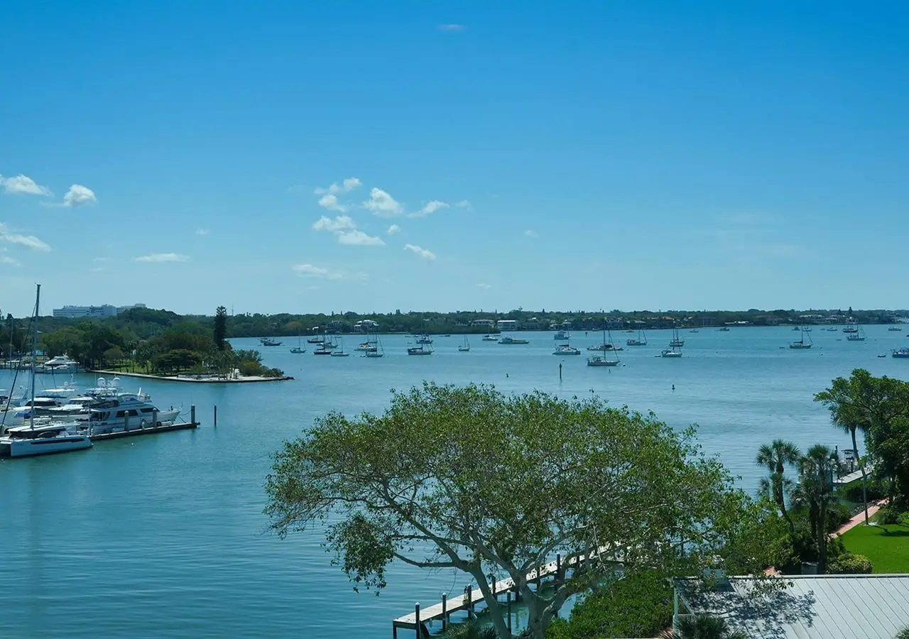 Luxury Waterfront Penthouse in Golden Gate Point. This exceptional penthouse in an exclusive 14-unit boutique building offers breathtaking panoramic views of Sarasota Bay, the city skyline, and Marina Jack. Occupying half of the top floor, this meticulously designed three-bedroom, three-bathroom residence features a spacious split floor plan with an open-concept layout ideal for privacy and entertaining. The chef's kitchen includes top-of-the-line appliances, imported finishes, and a wet bar, while the master suite offers a private wet bar, spa-inspired bath, and stunning views. Turnkey with high-end Italian furnishings and artwork (with few exceptions), the home also features a 52-foot heated balcony for prime waterfront relaxation. A rare assigned 40-foot boat slip provides direct access to Sarasota Bay and the Gulf. Harbor View was redeveloped to Florida?s enhanced building codes in 2006-07, with $1.5M in updates in 2018 and a new seawall, docks, and renovated pool/patio in 2022. Gated entry, security cameras, and two covered parking spaces add convenience. Just four blocks from downtown Sarasota and a short bike ride over the Ringling Bridge to Lido Beach and St. Armands Circle, this exclusive penthouse offers luxury waterfront living at its finest. Schedule your private showing today!