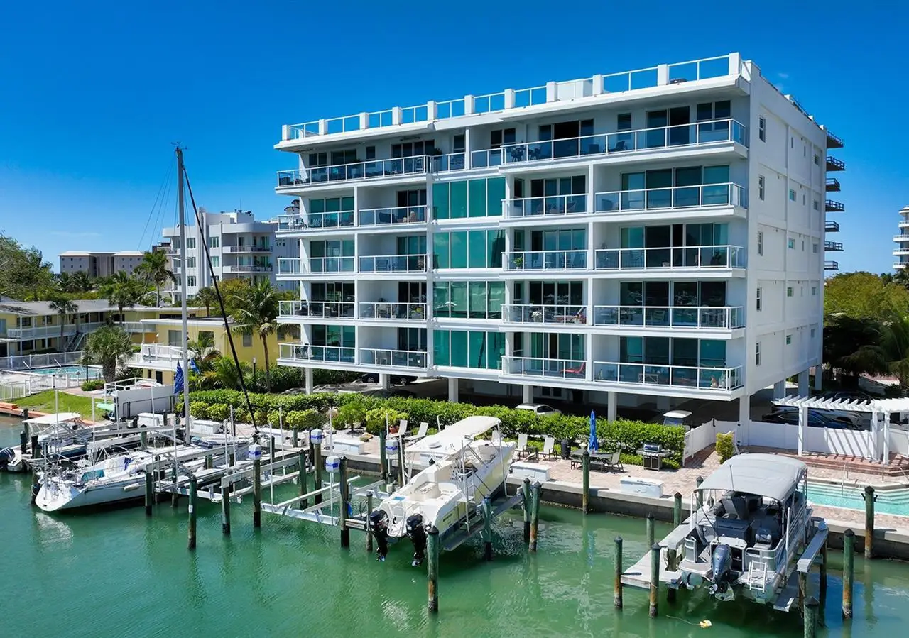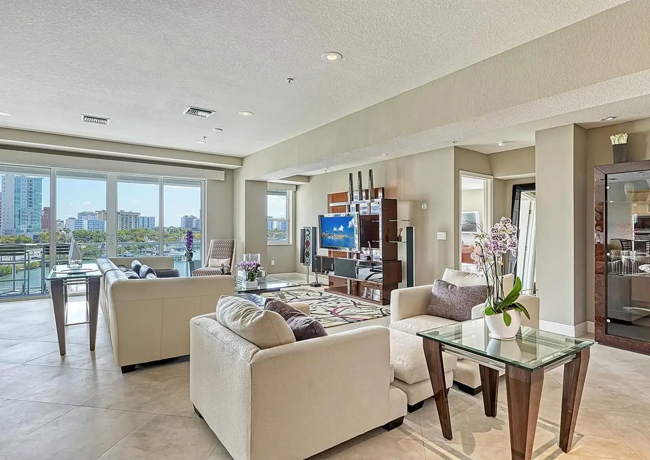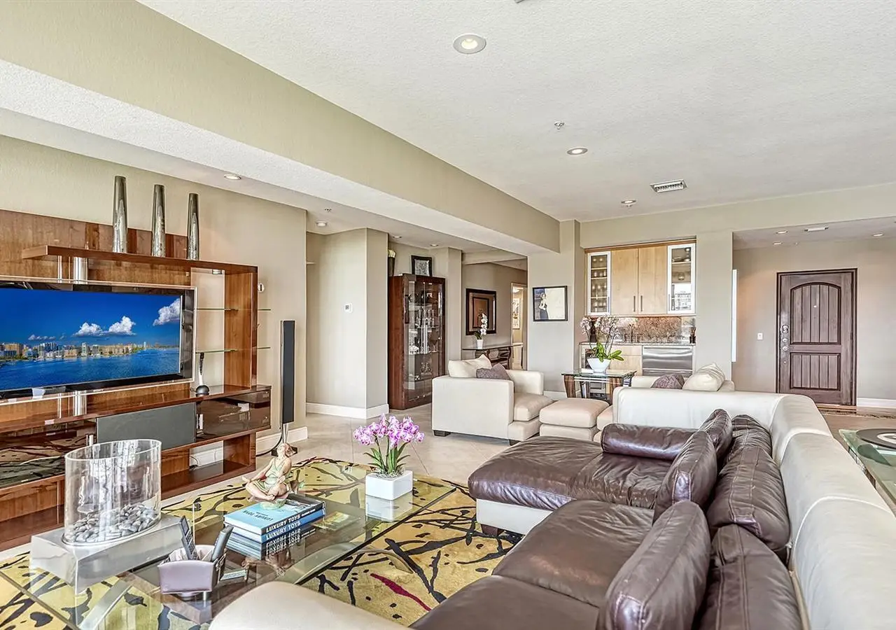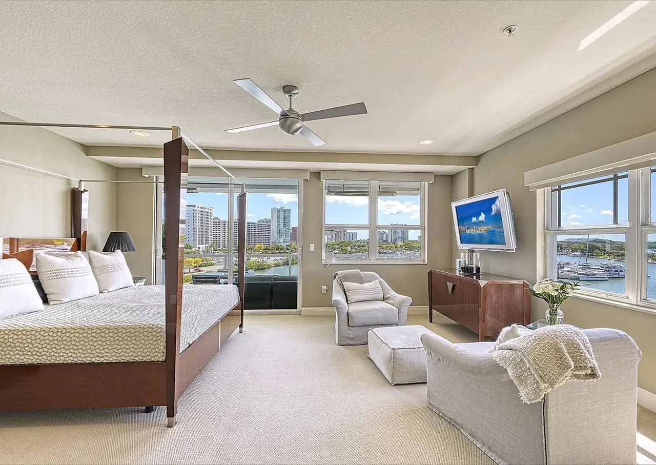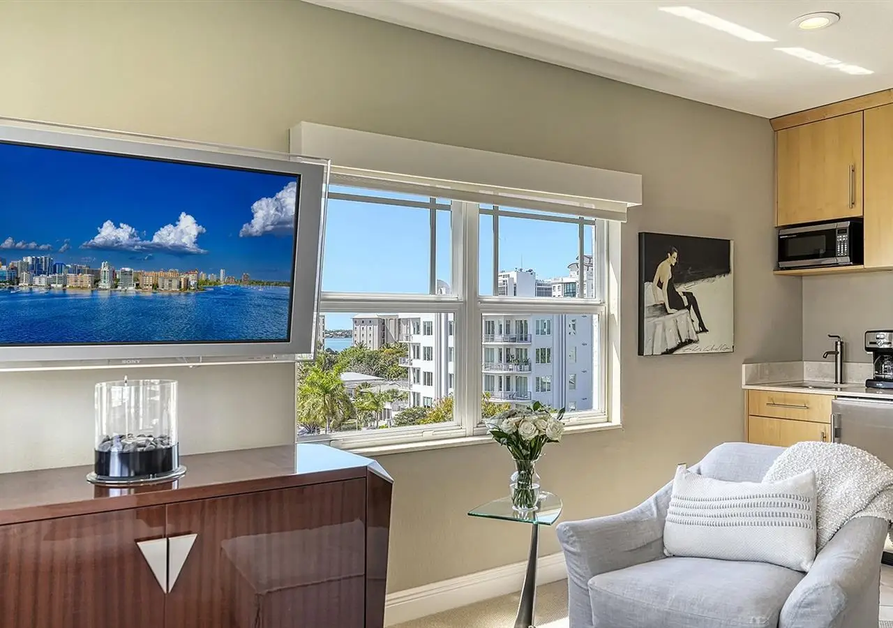 Luxury Waterfront Penthouse in Golden Gate Point. This exceptional penthouse in an exclusive 14-unit boutique building offers breathtaking panoramic views of Sarasota Bay, the city skyline, and Marina Jack. Occupying half of the top floor, this meticulously designed three-bedroom, three-bathroom residence features a spacious split floor plan with an open-concept layout ideal for privacy and entertaining. The chef's kitchen includes top-of-the-line appliances, imported finishes, and a wet bar, while the master suite offers a private wet bar, spa-inspired bath, and stunning views. Turnkey with high-end Italian furnishings and artwork (with few exceptions), the home also features a 52-foot heated balcony for prime waterfront relaxation. A rare assigned 40-foot boat slip provides direct access to Sarasota Bay and the Gulf. Harbor View was redeveloped to Florida?s enhanced building codes in 2006-07, with $1.5M in updates in 2018 and a new seawall, docks, and renovated pool/patio in 2022. Gated entry, security cameras, and two covered parking spaces add convenience. Just four blocks from downtown Sarasota and a short bike ride over the Ringling Bridge to Lido Beach and St. Armands Circle, this exclusive penthouse offers luxury waterfront living at its finest. Schedule your private showing today!