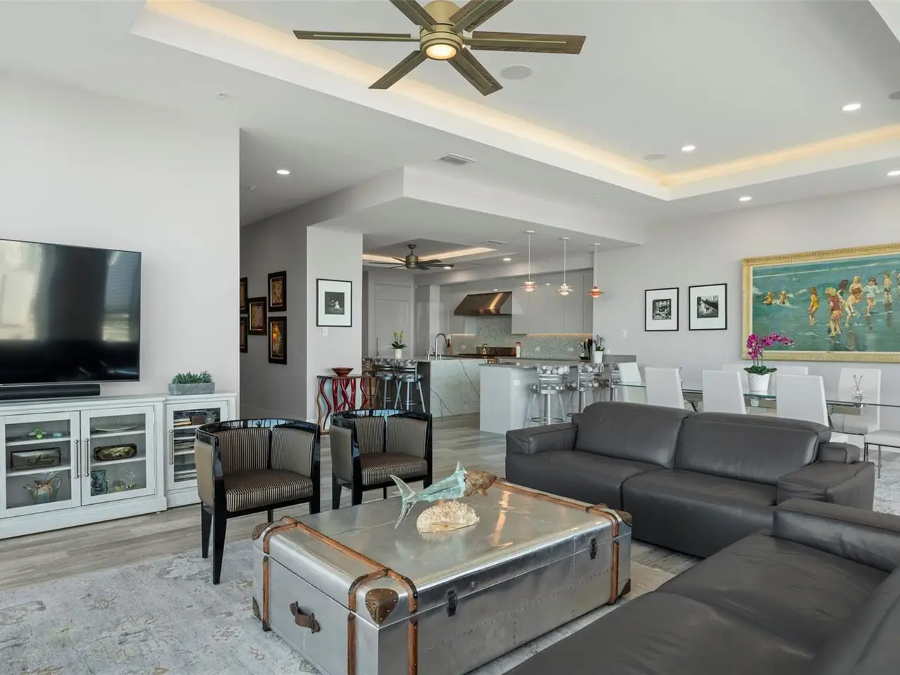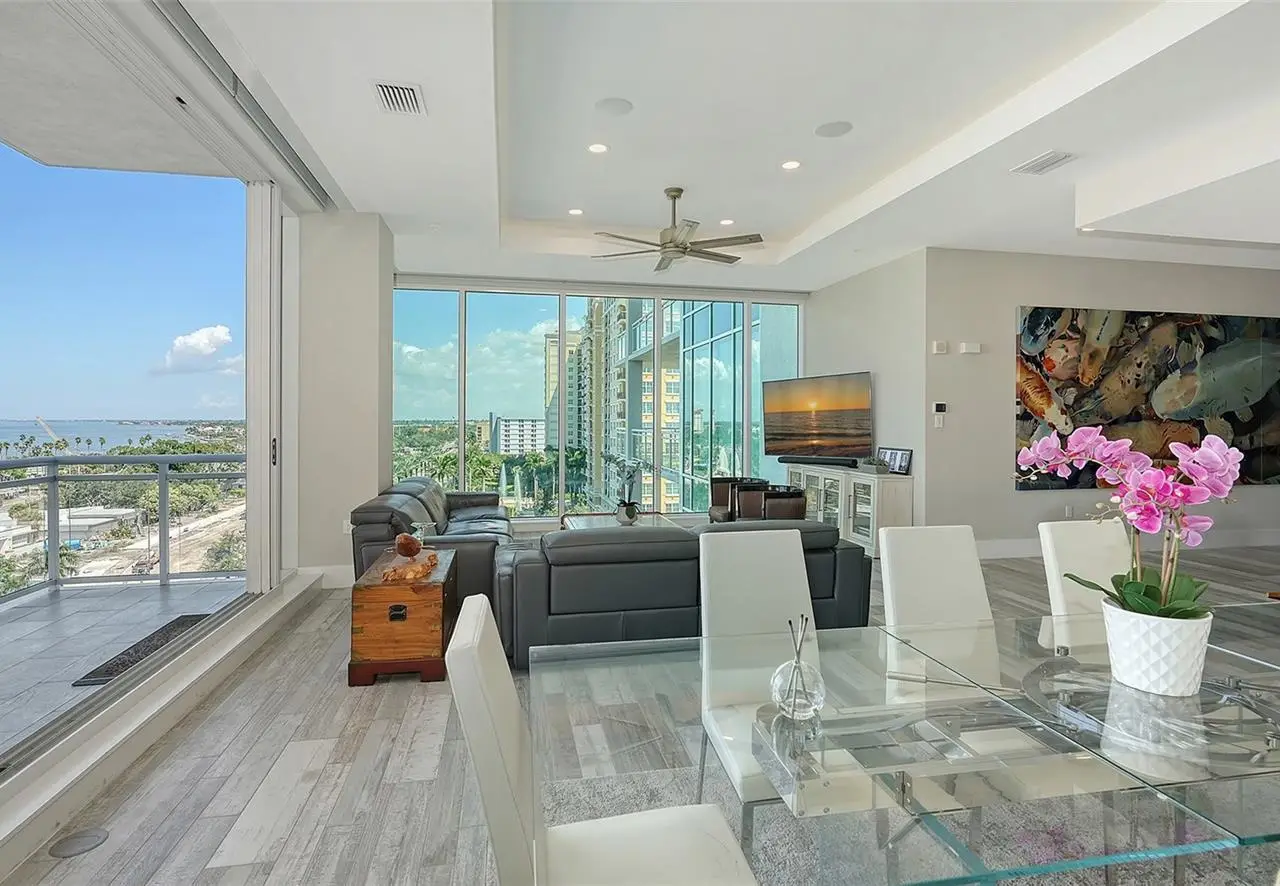 Welcome to your magnificent home in the sky at the sought-after & highly amenitized BLVD Sarasota which boasts some of the most breathtaking panoramic Bayfront and City views in all of Sarasota with second-to-none vistas, sunrises, & sunsets encapsulated by vast floor-to-ceiling impact windows and a 12' impact sliding door. This 8th floor condo in the desired 02 stack features 3 sprawling open-air terraces w/ glass railings & tile flooring, & boasts 3962 sf, 3 bedrooms, 3.5 baths & luxurious finishes & countless one-of-a-kind updates where no expense has been spared in design, material, finish, technology, or resident experience. A private access-controlled elevator opens directly into your foyer where the expansive open-concept great room & dining area & those stunning views meet the state-of-the-art Chef's kitchen. The beautiful open space includes a large working/social Caesarstone Quartz waterfall island & countertops, custom wet bar w/ Scotsman ice machine, 46 bottle Subzero wine fridge and Elkay martini-glass shaped bar sink, and chic Italian tile backsplash. High-quality stainless Thermador kitchen appliances featuring 3' refrigerator and 18" freezer, natural gas 6 burner with griddle range/dual oven, oversized hood, slide-out microwave, & upgraded dishwasher. Premium custom cabinetry w/ soft-close doors/drawers, under cabinet task lighting, & spacious pantry, complete the design forward space. 3 lavish & spacious bedroom suites each w/ private terrace access and luxurious en-suite baths w/ lighted mirrors. The primary is complete w/ spacious custom built-in with refrigerator, dual walk-in California closets & primary bath including glass/tile oversized shower w/ dual showerheads, walk-in soaking tub, floating dual sink vanities & premium cabinetry w/Caesarstone Quartz counters. A lovely powder room & separate laundry room w/ cabinetry, sink & Electrolux high-capacity front load washer/dryer with pedestals are conveniently located. Enhanced by Wicked Smart Homes, the state-of-the-art smart home system features Lutron lighting & motorized black-out & privacy shades, Sonos surround sound system w/ 6 amplifiers, in-wall subwoofer & other advanced automation, ensuring ultimate comfort/convenience. Other noteworthy residence features: Cove lighting, 8-foot-tall entry doors, solid-core interior doors many w/ custom glass, designer recessed light fixtures throughout. This unit is 1 of just a few w/ private 2-car garage (available under a separate contract) & 2 additional secure premium parking spaces & air conditioned private storage locker. BLVD, centrally located in the Rosemary District, w/ only 49 residences & its unique amenities set it apart from all other luxury condominiums on the Suncoast. Amenities include: Full building water softener, Rooftop infinity-edge pool & outdoor kitchen, fully staffed reception lobby & controlled building access, Wine Cellar w/ private lockers & wine tasting table, Pet Lawn & Grooming Station, Indoor Golf Driving Range, Owners Lounge, Conference Center & state-of-the-art Fitness Center. BLVD residents are only an elevator ride away from 1000 North, a members-only dining Club opening in 2025. Minutes to #1 rated Siesta Key Beach, retail shopping at St Armand's & all that downtown Sarasota has to offer. Rarely does a home of this caliber become available - don't miss the chance to own a piece of Sarasota's most coveted address.