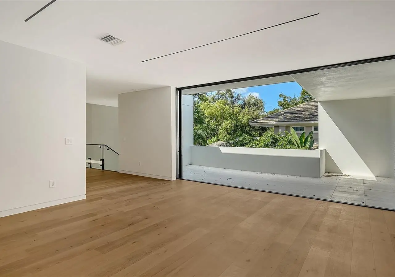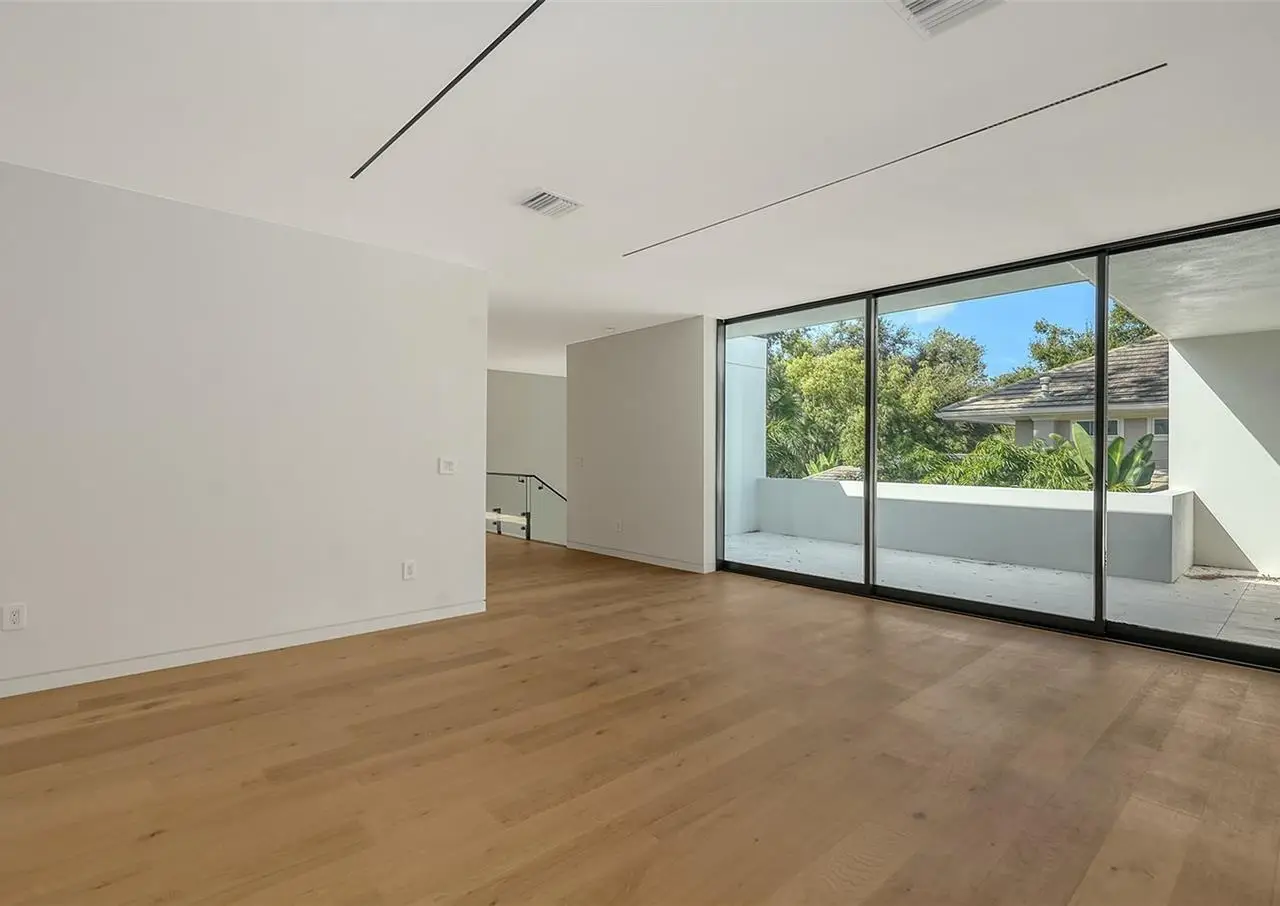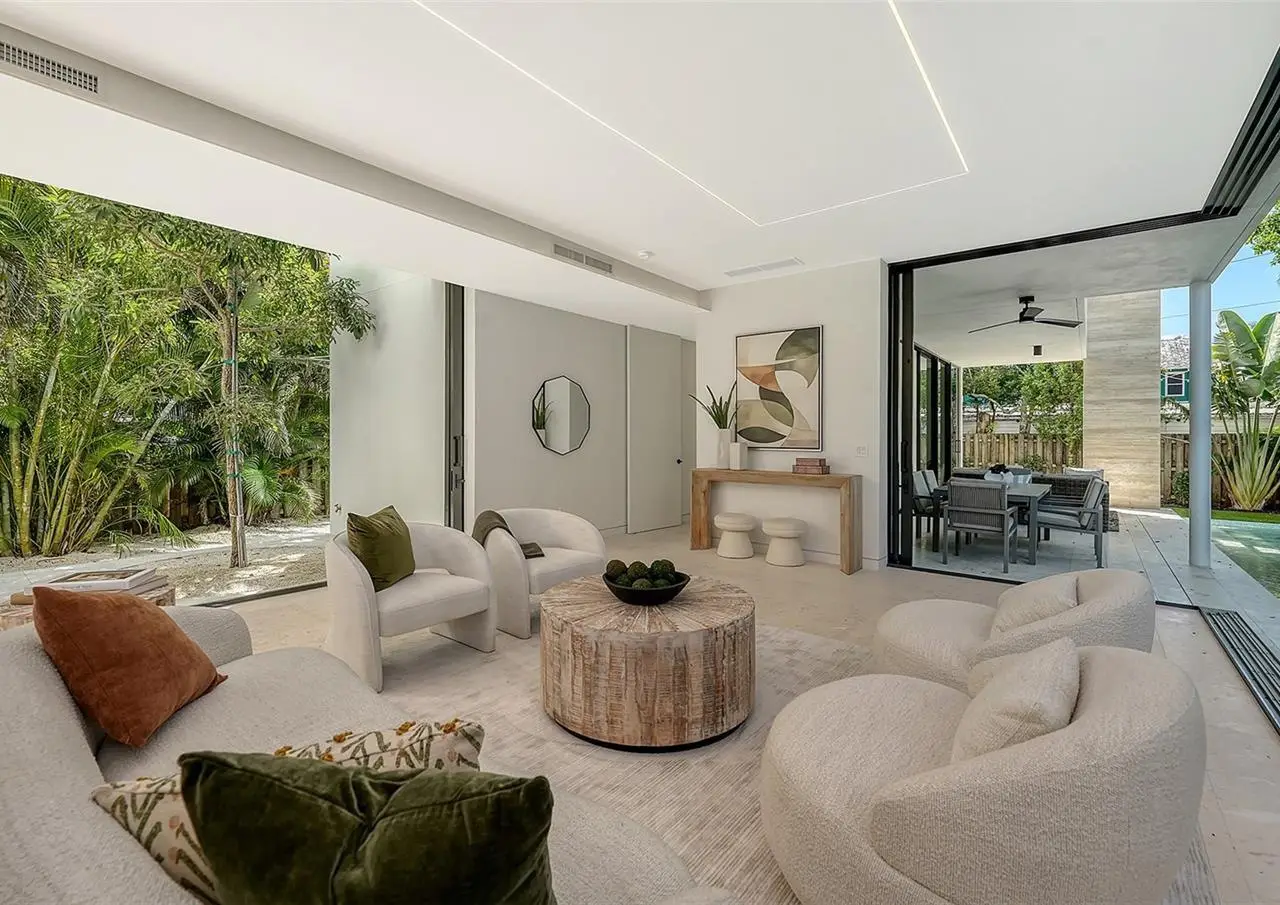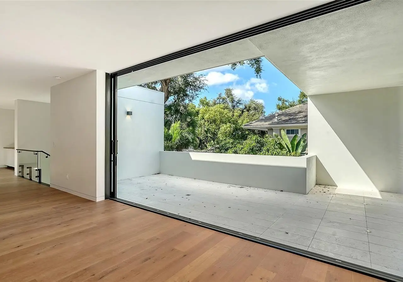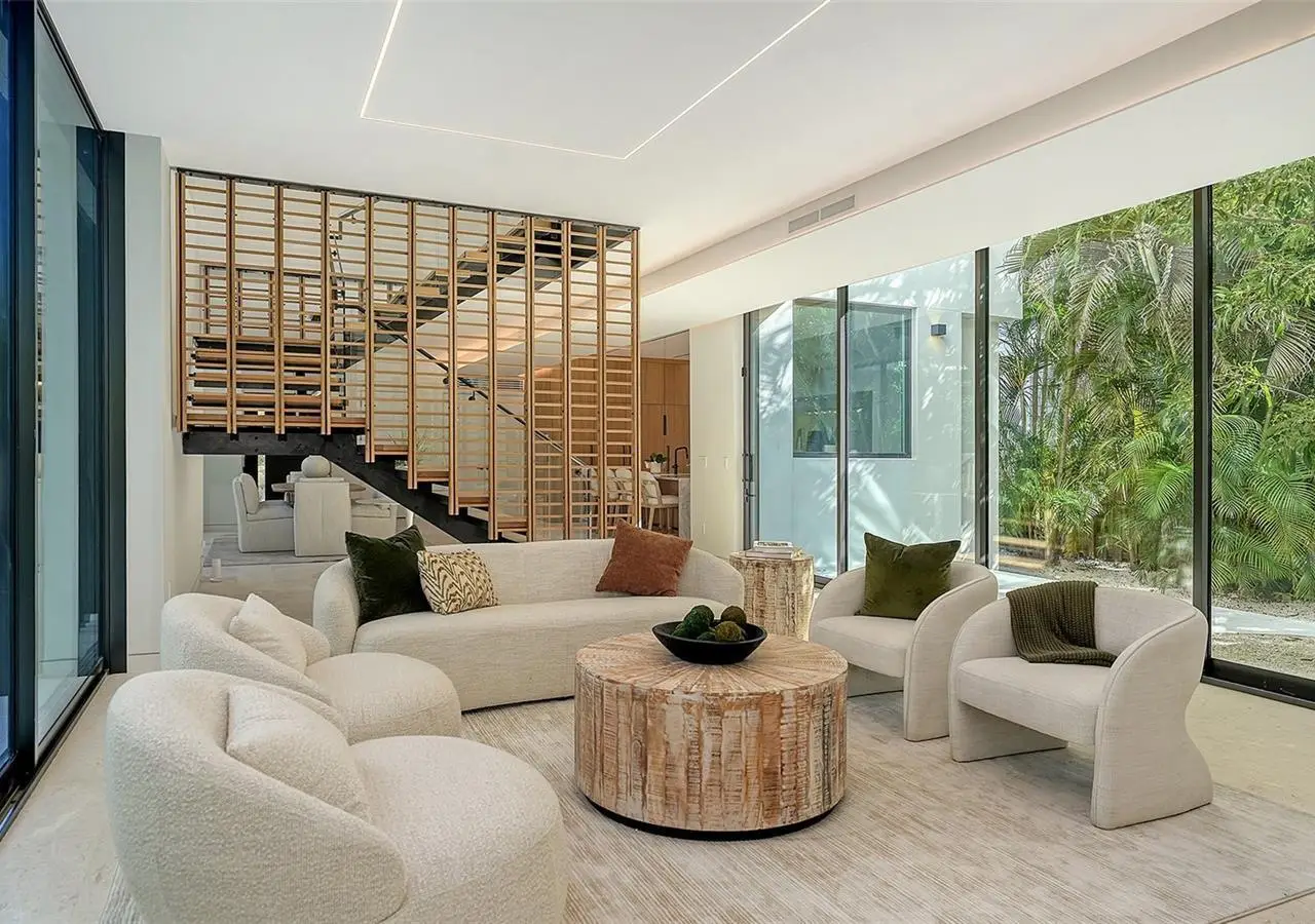 Stunning New Construction by Award-Winning Architect Dan Lear in coveted West of Trail Neighborhood** This meticulously designed luxury home offers the perfect blend of modern elegance and timeless sophistication. Near Selby Gardens, Morton's Market, and Sarasota Memorial Hospital, this exceptional property provides both convenience and style. Spanning over 3,800sqft of living area, this expansive residence boasts four spacious bedrooms, five full bathrooms, a enormous den with terrace, and a dedicated office space, all thoughtfully crafted for contemporary living. The grand, open-concept great room is the heart of the home, seamlessly floating over the pool area with a stunning large corner pocketing glass door that connects the interior to the beautifully landscaped outdoor oasis. The second floor features three guest suites, each with its own private terrace, offering tropical views and tranquility. The home's striking exterior showcases luxurious vein-cut travertine, creating a refined, sophisticated look. This is an extraordinary opportunity to move right in to a worry free one-of-a-kind masterpiece.