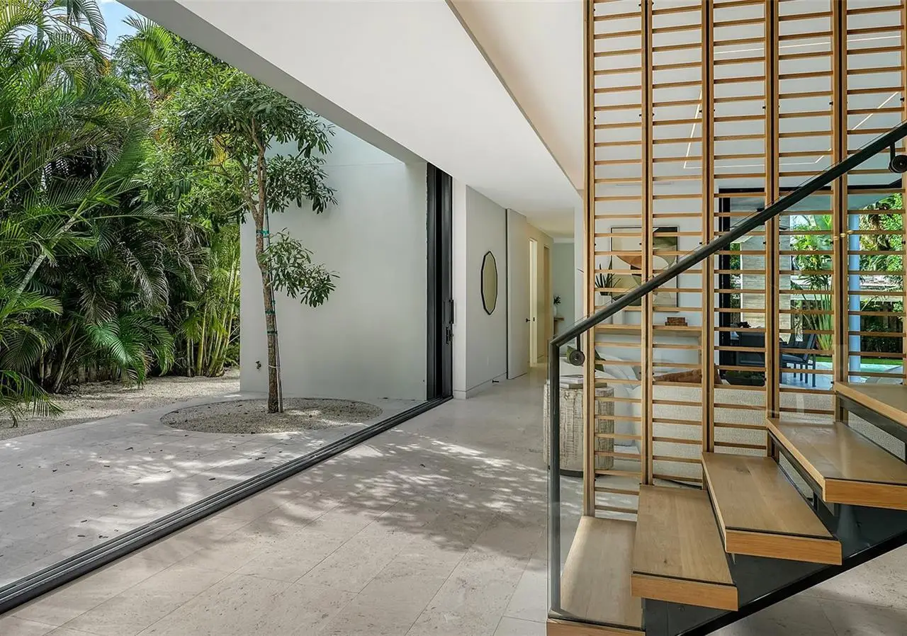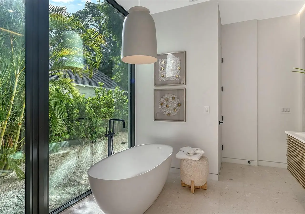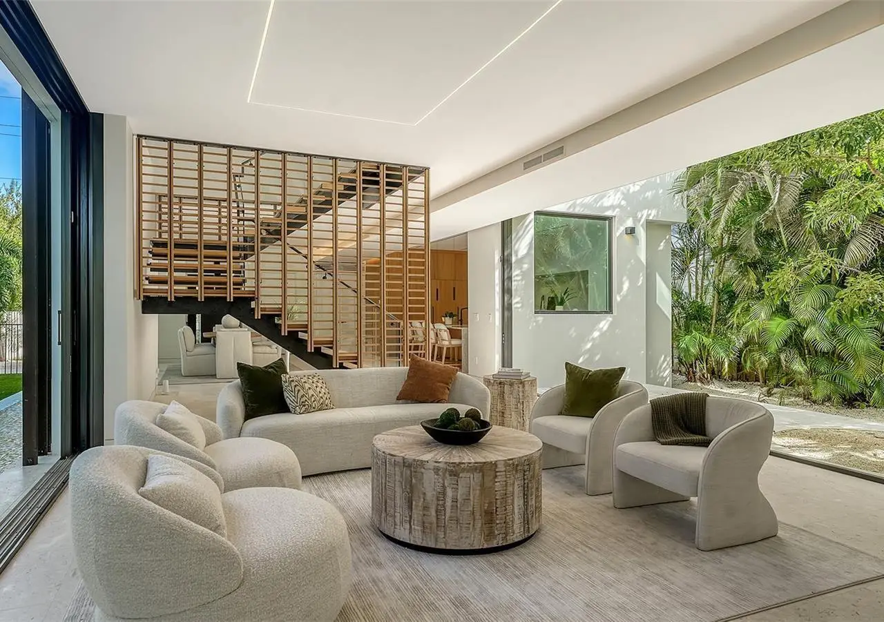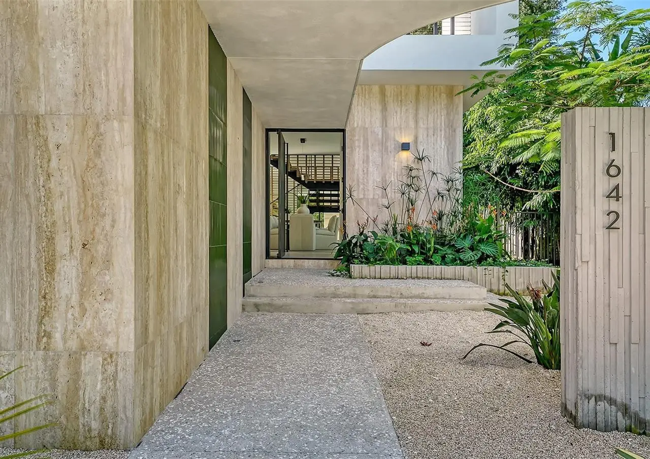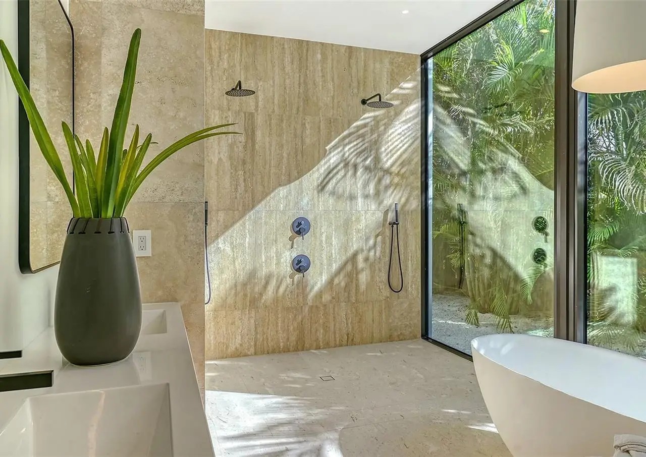 Stunning New Construction by Award-Winning Architect Dan Lear in coveted West of Trail Neighborhood** This meticulously designed luxury home offers the perfect blend of modern elegance and timeless sophistication. Near Selby Gardens, Morton's Market, and Sarasota Memorial Hospital, this exceptional property provides both convenience and style. Spanning over 3,800sqft of living area, this expansive residence boasts four spacious bedrooms, five full bathrooms, a enormous den with terrace, and a dedicated office space, all thoughtfully crafted for contemporary living. The grand, open-concept great room is the heart of the home, seamlessly floating over the pool area with a stunning large corner pocketing glass door that connects the interior to the beautifully landscaped outdoor oasis. The second floor features three guest suites, each with its own private terrace, offering tropical views and tranquility. The home's striking exterior showcases luxurious vein-cut travertine, creating a refined, sophisticated look. This is an extraordinary opportunity to move right in to a worry free one-of-a-kind masterpiece.