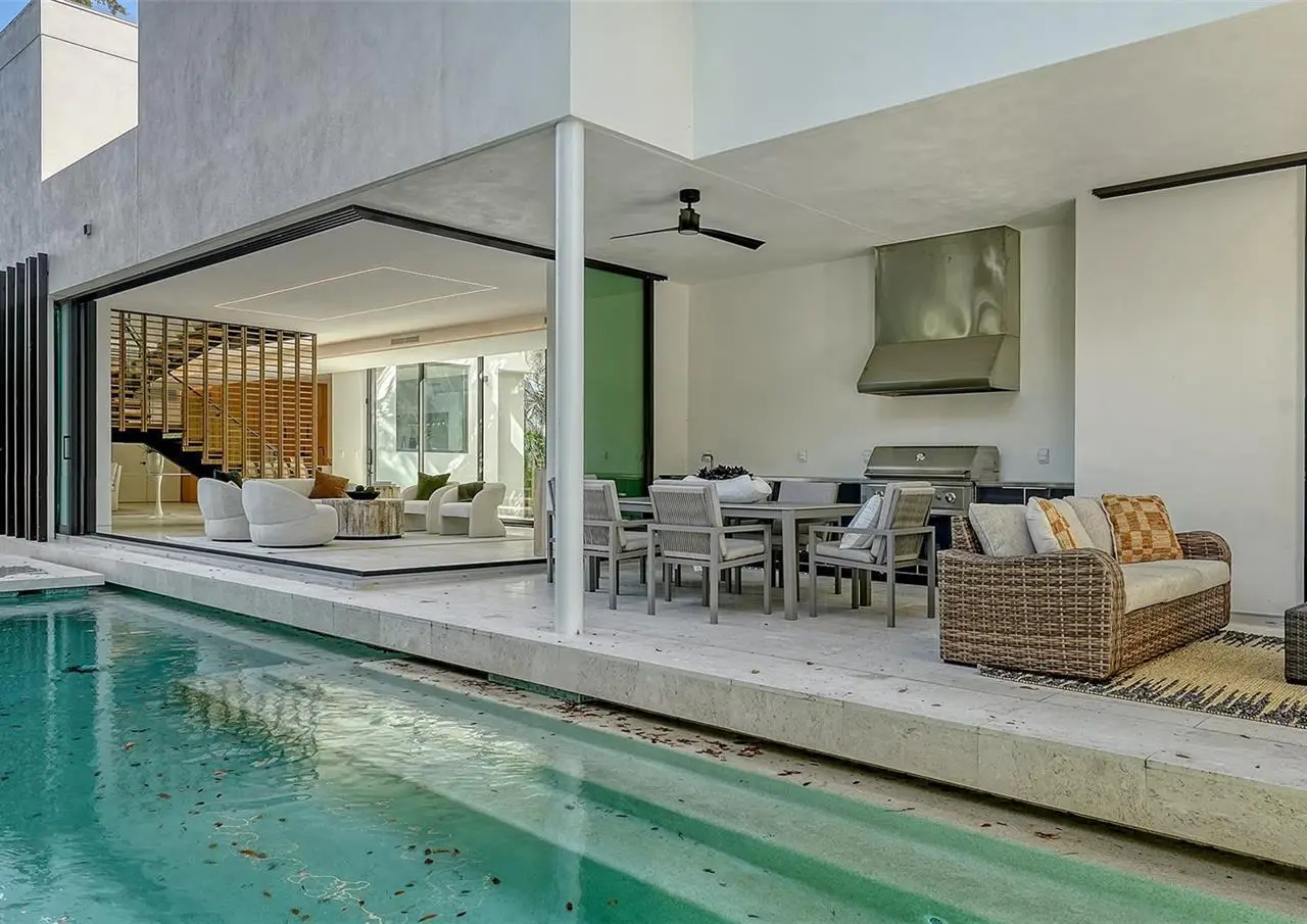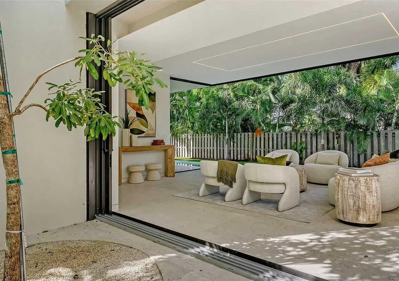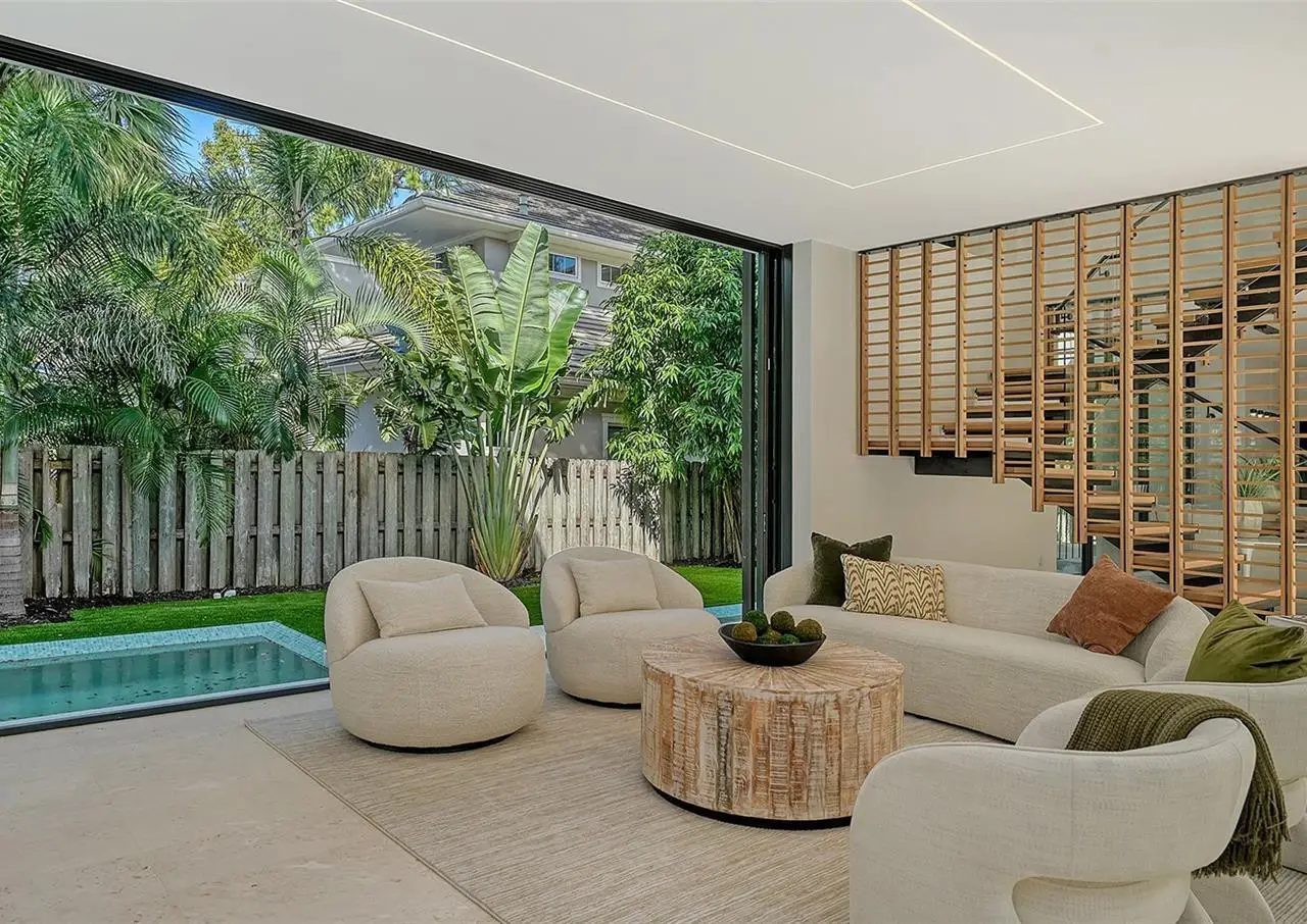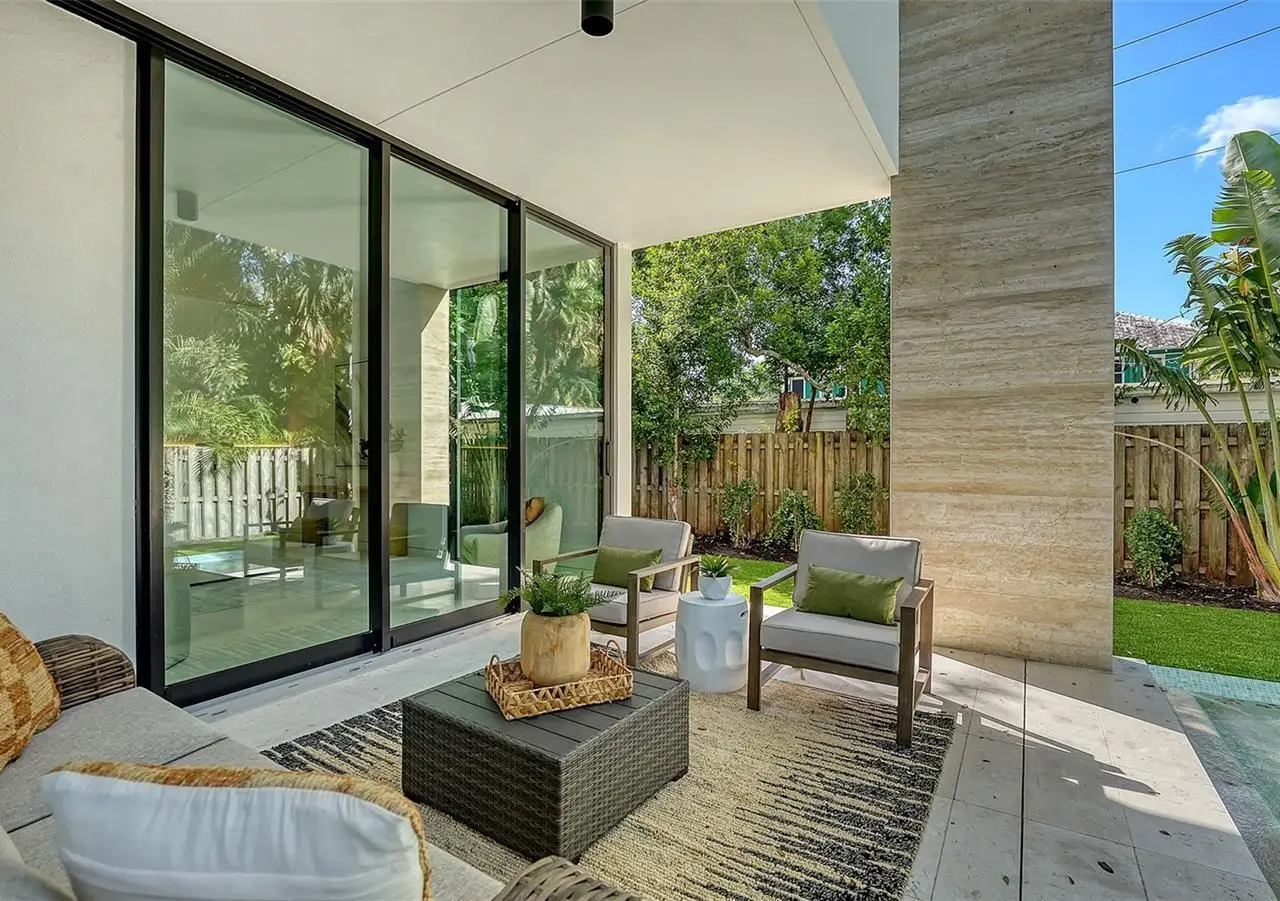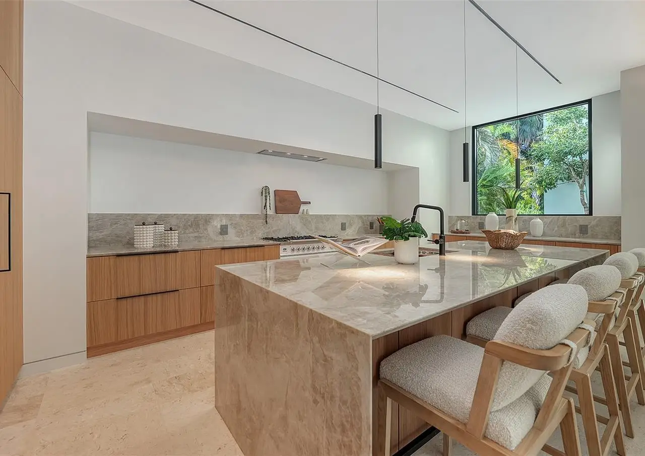Stunning New Construction by Award-Winning Architect Dan Lear in coveted West of Trail Neighborhood** This meticulously designed luxury home offers the perfect blend of modern elegance and timeless sophistication. Near Selby Gardens, Morton's Market, and Sarasota Memorial Hospital, this exceptional property provides both convenience and style. Spanning over 3,800sqft of living area, this expansive residence boasts four spacious bedrooms, five full bathrooms, a enormous den with terrace, and a dedicated office space, all thoughtfully crafted for contemporary living. The grand, open-concept great room is the heart of the home, seamlessly floating over the pool area with a stunning large corner pocketing glass door that connects the interior to the beautifully landscaped outdoor oasis. The second floor features three guest suites, each with its own private terrace, offering tropical views and tranquility. The home's striking exterior showcases luxurious vein-cut travertine, creating a refined, sophisticated look. This is an extraordinary opportunity to move right in to a worry free one-of-a-kind masterpiece.