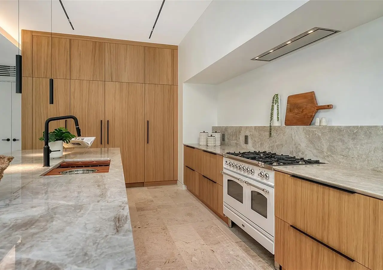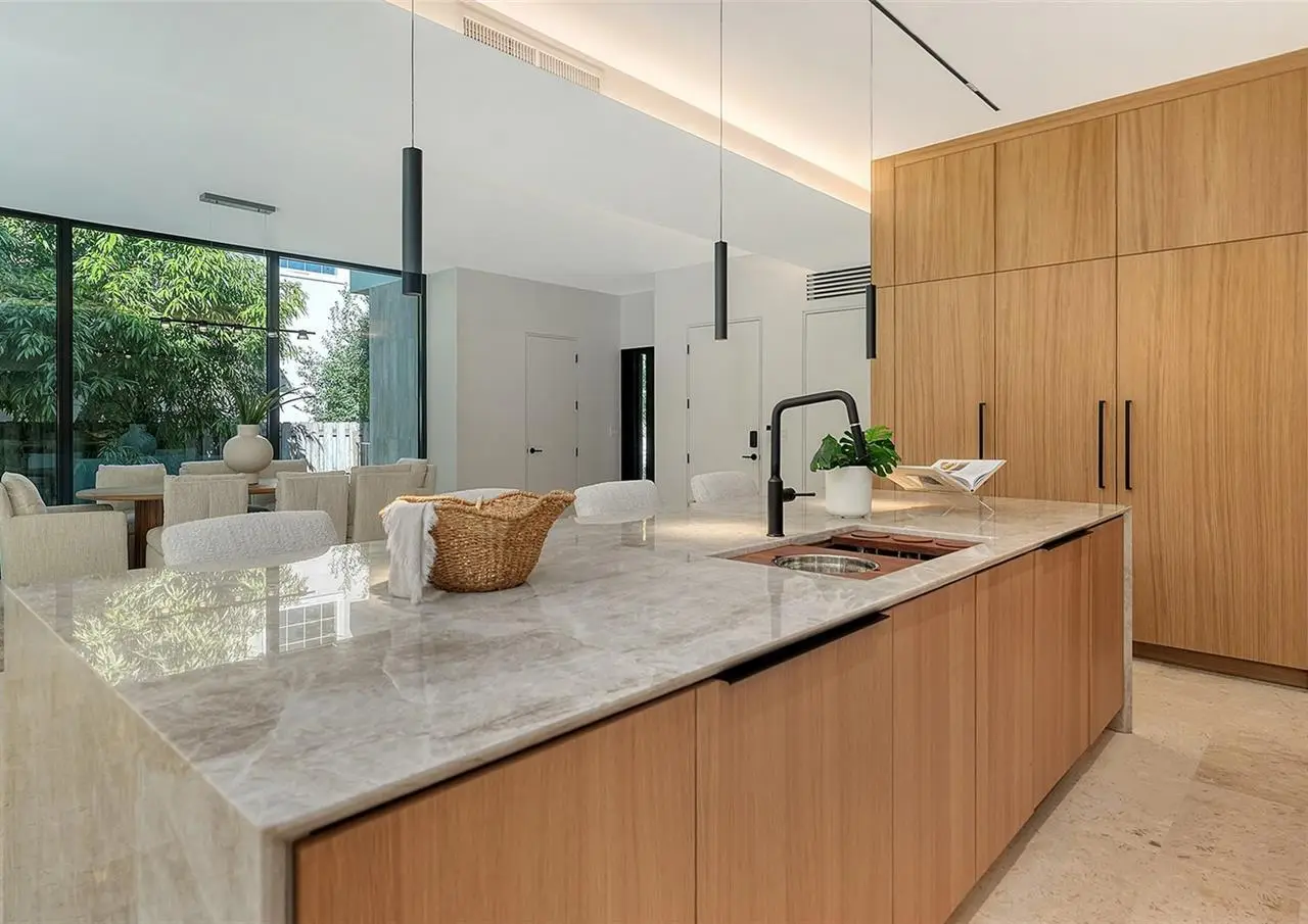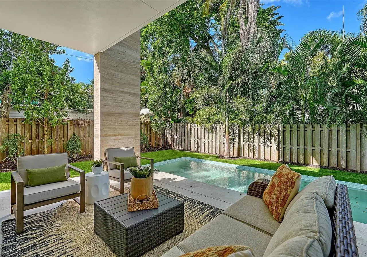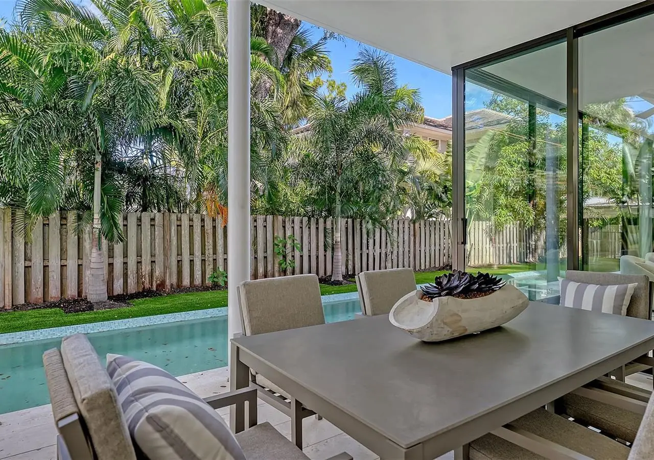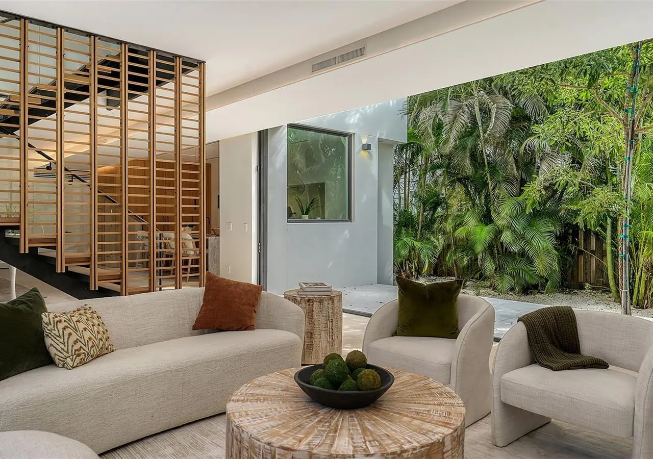 Stunning New Construction by Award-Winning Architect Dan Lear in coveted West of Trail Neighborhood** This meticulously designed luxury home offers the perfect blend of modern elegance and timeless sophistication. Near Selby Gardens, Morton's Market, and Sarasota Memorial Hospital, this exceptional property provides both convenience and style. Spanning over 3,800sqft of living area, this expansive residence boasts four spacious bedrooms, five full bathrooms, a enormous den with terrace, and a dedicated office space, all thoughtfully crafted for contemporary living. The grand, open-concept great room is the heart of the home, seamlessly floating over the pool area with a stunning large corner pocketing glass door that connects the interior to the beautifully landscaped outdoor oasis. The second floor features three guest suites, each with its own private terrace, offering tropical views and tranquility. The home's striking exterior showcases luxurious vein-cut travertine, creating a refined, sophisticated look. This is an extraordinary opportunity to move right in to a worry free one-of-a-kind masterpiece.