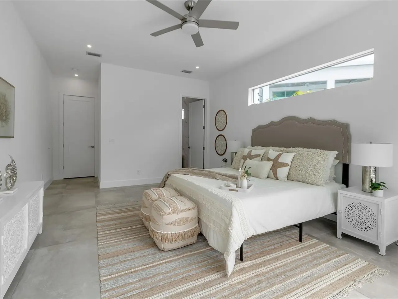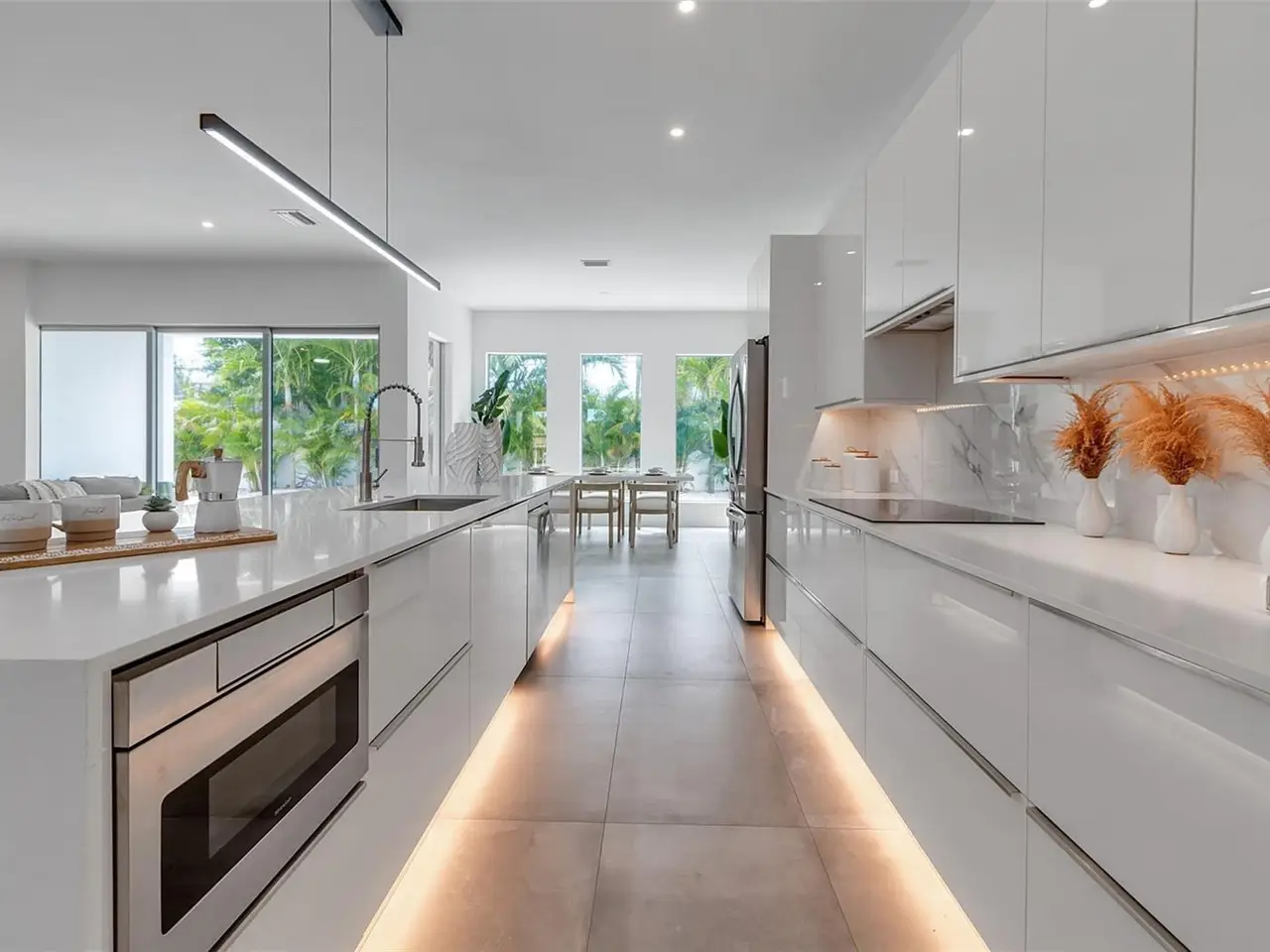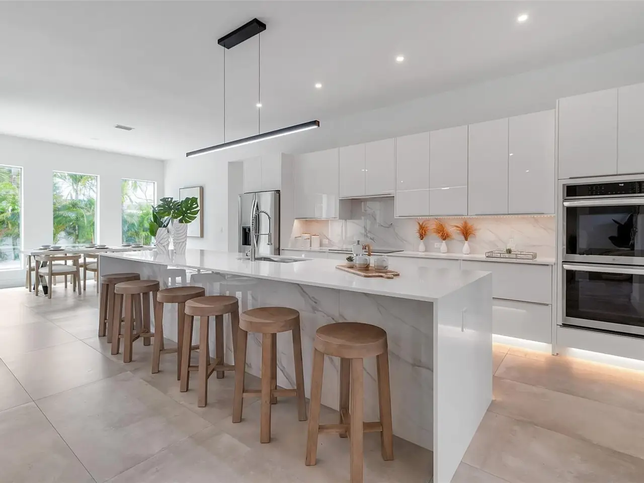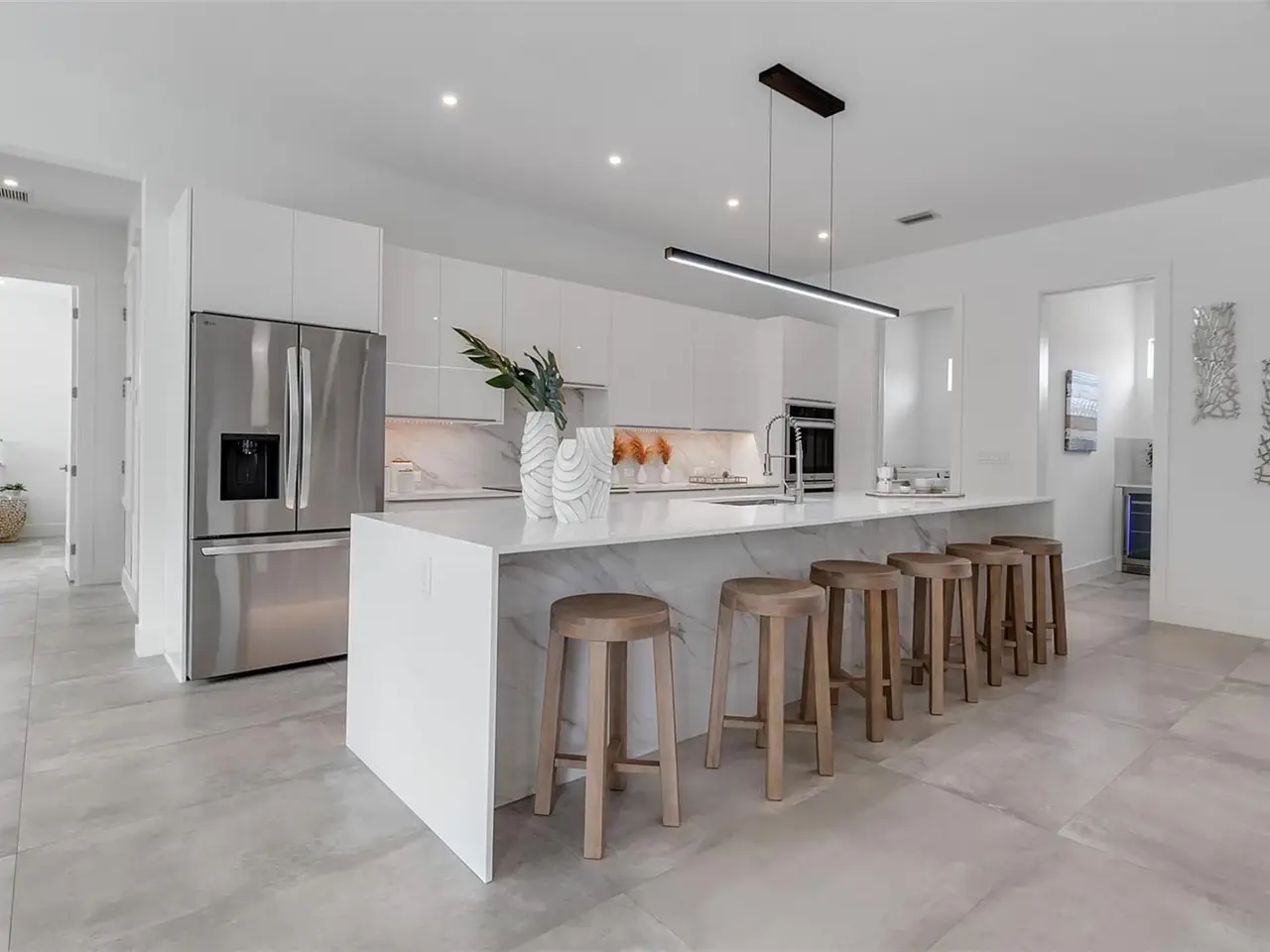 This newly built 6-bedroom, 6-bathroom residence offers the perfect blend of contemporary design, luxurious comfort, and Florida lifestyle living. Ideally located in Sarasota, this home is just moments from the areas renowned beaches, vibrant downtown, and premier dining and shopping. From the moment you step inside, you're greeted by an open, sun-filled floor plan with high ceilings, expansive windows, and sleek tile flooring create a bright and inviting atmosphere. The modern kitchen is a showpiece, featuring streamlined modern cabinetry, premium LG appliances, and generous counter space for both casual meals and gourmet entertaining. The primary suite is conveniently located on the ground floor, offering a private retreat with a spacious layout and spa-inspired en-suite bath. Additional bedrooms are equally well-appointed, providing comfort and privacy for family and guests alike. Designed with both relaxation and connection in mind, the main living area flows seamlessly to the outdoors. Here, a sparkling pool surrounded by a spacious patio sets the stage for lazy afternoons in the sun, evening cocktails, or memorable gatherings under the stars.