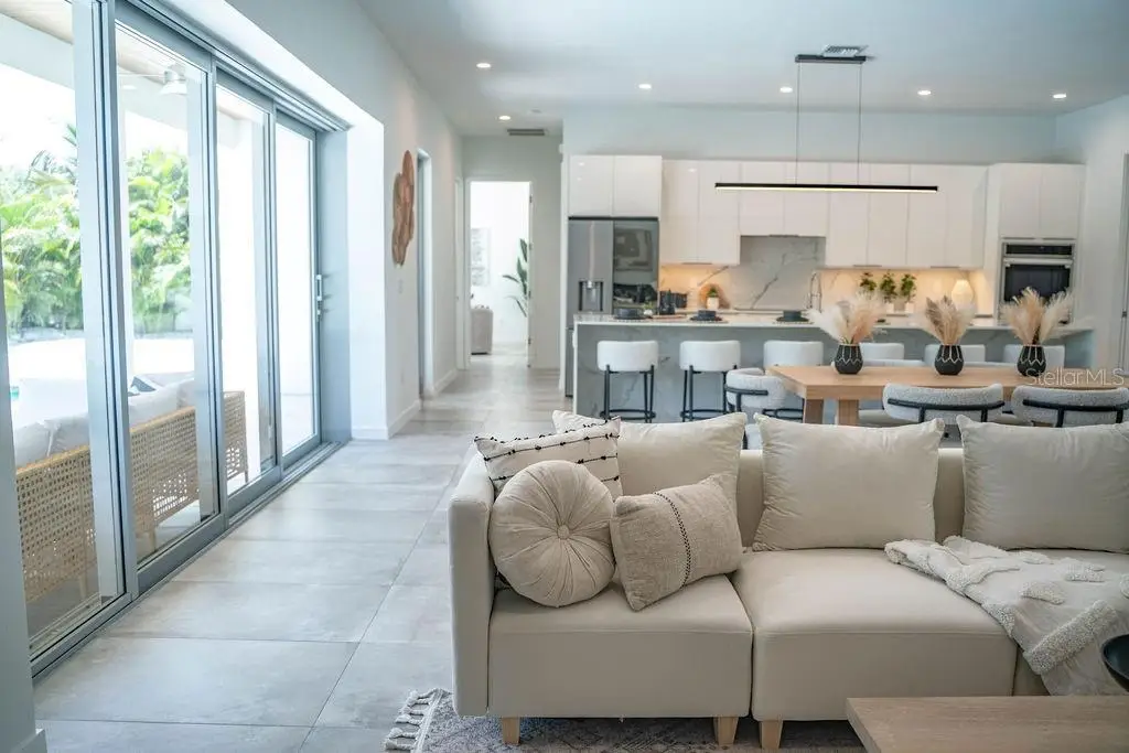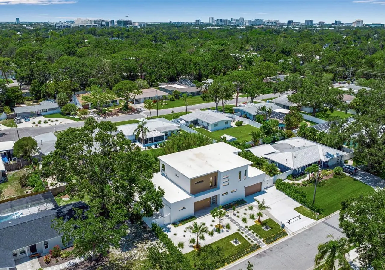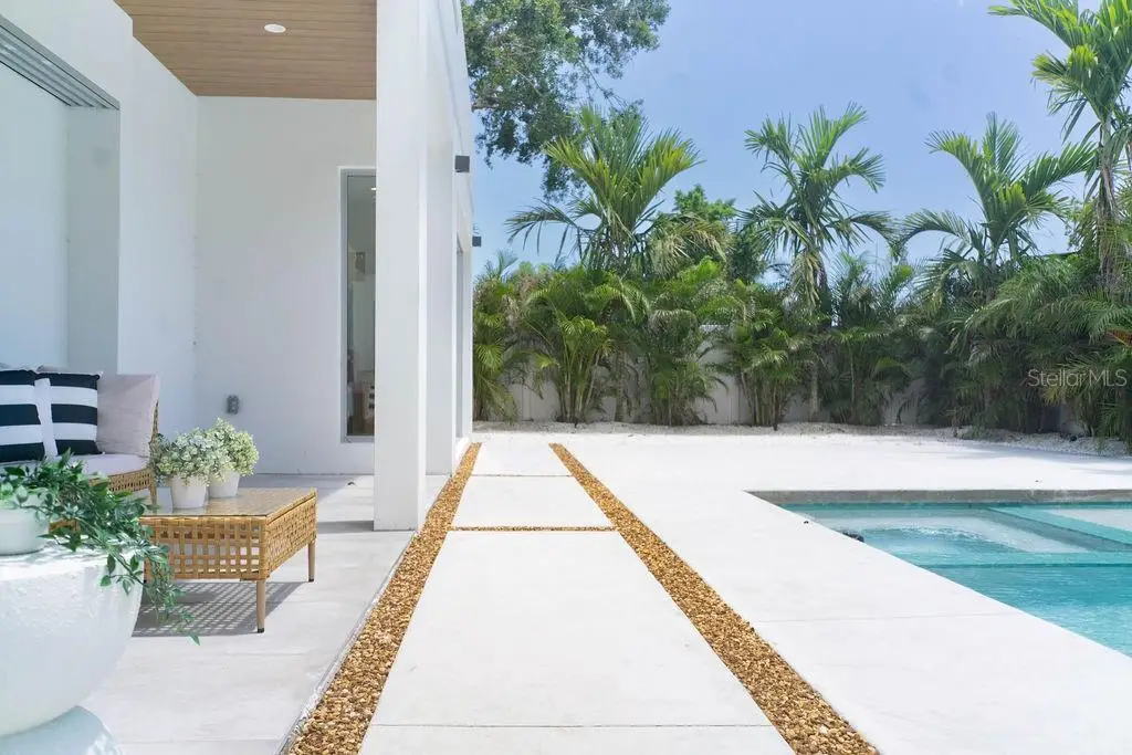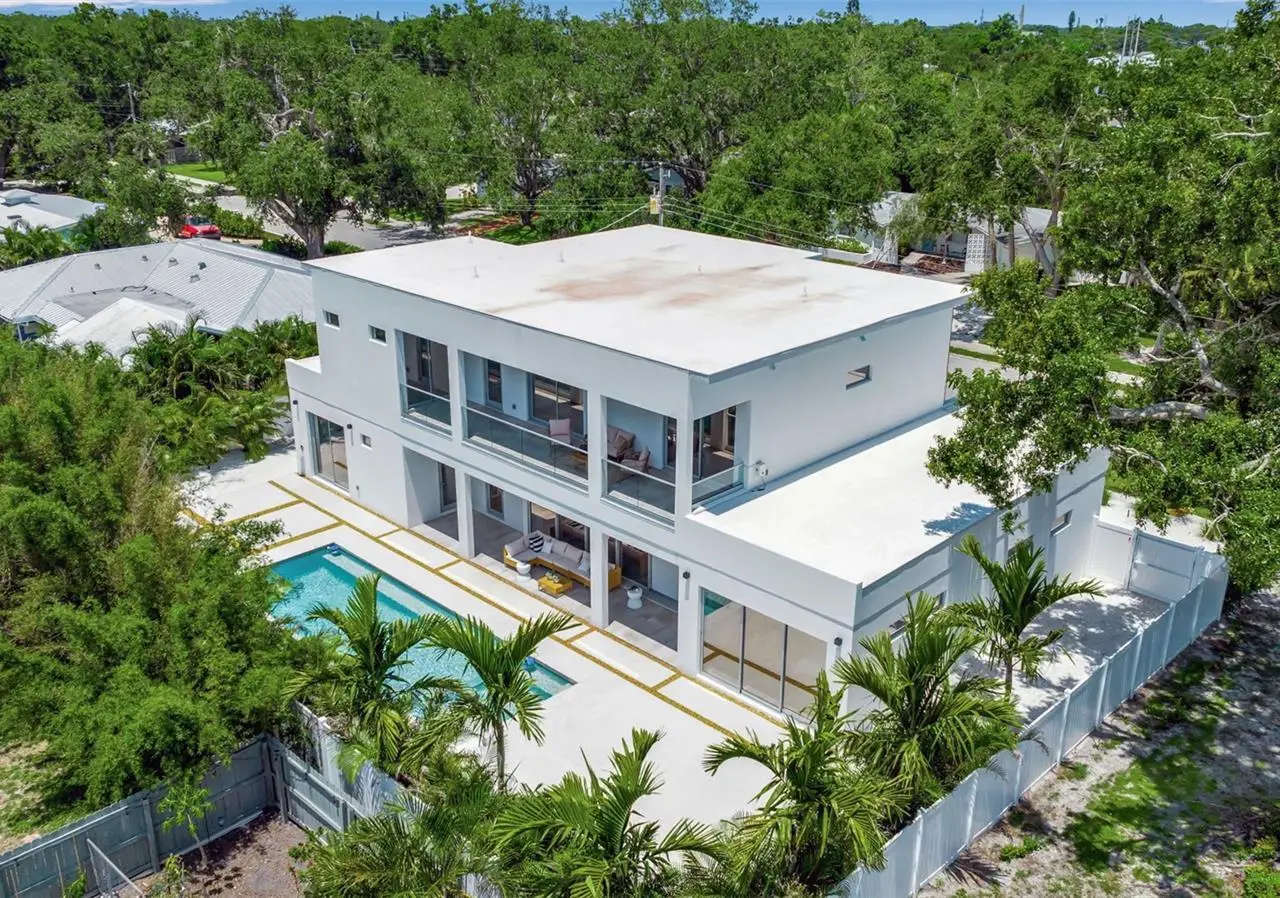 Outstanding value for new modern construction in Arlington Park. Welcome to 2124 Clematis Place, a newly completed Courtyard Modern residence influenced by the Sarasota School of Architecture. This 6-bedroom, 6-bath home delivers clean lines, bold volume, and seamless indoor–outdoor flow across 3,574 sq. ft. of conditioned living space. The main level is bright and airy, with polished concrete tile floors and a minimalist material palette. The kitchen features modern cabinetry, quartz countertops, and premium appliances, while the flexible floor plan provides space for work, guests, or multi-generational living. Outside, a private oasis includes a pool and spa, fenced yard, and low-maintenance landscaping. Ideally located near Arlington Park, downtown Sarasota, Southside Village, Sarasota Memorial Hospital, and area beaches.