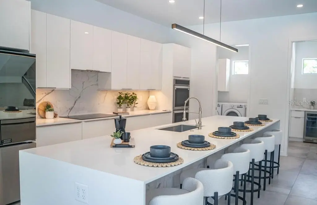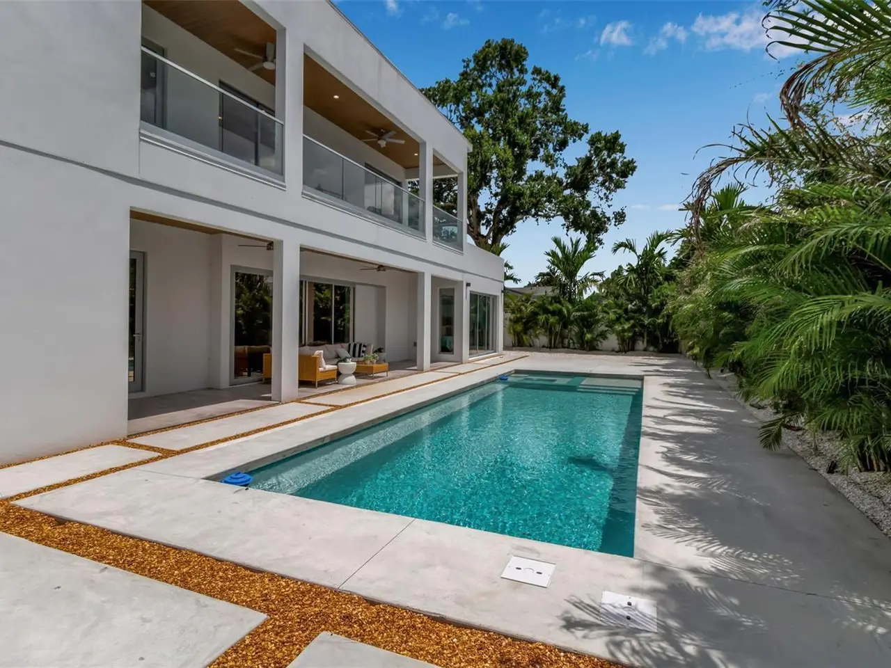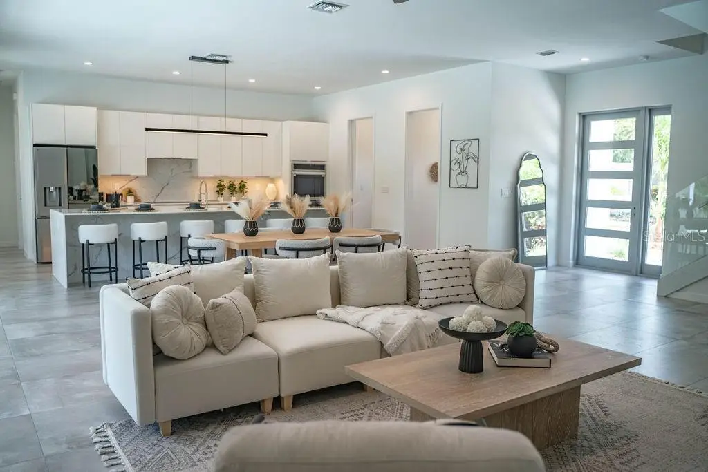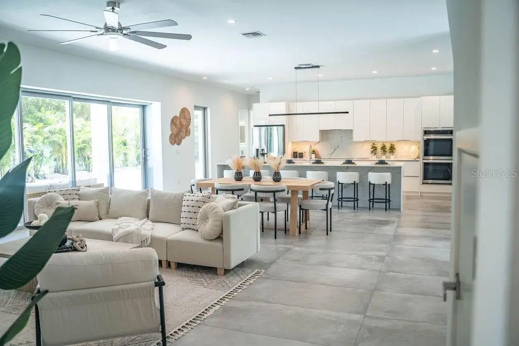 Outstanding value for new modern construction in Arlington Park. Welcome to 2124 Clematis Place, a newly completed Courtyard Modern residence influenced by the Sarasota School of Architecture. This 6-bedroom, 6-bath home delivers clean lines, bold volume, and seamless indoor–outdoor flow across 3,574 sq. ft. of conditioned living space. The main level is bright and airy, with polished concrete tile floors and a minimalist material palette. The kitchen features modern cabinetry, quartz countertops, and premium appliances, while the flexible floor plan provides space for work, guests, or multi-generational living. Outside, a private oasis includes a pool and spa, fenced yard, and low-maintenance landscaping. Ideally located near Arlington Park, downtown Sarasota, Southside Village, Sarasota Memorial Hospital, and area beaches.
