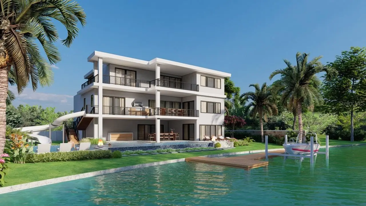 Pre-Construction. To be built. Welcome to this newly imagined Siesta Key residence, a world curated for those with a sophisticated palate for modern architecture at the edge of the sea. Here, light dances across water and peers through your windows blending luxury, privacy and resort-style living within the exclusive enclave of Hidden Harbor. The journey begins as you approach this designer estate—a vision of coastal modernism, 4,900 square feet under air and meticulously crafted by TDI Coastal Homes, celebrated for precision, integrity, and elegance. Clean lines and natural textures blend with lush tropical surroundings, setting the stage for a life that lives like an endless retreat. The lower level invites you to linger outdoors surrounded by the scent of the saltwater breeze and the sounds of the cascading waters of the 65-foot infinity pool and spa. A covered living space blurs the line between home and horizon. A custom waterslide arcs playfully into the pool, while beyond, your private dock with a 20,000-pound lift awaits spontaneous voyages to Roberts Bay. Ascend by elevator or sculpted staircase to the heart of the home—spaces that feel both expansive and intimate. Walls of glass reveal shimmering water views, while the Meile appliance suite anchors a chef’s kitchen made for creating fine cuisine and lasting memories. Every detail and finish bears the signature of master craftsmanship. The home’s six bedrooms include two primary suites, each a retreat of its own with spa-inspired baths. Six full and three half baths offer both comfort and convenience for family and guests alike. A 700-square-foot bonus space stands ready to become whatever your imagination allows—a golf simulator, game lounge, or wellness studio. A three-car garage, new seawall, whole-home generator, and zero water intrusion during the 2024 storms provide unmatched peace of mind. As evening settles, the home transforms. Ambient lighting glows across the infinity edge and the hush of the bay replaces the day’s energy. You can almost hear the future stories unfolding here—laughter by the pool, sunrise swims, quiet coffee on the terrace. 5179 Hidden Harbor Road isn’t just a home; it’s a state of being—modern, effortless, and deeply connected to the water.