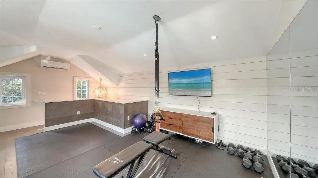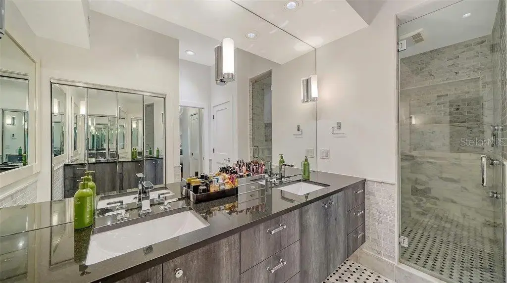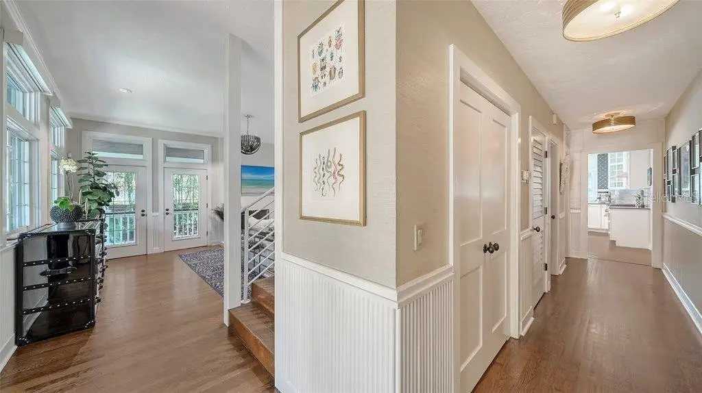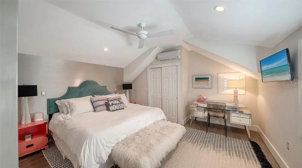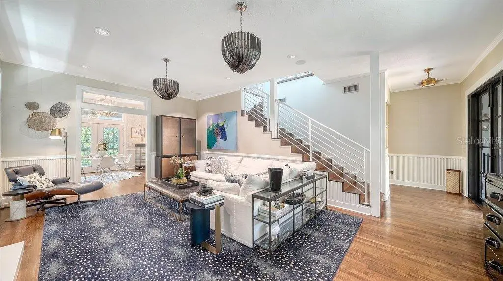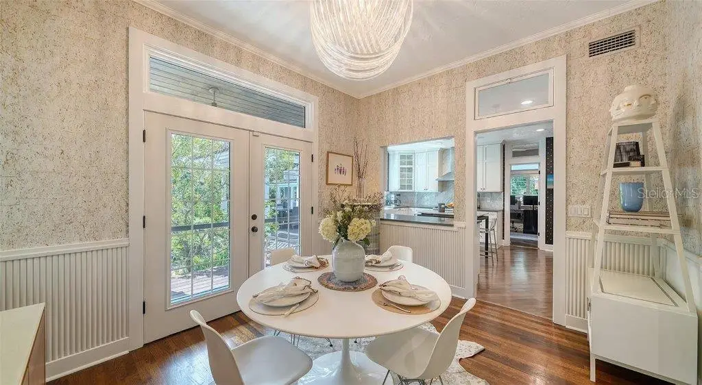 Welcome to this rarely available Cape Cod–style residence, comprised of a masterfully renovated main house and separate luxe guest house poised on an expansive 20,000 sq. ft. lot in Sarasota’s prestigious Cherokee Park. Elevated 23 feet above sea level and nestled on a wide, tree-lined street in the coveted West of Trail district—within the top-rated Southside school zone—this 4-bedroom, 3 full/2 half bath +office private compound blends timeless architecture with designer-curated sophistication. A stately front porch framed by lush landscaping and classic brick walkway introduces the home with understated grandeur. Handcrafted, glass-inlaid iron double doors open to a refined foyer where natural light, elegant millwork, and soaring 10-foot ceilings set the tone for the bespoke interiors beyond. Inside, original hardwood floors, designer lighting by Arteriors, Eichholtz, and Kelly Wearstler, and high-end finishes selected by Chelsea Dunbar of Blu Interiors create a sense of warmth and refinement throughout. The quartz-clad chef’s kitchen is as functional as it is beautiful, featuring a Wolf natural gas range, KitchenAid French-door refrigerator, ample pantry space, and custom cabinetry—perfectly suited for both intimate dining and entertaining. Anchored by a wood-burning fireplace, the main living and dining spaces flow seamlessly outdoors to an inviting Pennsylvania bluestone patio, low-maintenance Astroturf lawn, and wrap-around Brazilian teak deck—an idyllic setting for year-round enjoyment. The serene first floor primary suite is a private retreat showcasing three custom-designed walk-in closets and a spa-inspired bath with marble finishes, dual vanities, heated towel bar, and a zero-entry shower with body sprays. Ascend the custom staircase to find 2 tailored guest retreats with spa-like bath, each offering serene views and thoughtfully appointed details for ultimate comfort and privacy. Throughout the home, custom wallcoverings by Phillip Jeffries, Scalamandré, and Élitis add layers of texture and artistry, while upgraded systems—including a surround sound system, six climate zones, and multiple laundry areas—enhance everyday comfort. Resort-style living continues outdoors with a 9-foot-deep pool framed by classic Bevolo gas lanterns and an extraordinary luxury guest house built in 2016. This refined space includes an entertaining area with custom built-ins, full bar, refrigerator drawers, Scotsman icemaker, private guest suite, 1.5 baths, gym, and an outdoor teak shower. The fully equipped outdoor kitchen features a natural gas Lynx grill, XL Green Egg, quartzite prep counters, and a covered gazebo ideal for al fresco dining. All impact doors and windows, cedar shake roof, and Hardie Board siding add to the beauty and durability of the home. Completing this exceptional estate is an oversized 2.5-car detached garage and secure, fully fenced grounds with electric fence. Enjoy tree-lined streets with sidewalks and a true sense of community, all just a short stroll or golf cart ride to Southside Village where residents enjoy boutique shops, Morton’s Gourmet Market, cafés, and top-rated restaurants, and minutes from downtown Sarasota and Siesta Key Beach. This is refined Gulf Coast living—where timeless architecture meets effortless luxury in one of Sarasota’s most treasured neighborhoods.