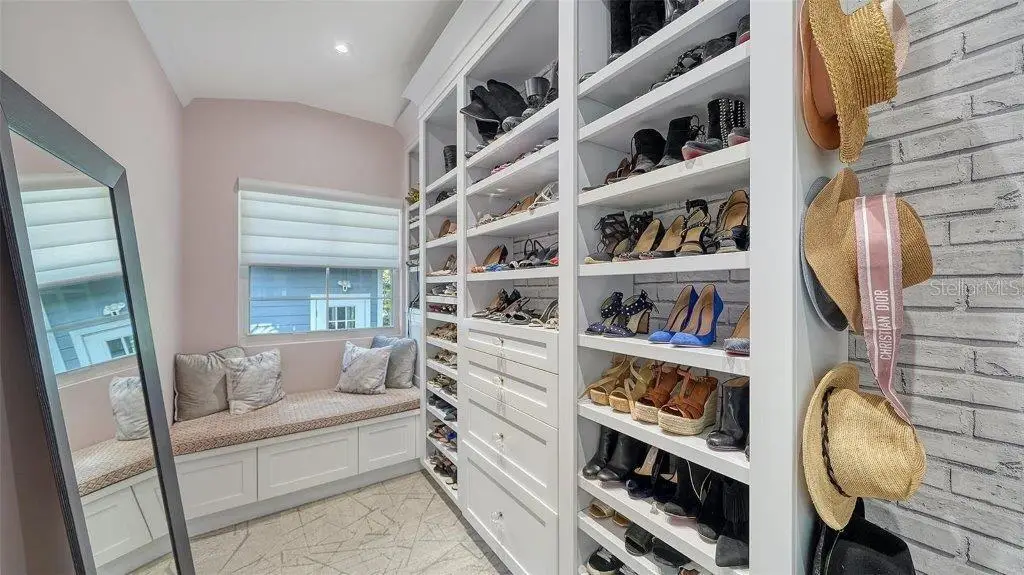 Spa-inspired primary suite with custom closets