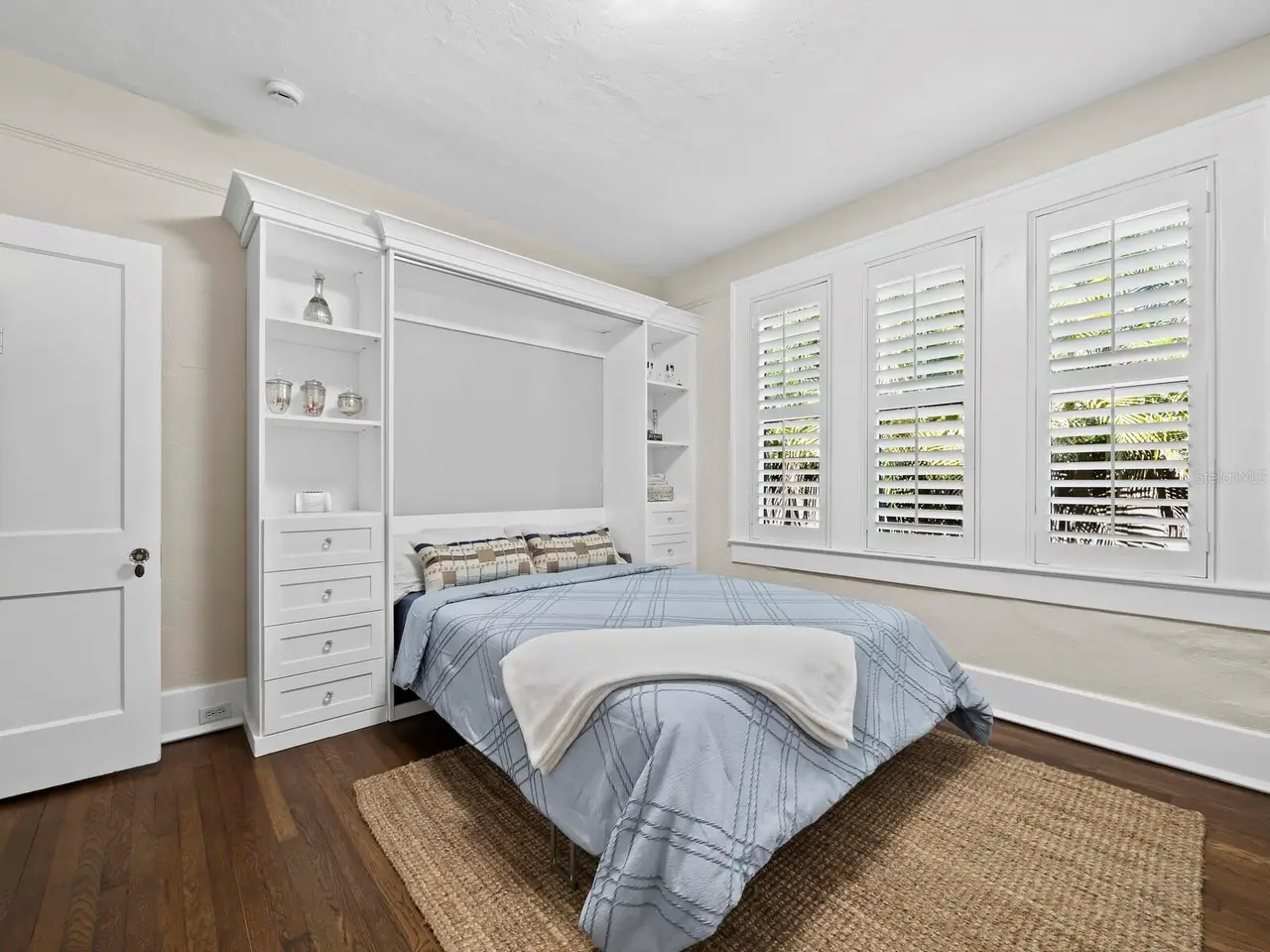 Situated in the highly desirable West of Trail neighborhood of Hudson Bayou, this fully restored 1922 residence is the perfect blend of historic charm and modern conveniences. The property offers 2,284 square feet with two bedrooms and two bathrooms in the main house, plus a one-bedroom, one-bathroom guest house. Renovations include a 2006 conversion of the garage into a guest house with a stucco privacy wall and Chicago brick driveway. In 2018, a spacious primary suite with double closets, a large bath, and French doors to a screened lanai was added. High ceilings, oversized impact windows, and refinished hardwood floors (2024) add to the home’s appeal. Recent updates include a recoated roof with a 10-year transferable warranty (2025), A/C (2023), water heater (2024), encapsulated crawlspace with dehumidifier (2024), foundation reinforcement with new support jacks (2024/2025), and hurricane-rated windows. The kitchen and dining area were fully renovated, featuring custom Calistoga cabinetry and designer appliances (2024/2025). Additional features include recessed lighting, custom closets, a Murphy bed, and a natural gas fireplace. A wellness room with an infrared sauna (2025) completes the interior. Exterior highlights include enhanced landscaping, three all-weather sheds, a pergola with natural gas grill hookups, and a serene brick courtyard surrounded by mature landscaping for privacy. The location is unparalleled, with proximity to Southside Village, the downtown Sarasota bayfront, St. Armands Circle, and the world-famous beaches of Lido and Siesta Key.